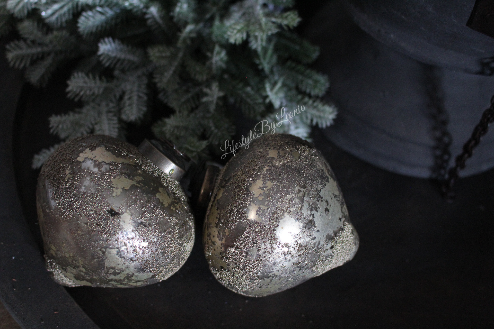 Prachtige ronde puntige glazen kerstbal met gouden spikkeltjes. De kerstbal is 8 cm groot.