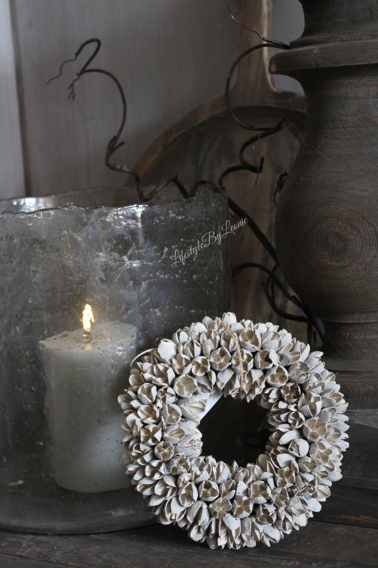 De altijd populaire Bakuli krans in een mooie lichte sand stone kleur. De krans heeft een doorsnede van 20 cm.