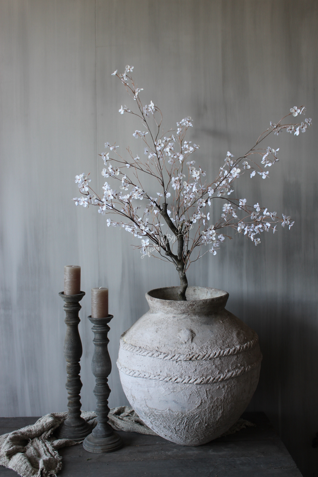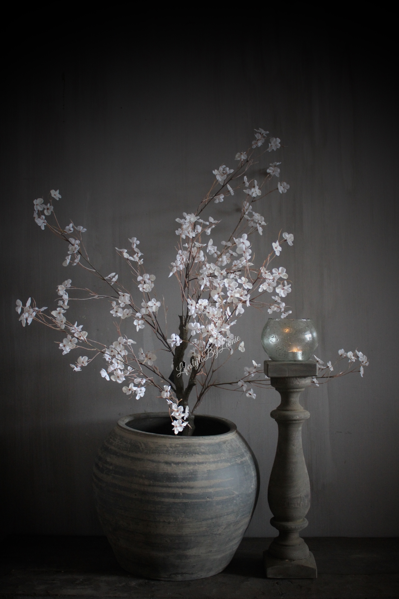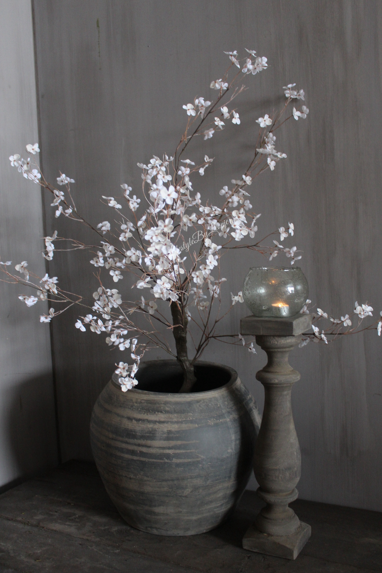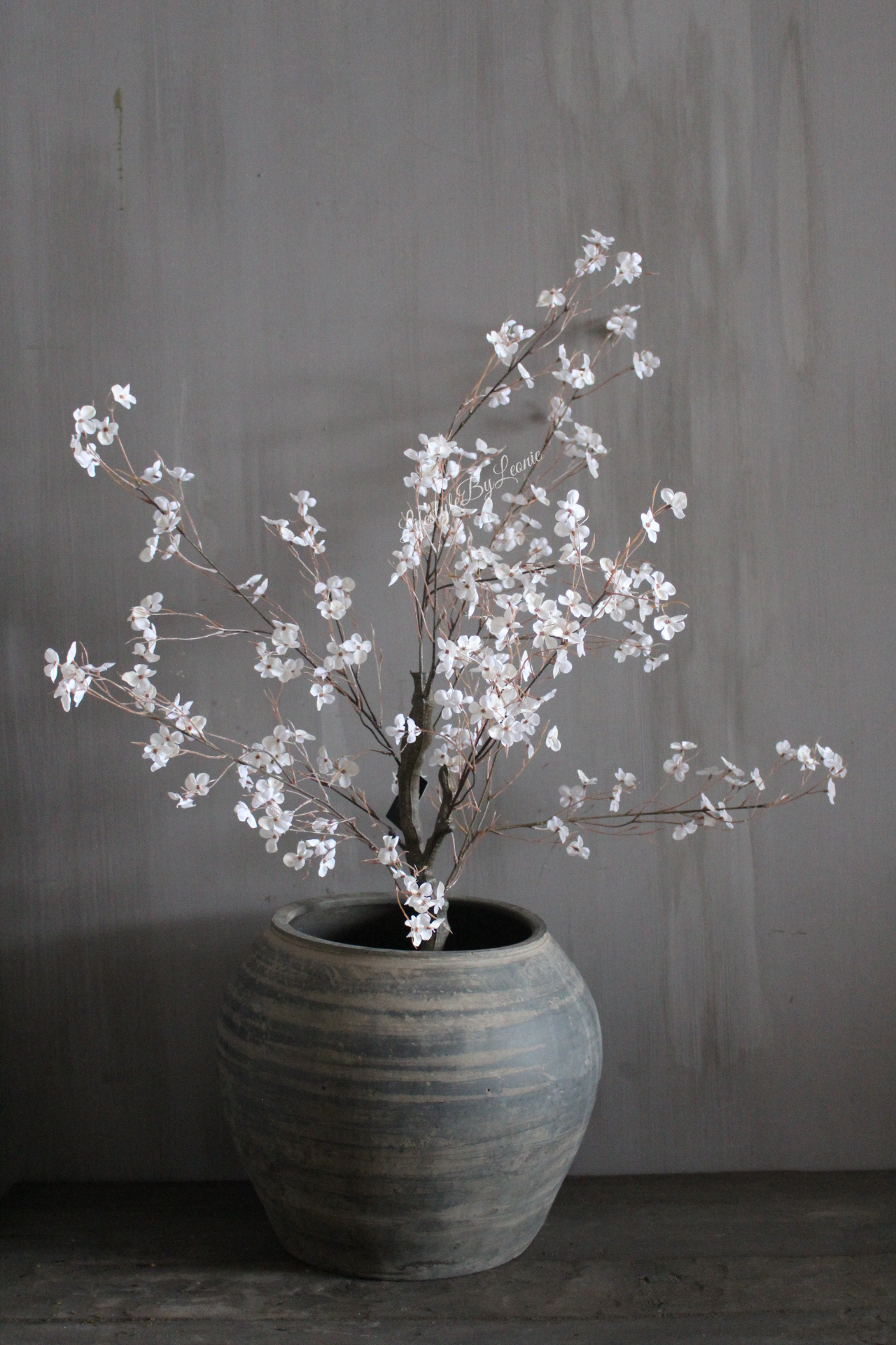 Prachtig Pyrus kunstplant in een plastic pot. De plant is heel mooi afgewerkt met kleine witte zijden bloemetjes. Een prachtige eyecatcher in bijvoorbeeld een grote kruik. De plant is 110 cm groot.