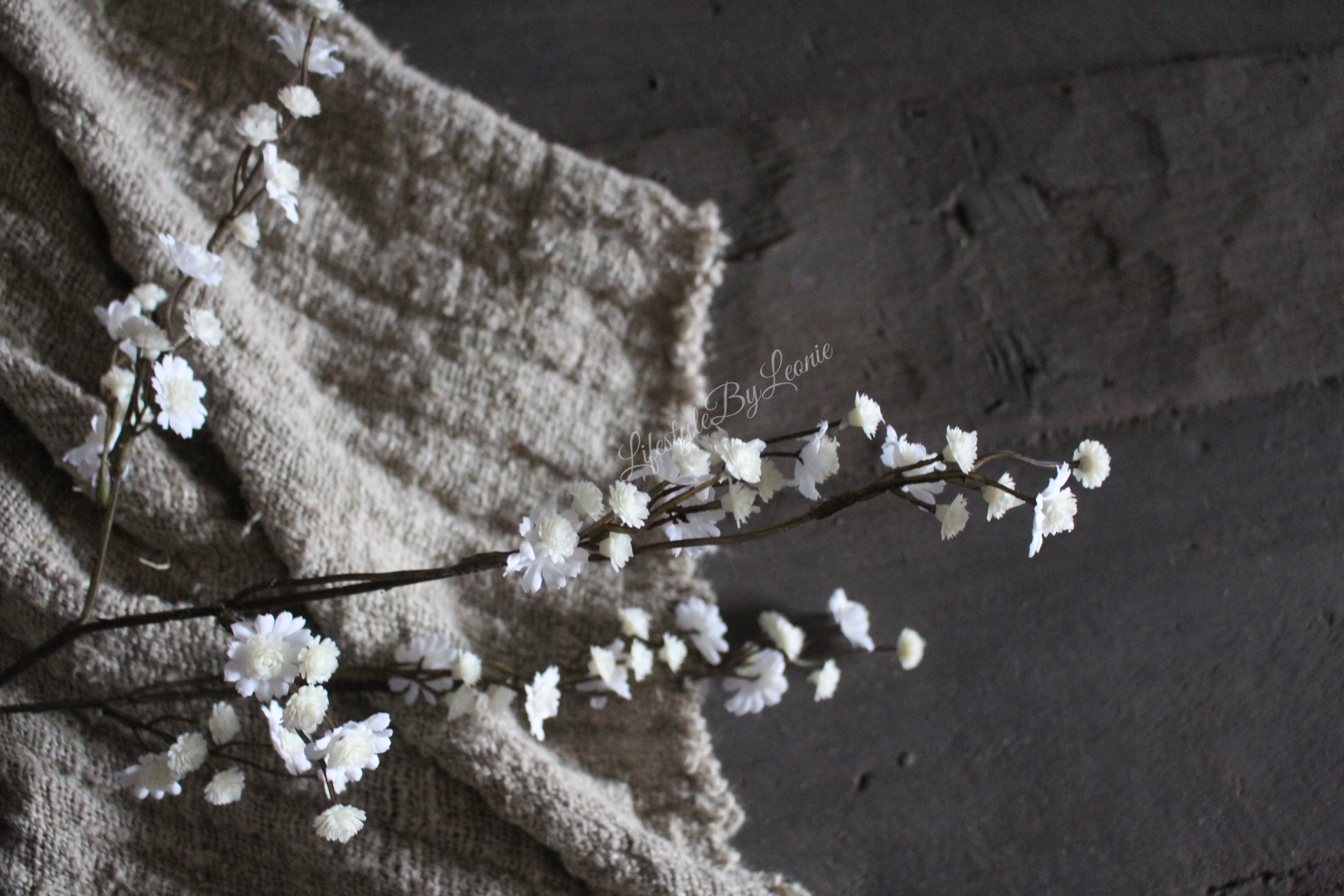 Prachtige Gipskruid kunsttak met bloesem in een zachte witte kleur. De tak is 57 cm lang.