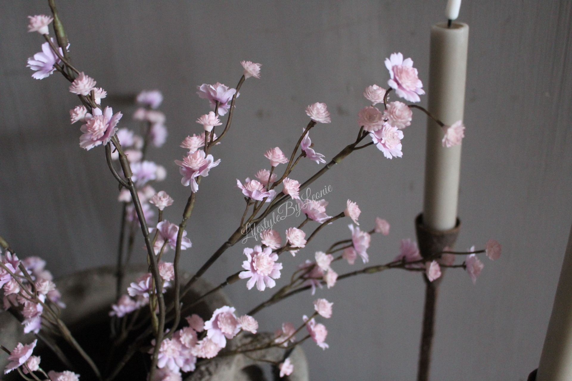 Prachtige Gipskruid kunsttak met bloesem in een zachte roze kleur. De tak is 57 cm lang.