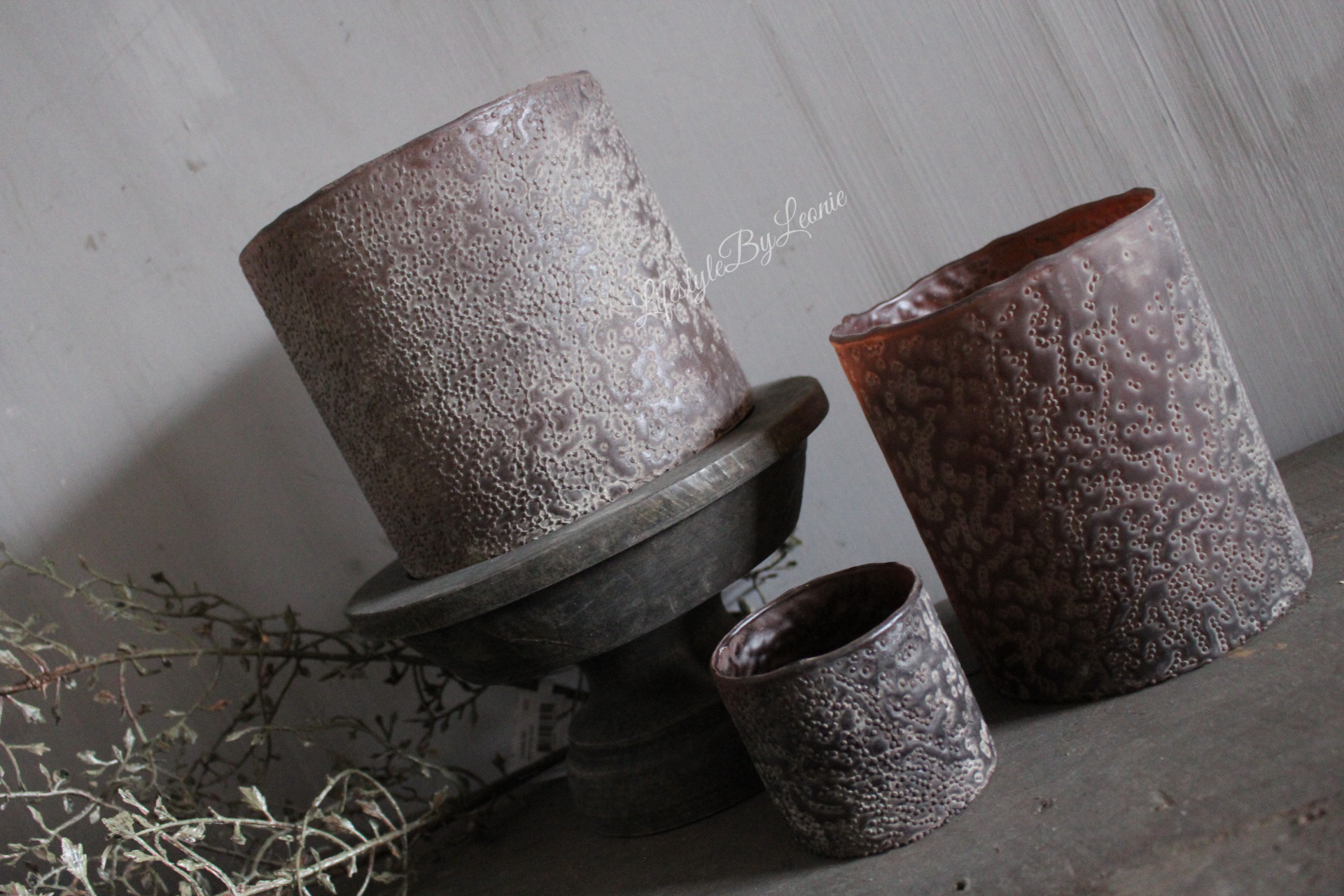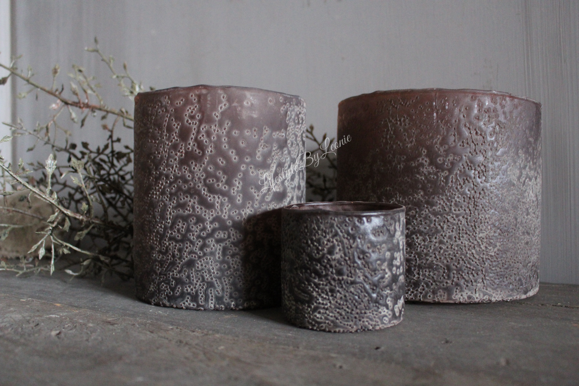 LUKSA cilinder windlicht Black/brown 14 x 14 cm