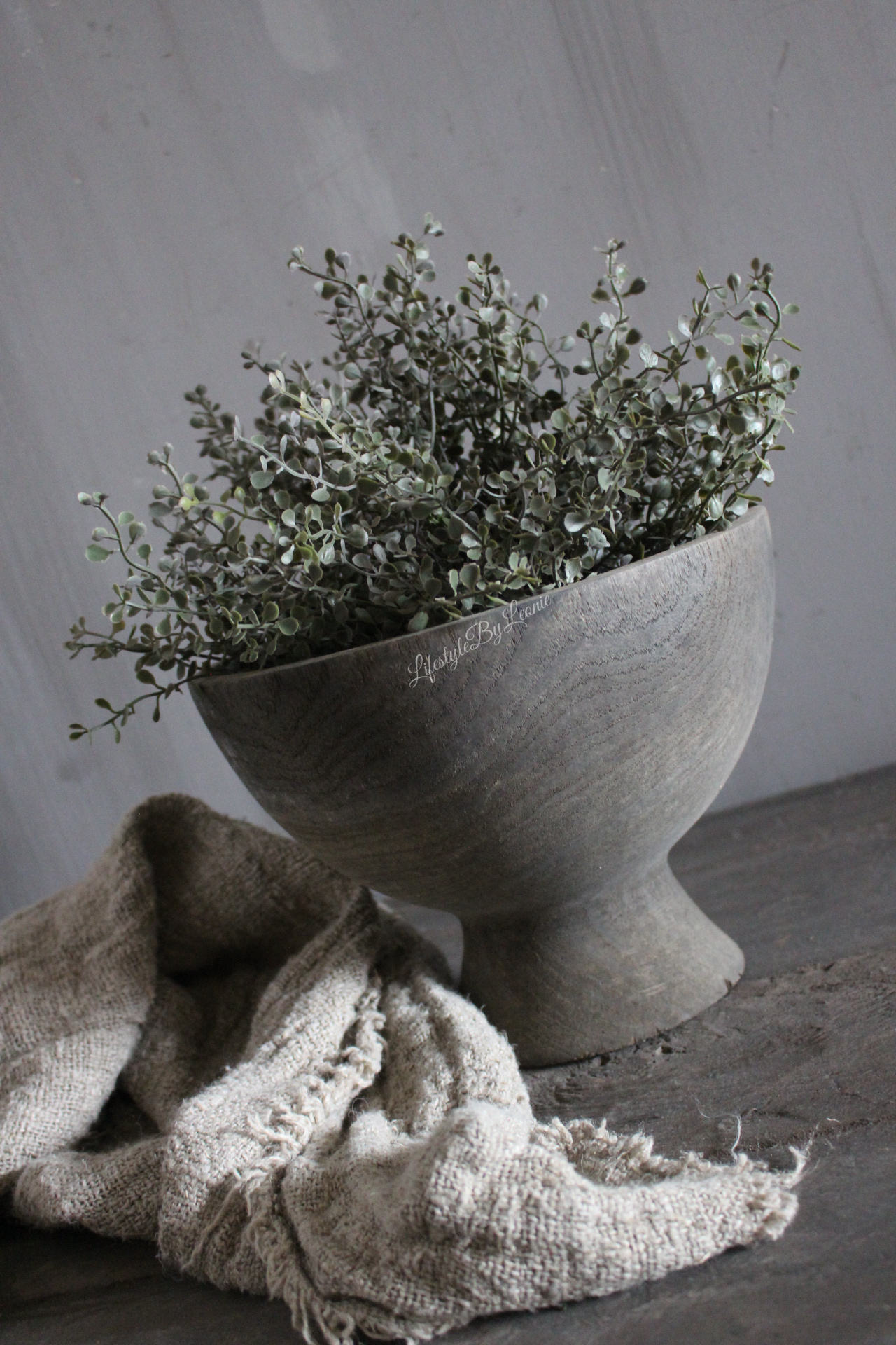LUKSA houten ronde vijzel pot op voet 24 x 19 cm