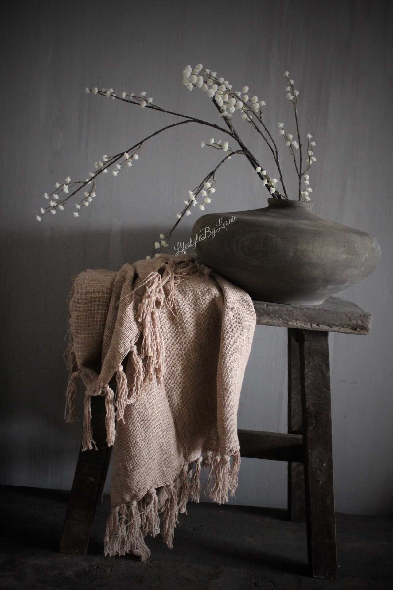 LUKSA Anton is een prachtige houten vaas in de kleur antique grey. De vaas is 35 x 18 cm groot.