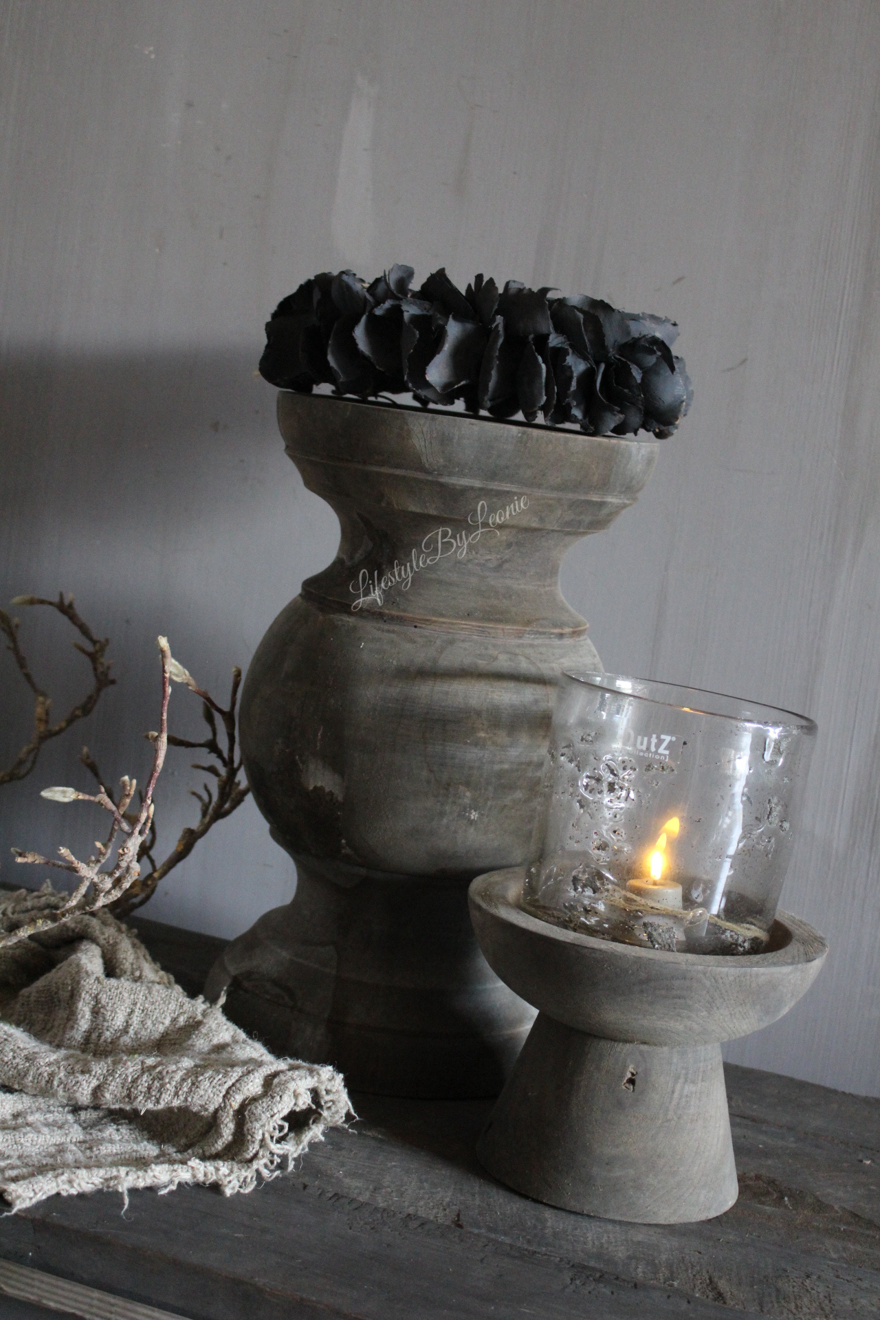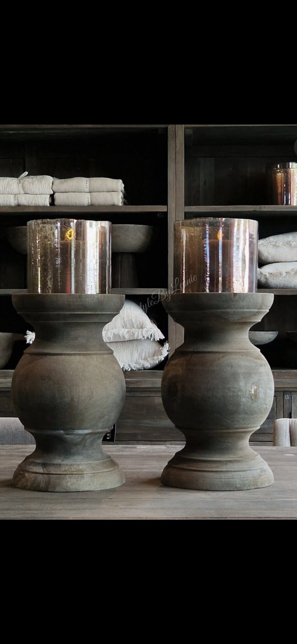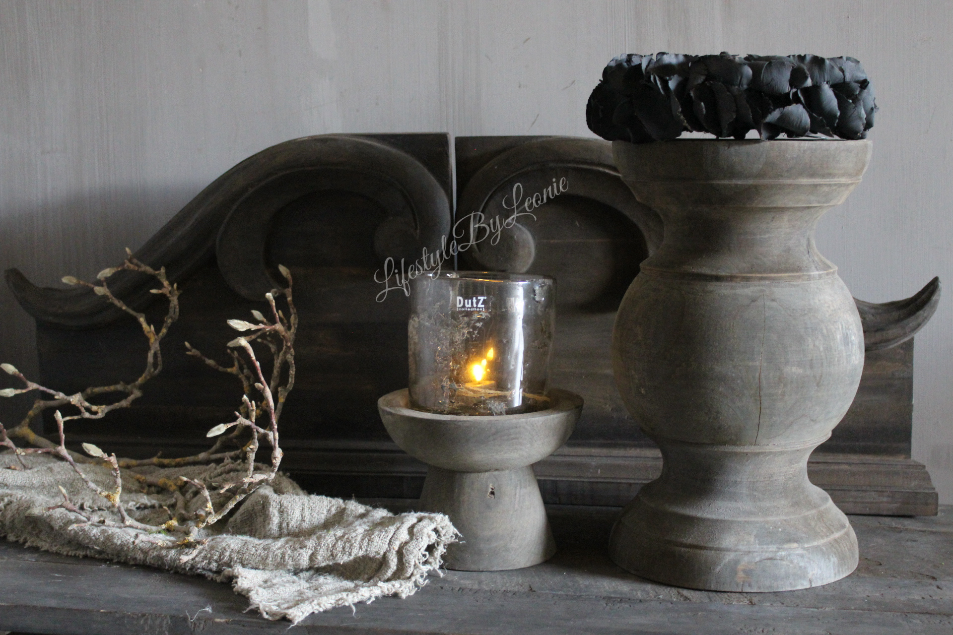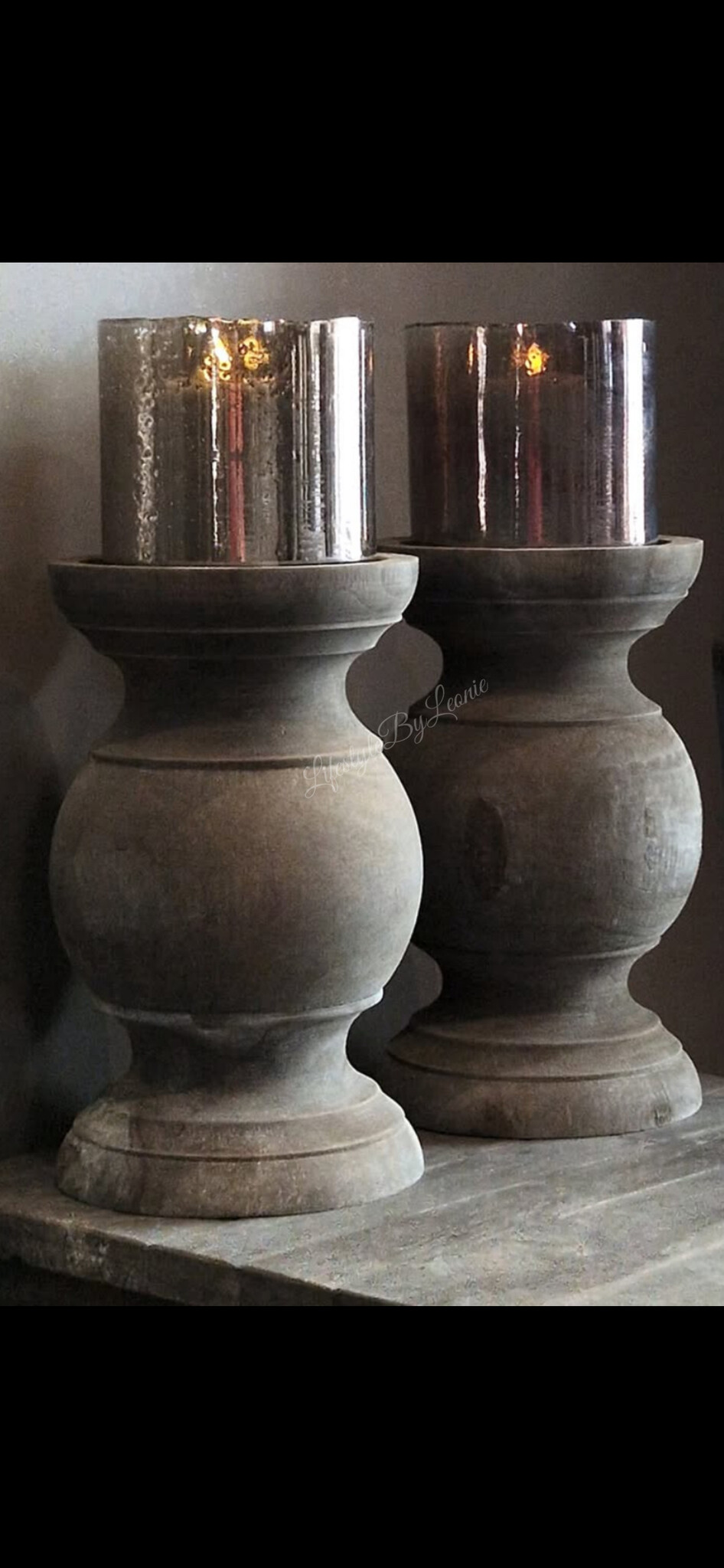 Prachtige grote massief houten baluster kandelaar. Mooi met bijvoorbeeld een windlicht of een dikke stompkaars.