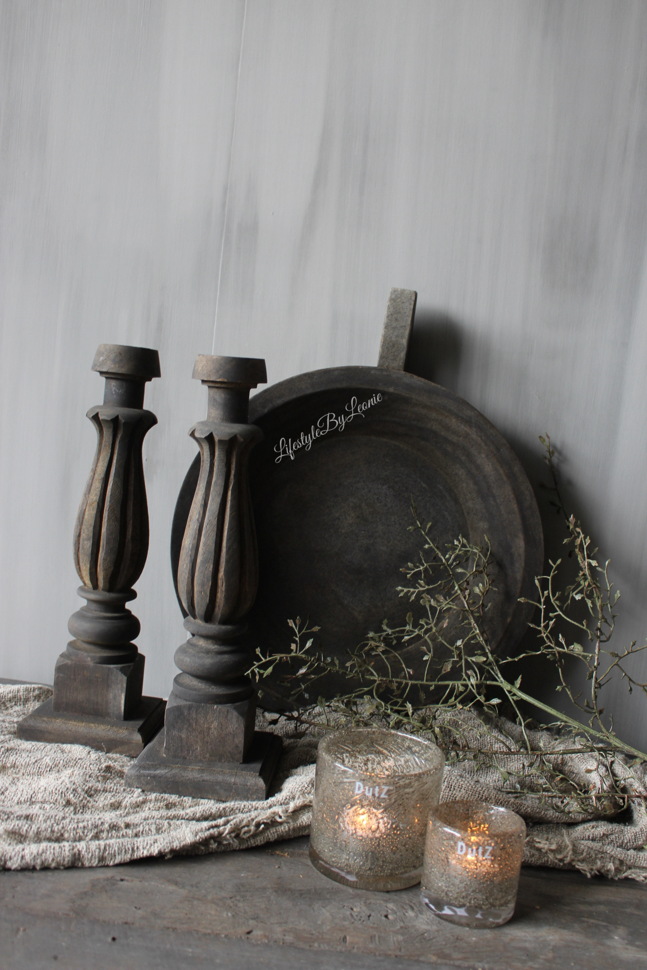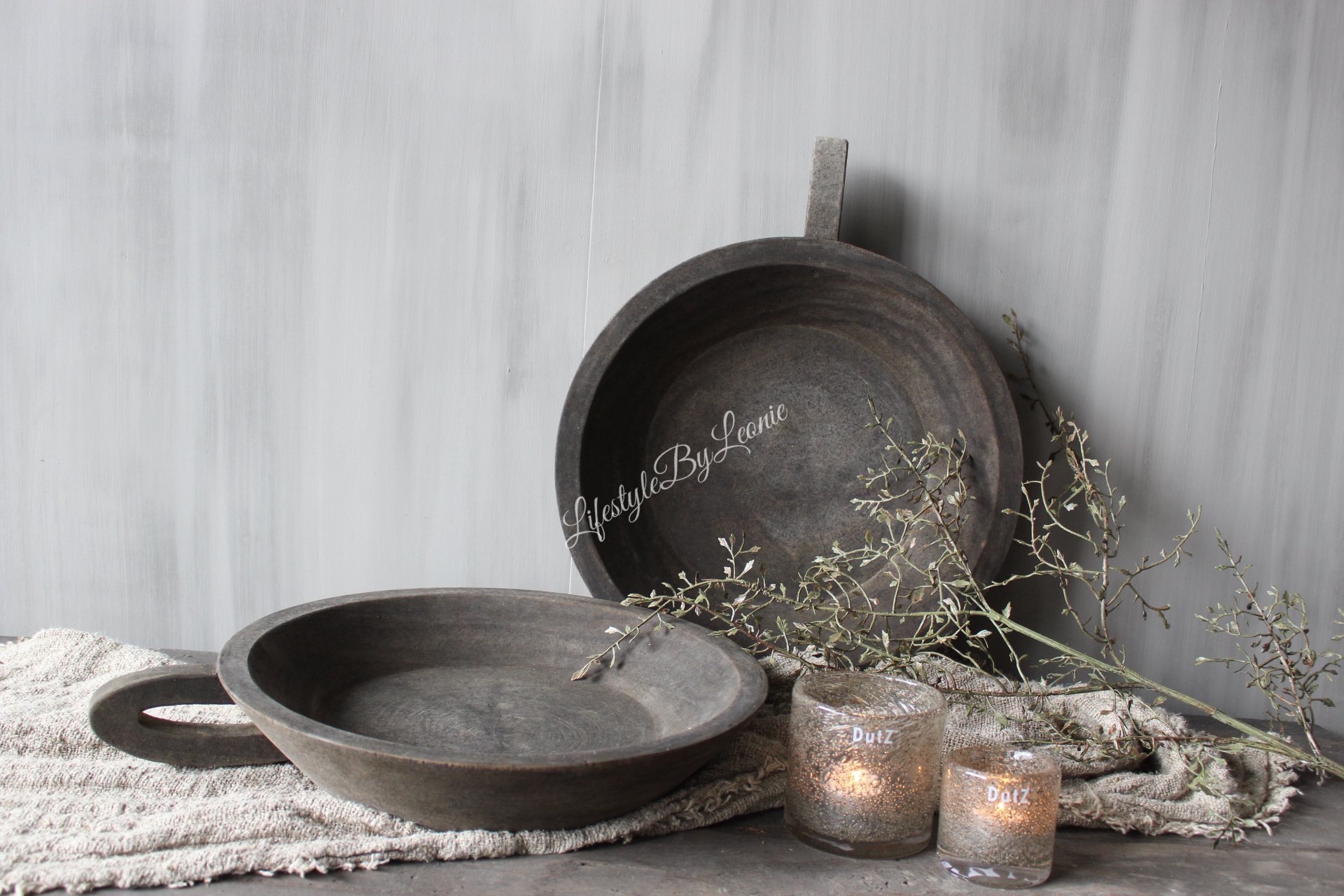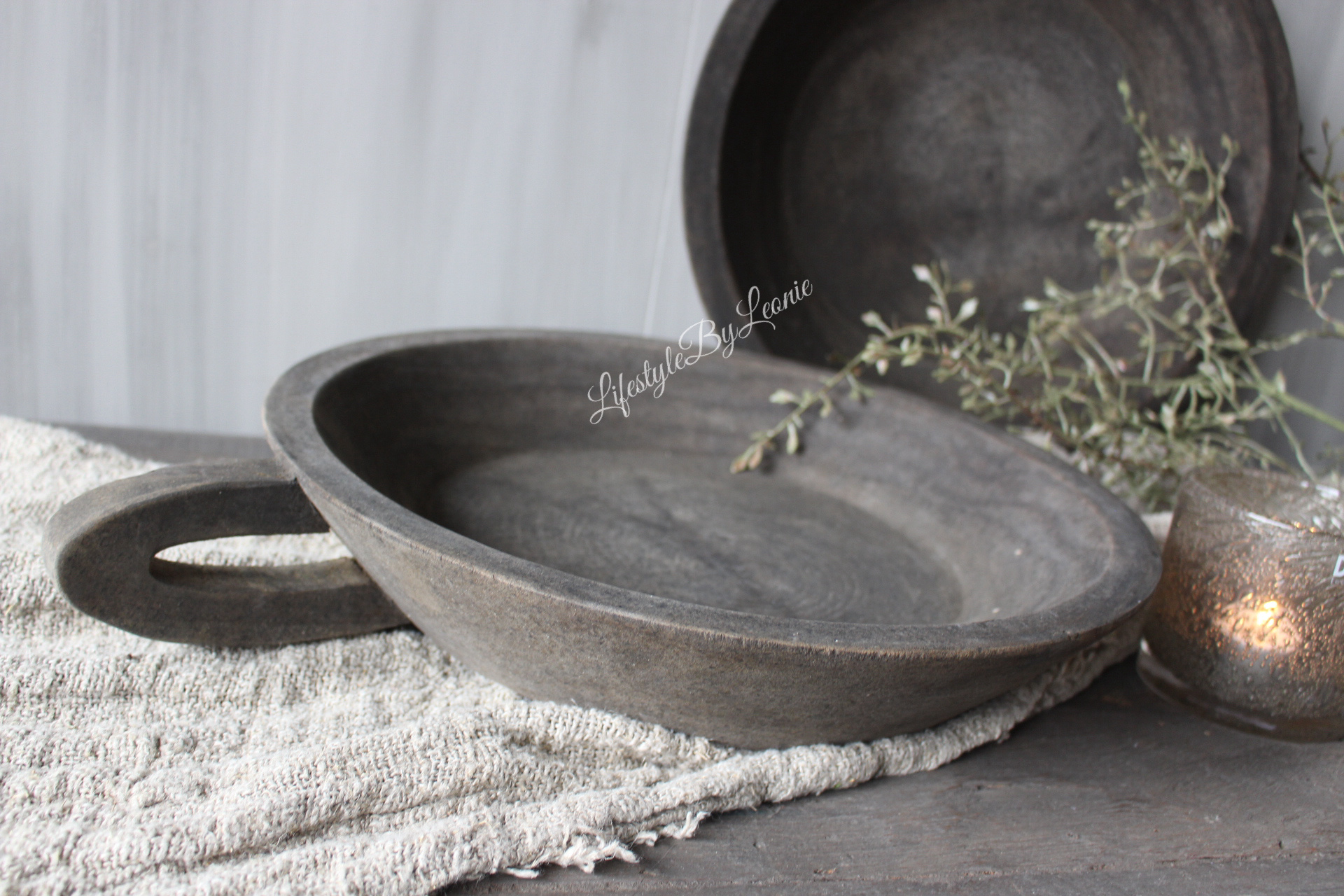Mooie zware houten bak met handvat in Antique Grey/black washing