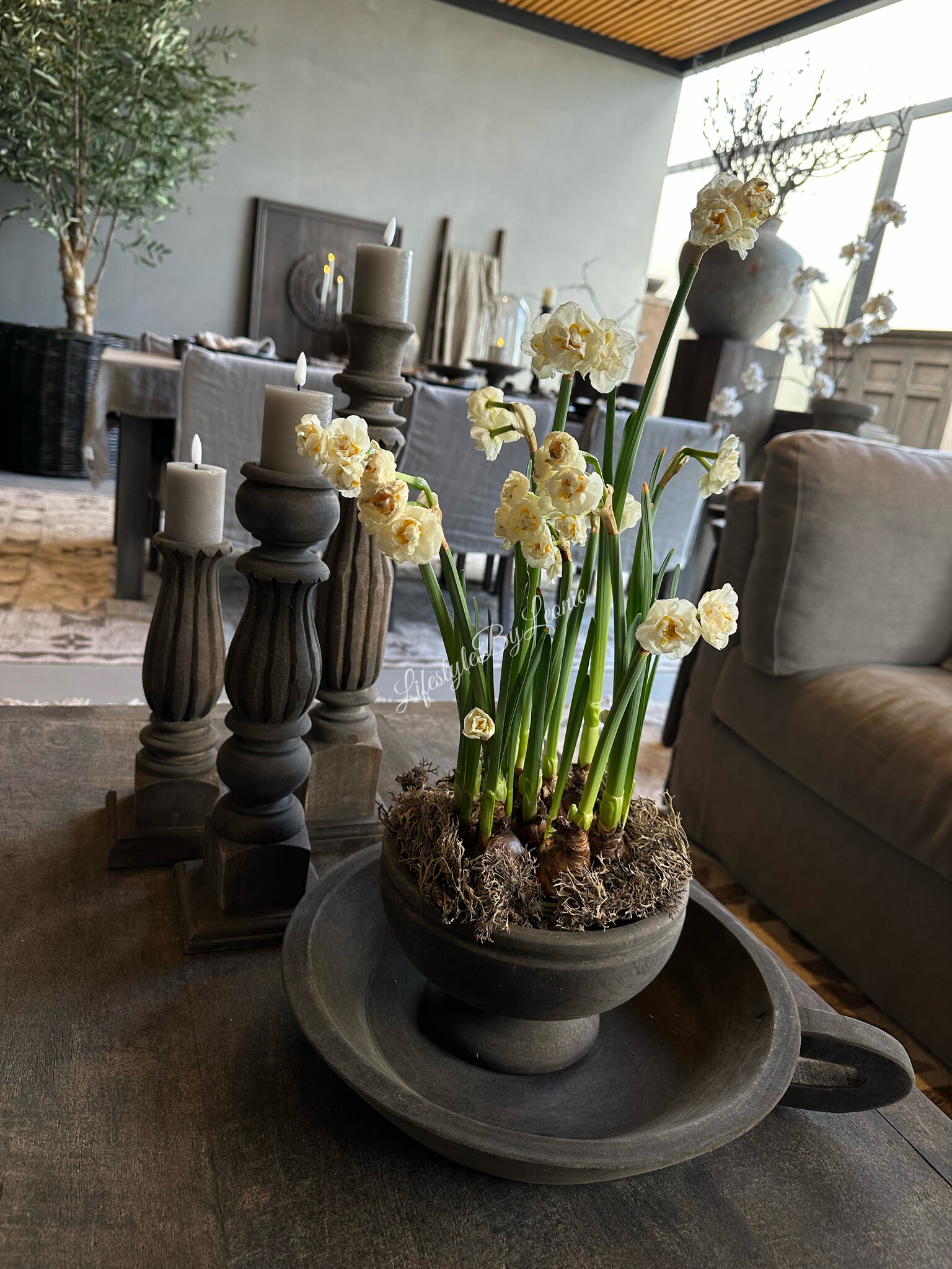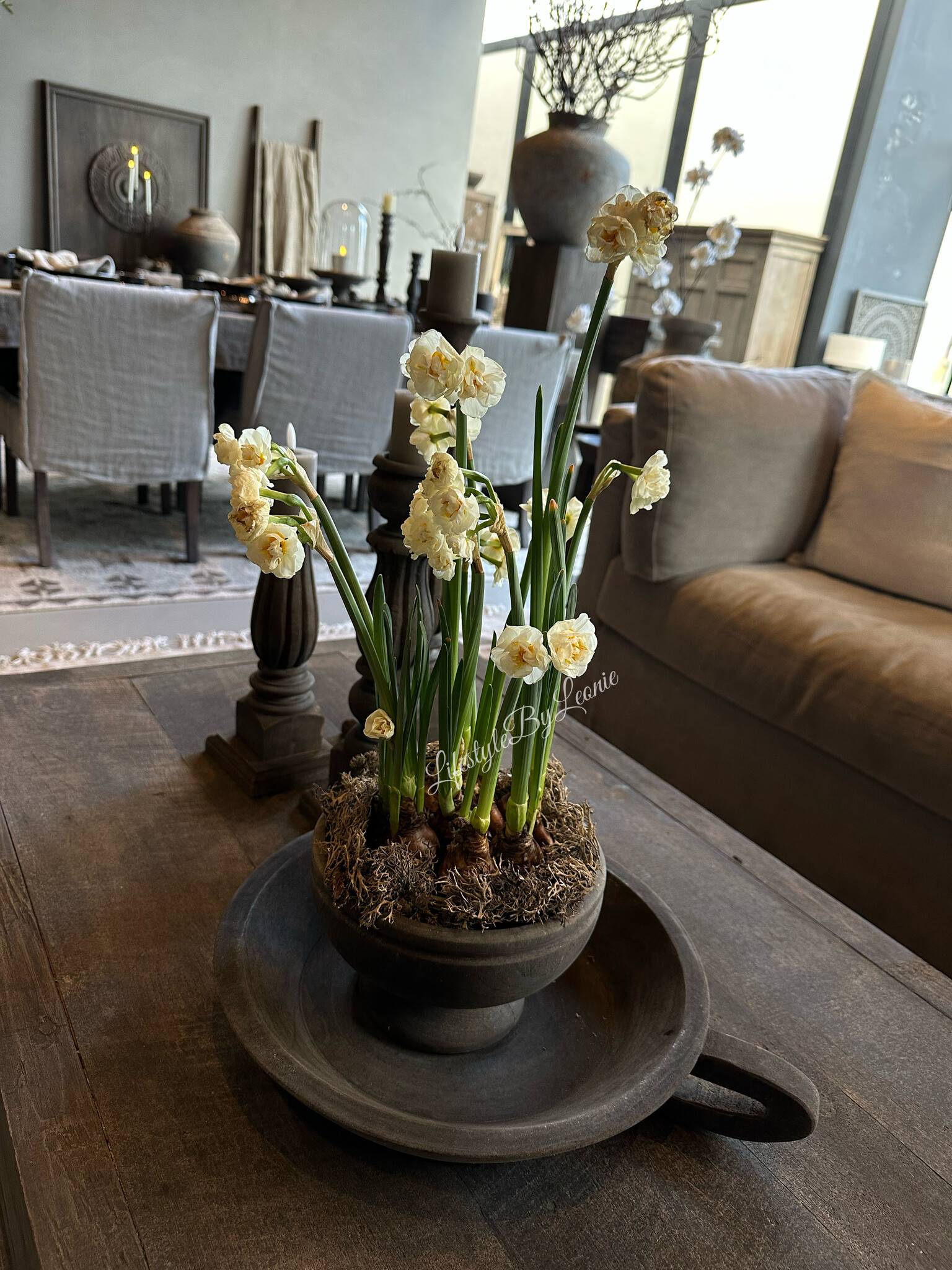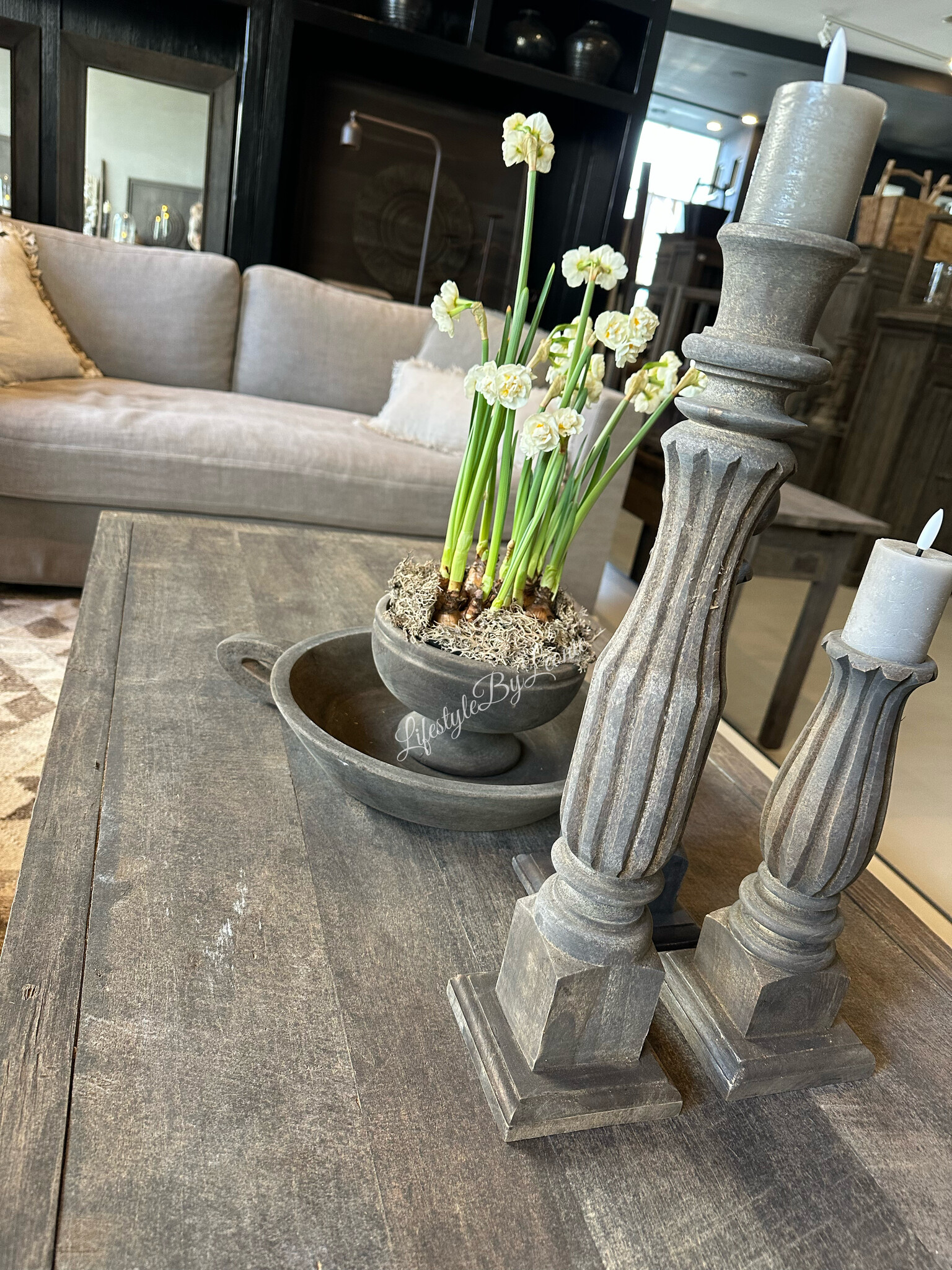 Mooie zware houten bak met handvat in Antique Grey/black washing