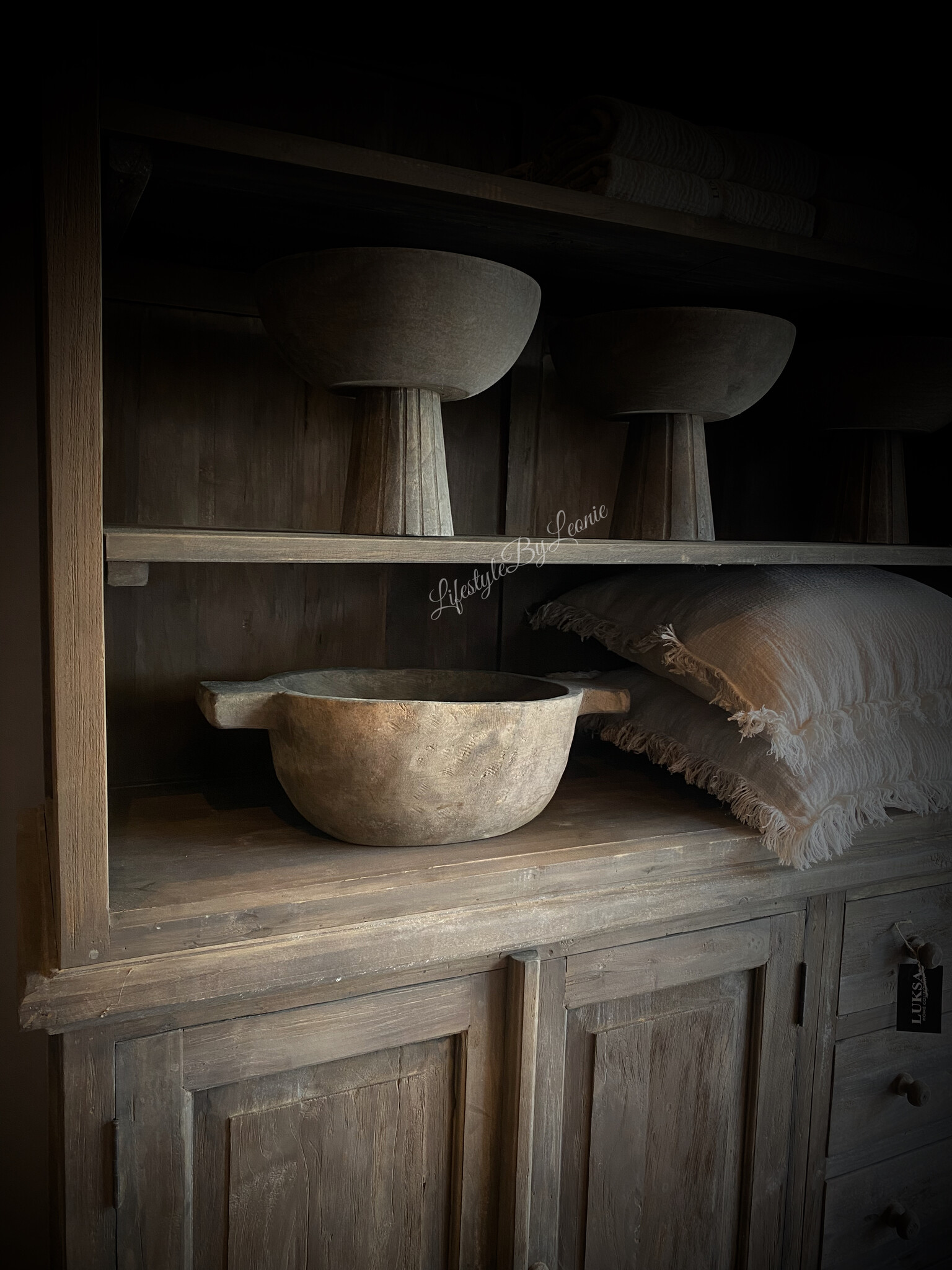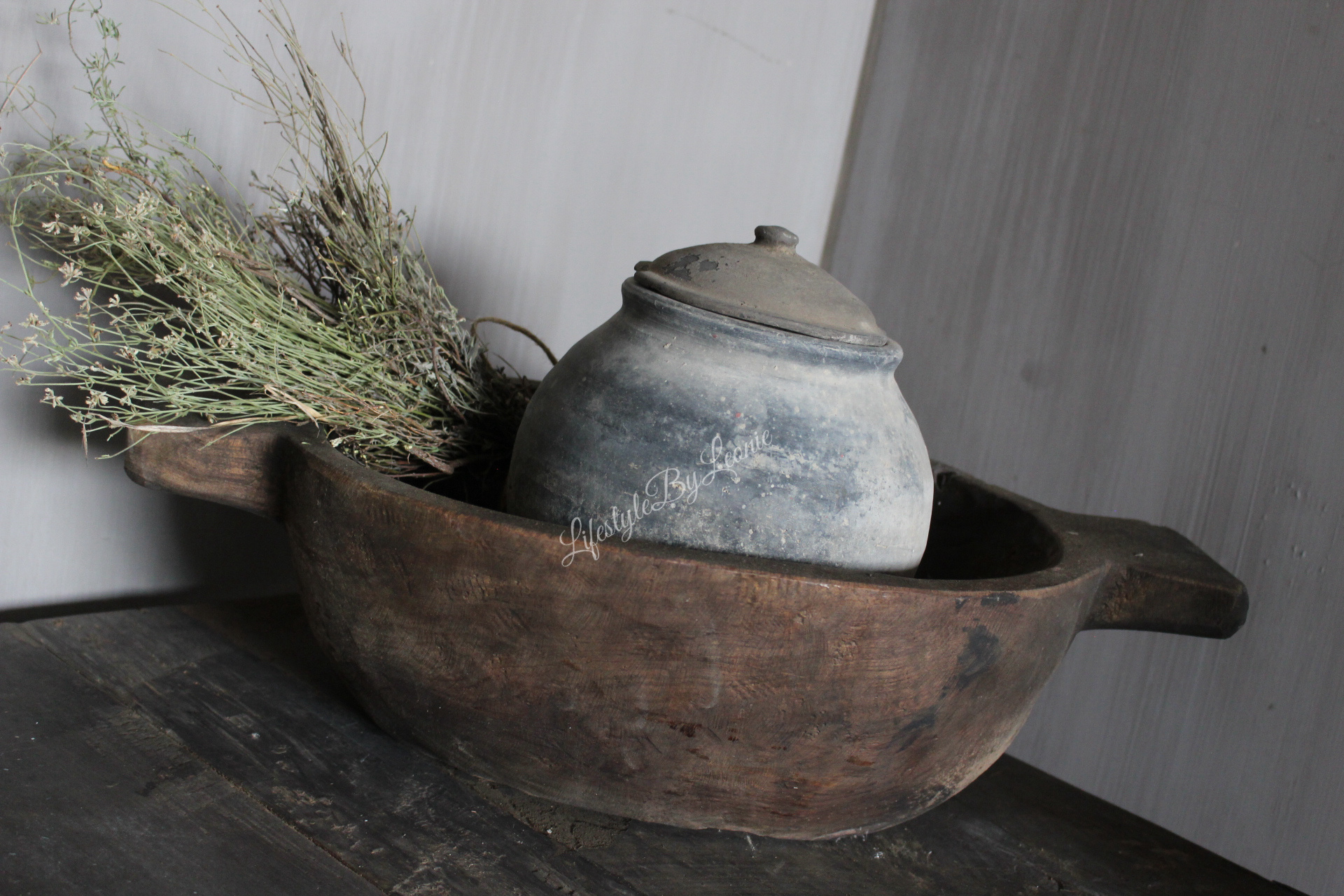 Deze robuuste houten trog van Luksa, met een stoere grey wash afwerking, is de perfecte mix van functionaliteit en stijl. De stevige handgrepen en het 50 cm formaat maken het niet alleen een praktisch item voor op tafel of in je interieur, maar ook een echt statement stuk. Het grijze hout en de sobere uitstraling passen perfect in een landelijke, industriële of minimalistische inrichting. Gebruik de trog voor het opbergen van kleinere voorwerpen of als decoratief element in je huis.
