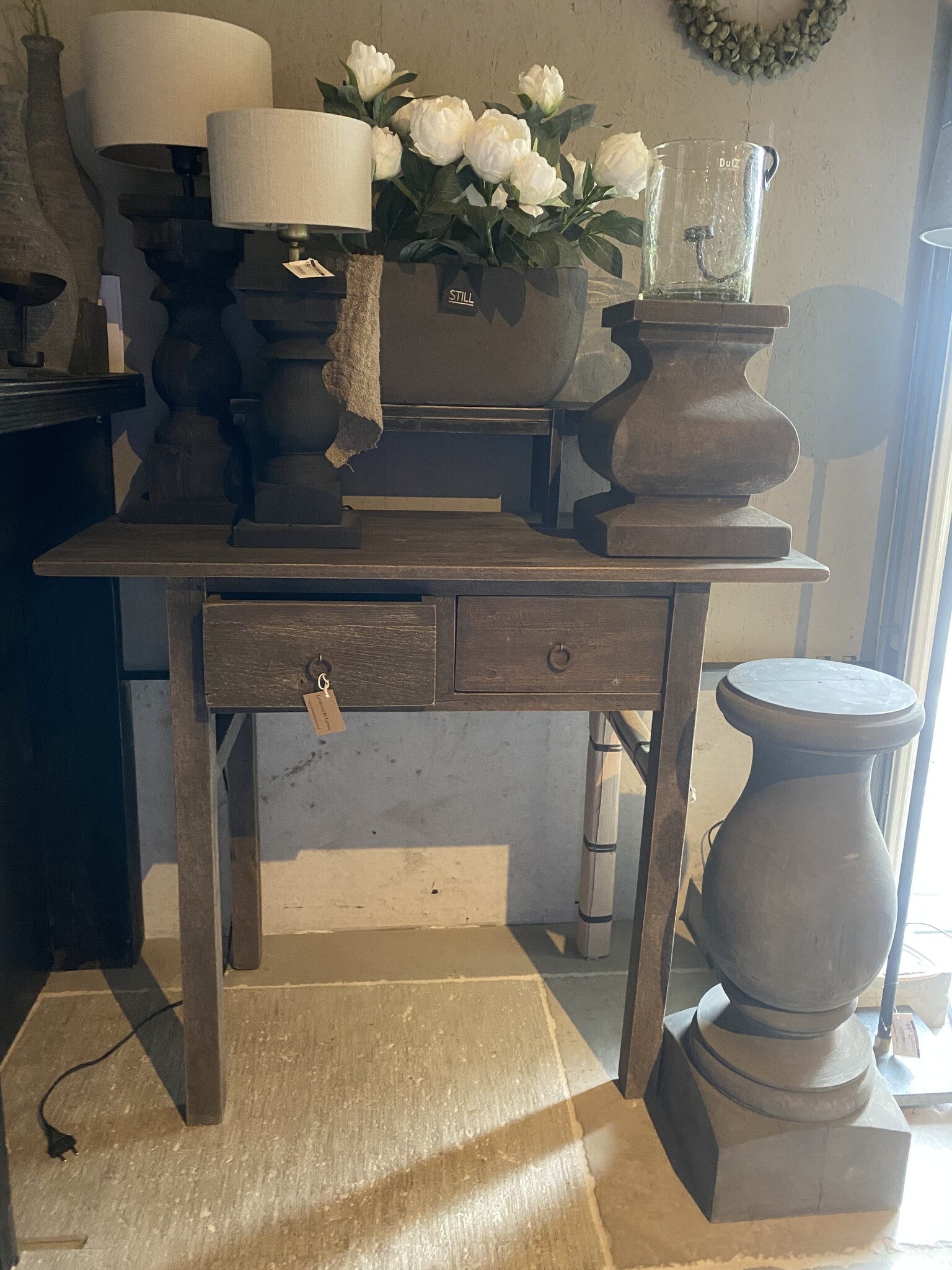 Mooie wandtafel van LUKSA in de kleur antique grey. Deze stoere wandtafel is 100 x 45 x 85 cm groot.