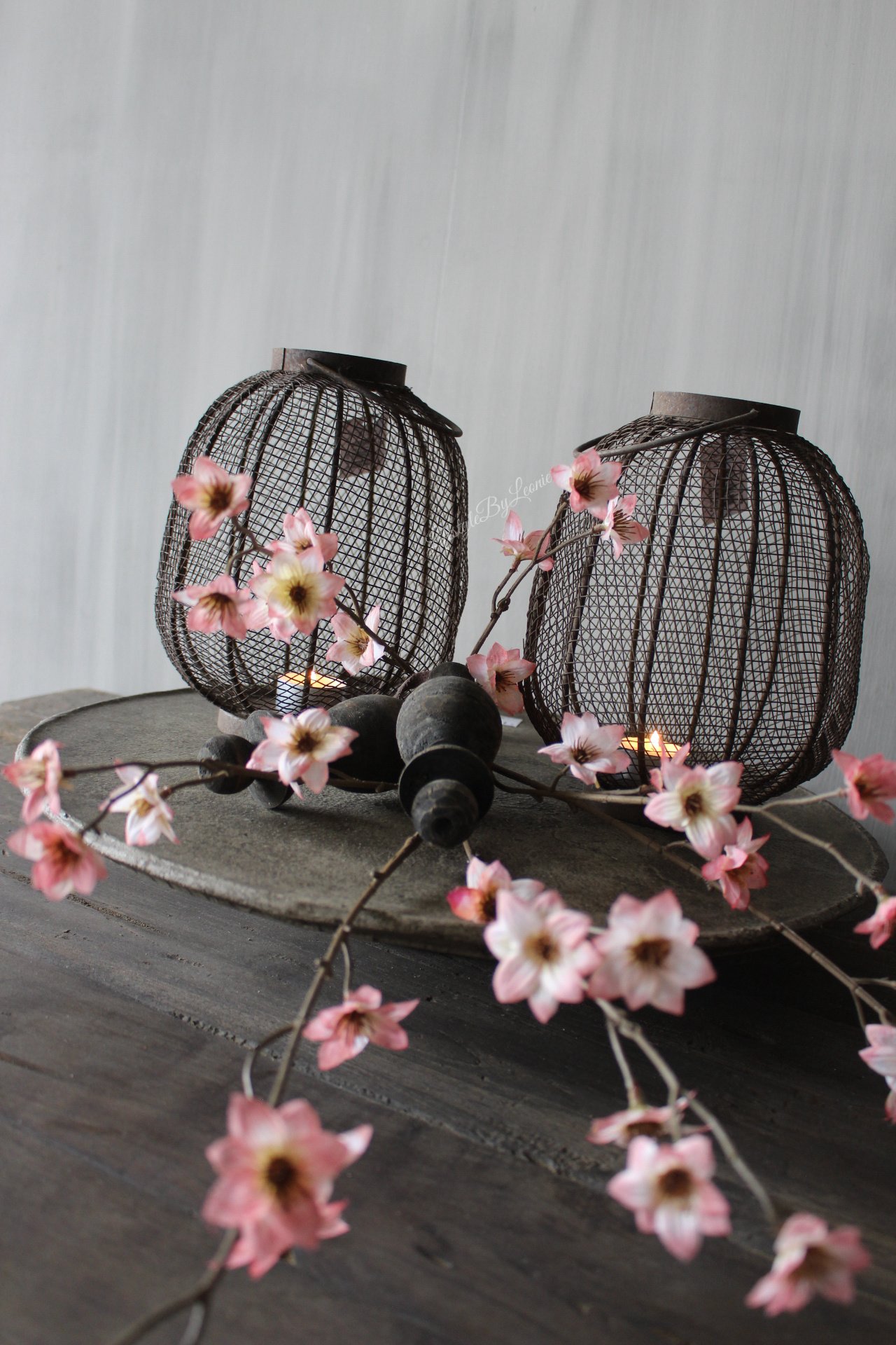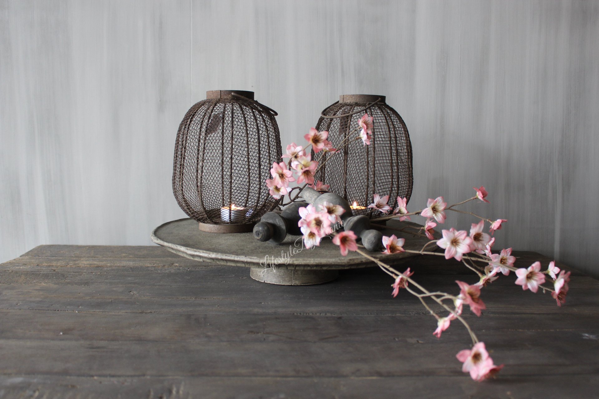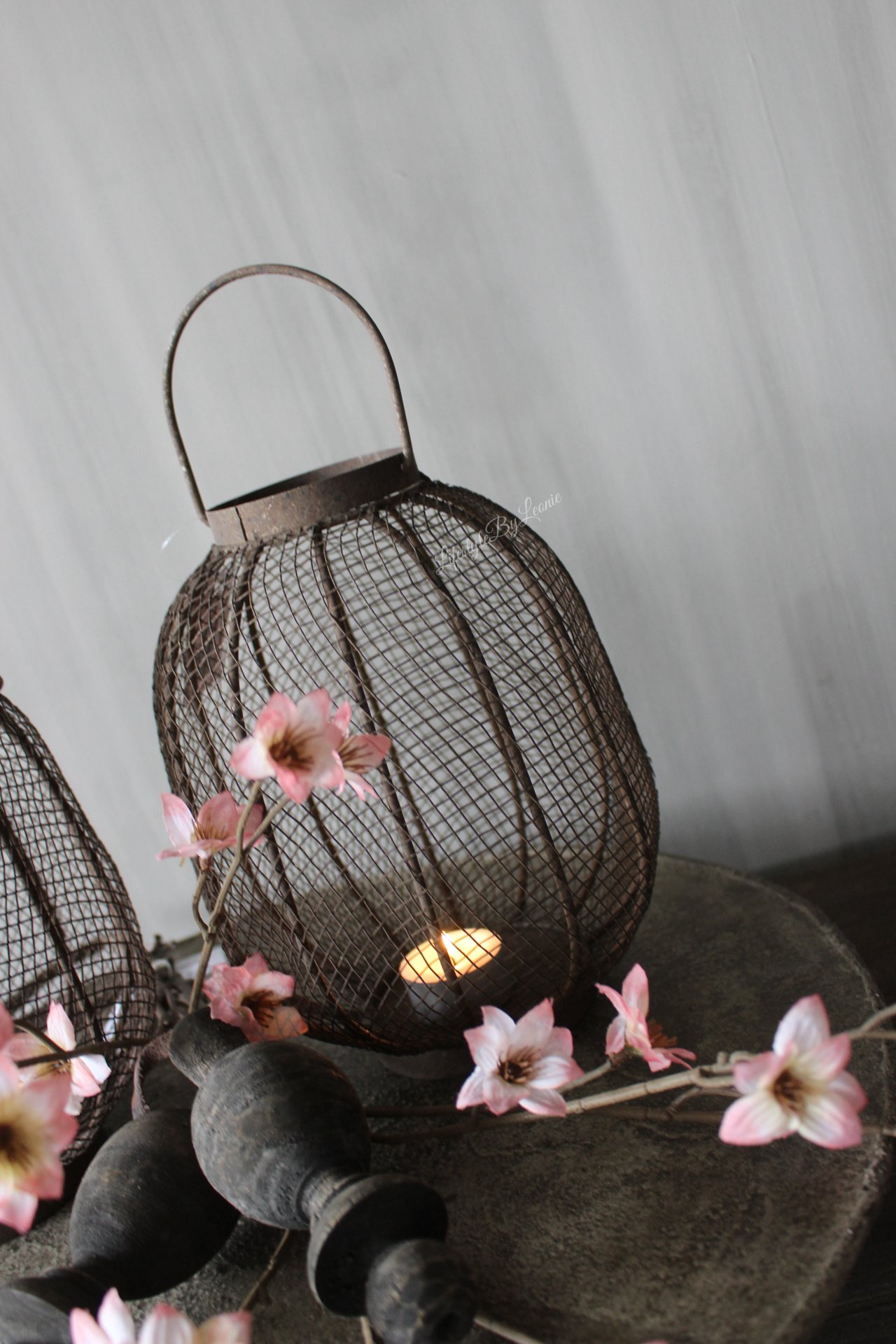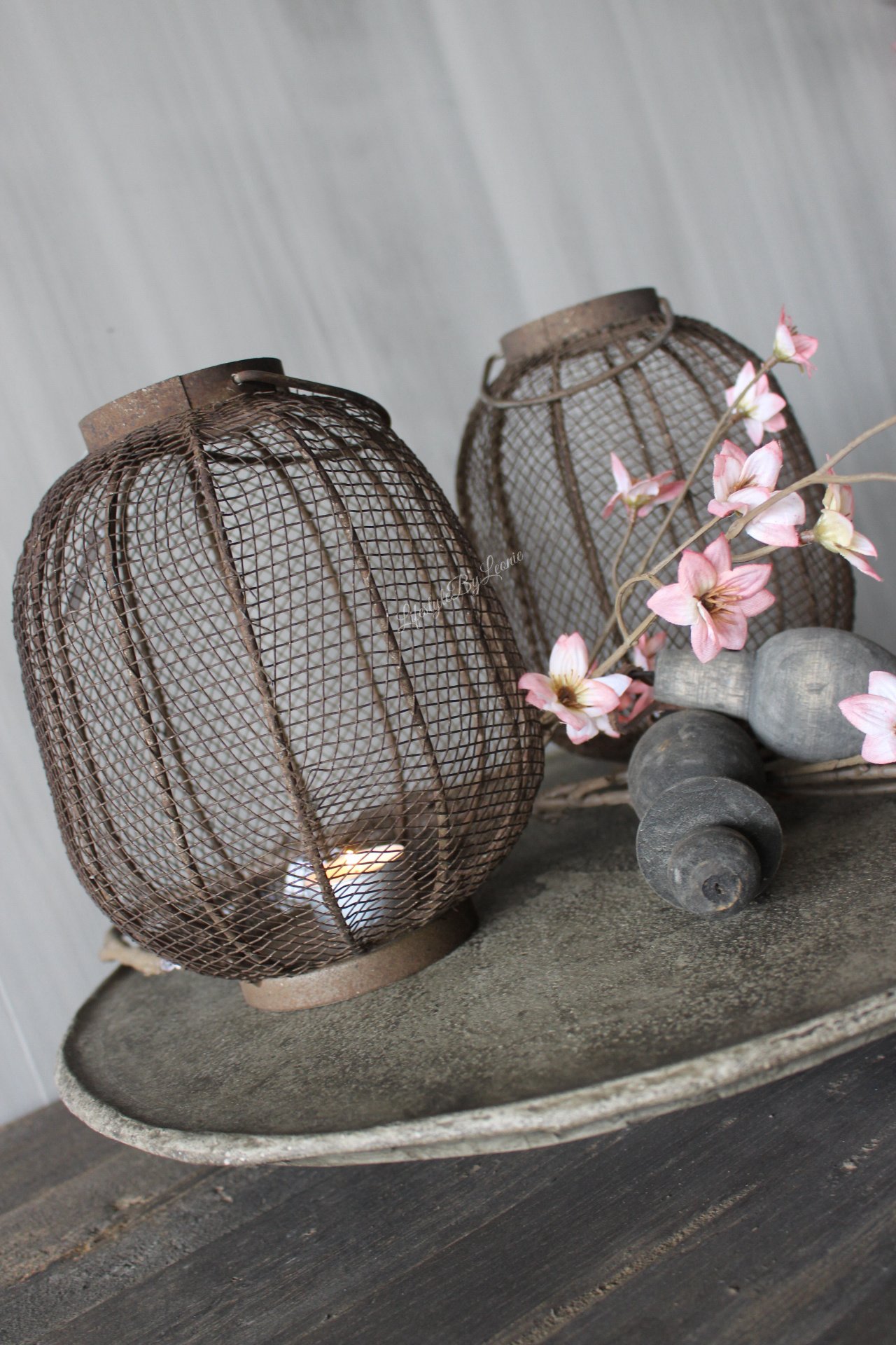 Mooi roestig sober windlicht van metaal gaas