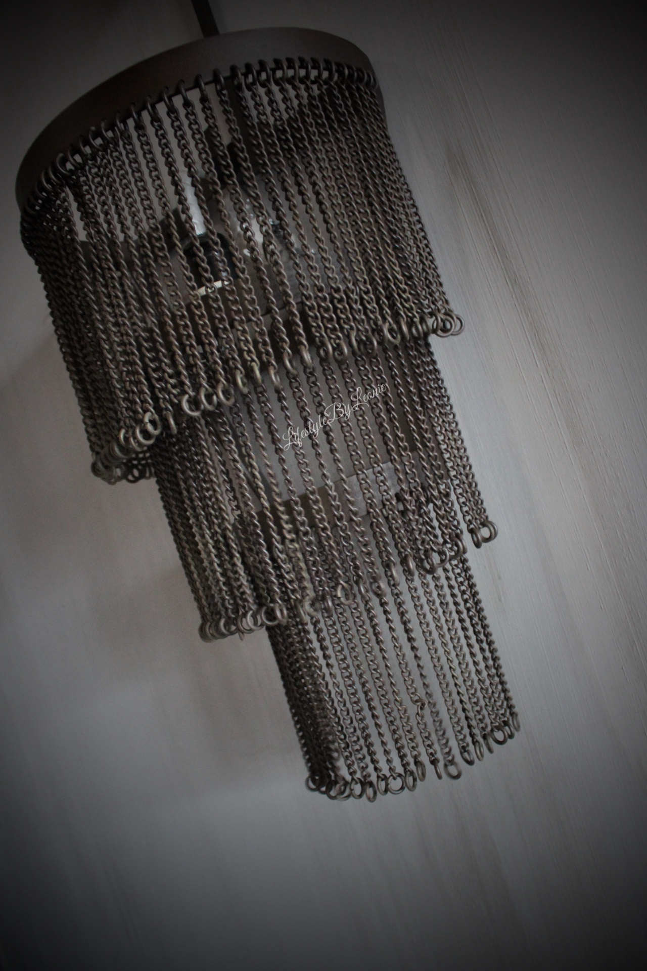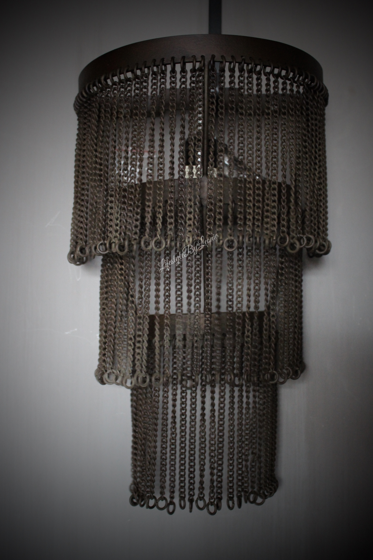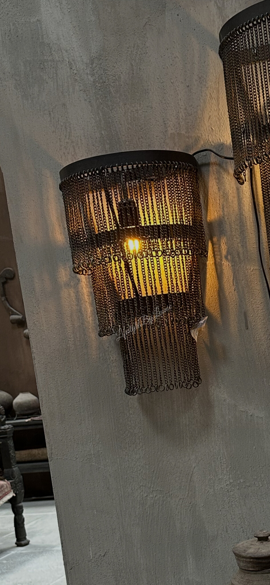Wandlamp Cheri is een mooie sobere metalen wandlamp in warme bruine kleur. De lamp is gemaakt van metalen kettingen en is 50 cm groot.