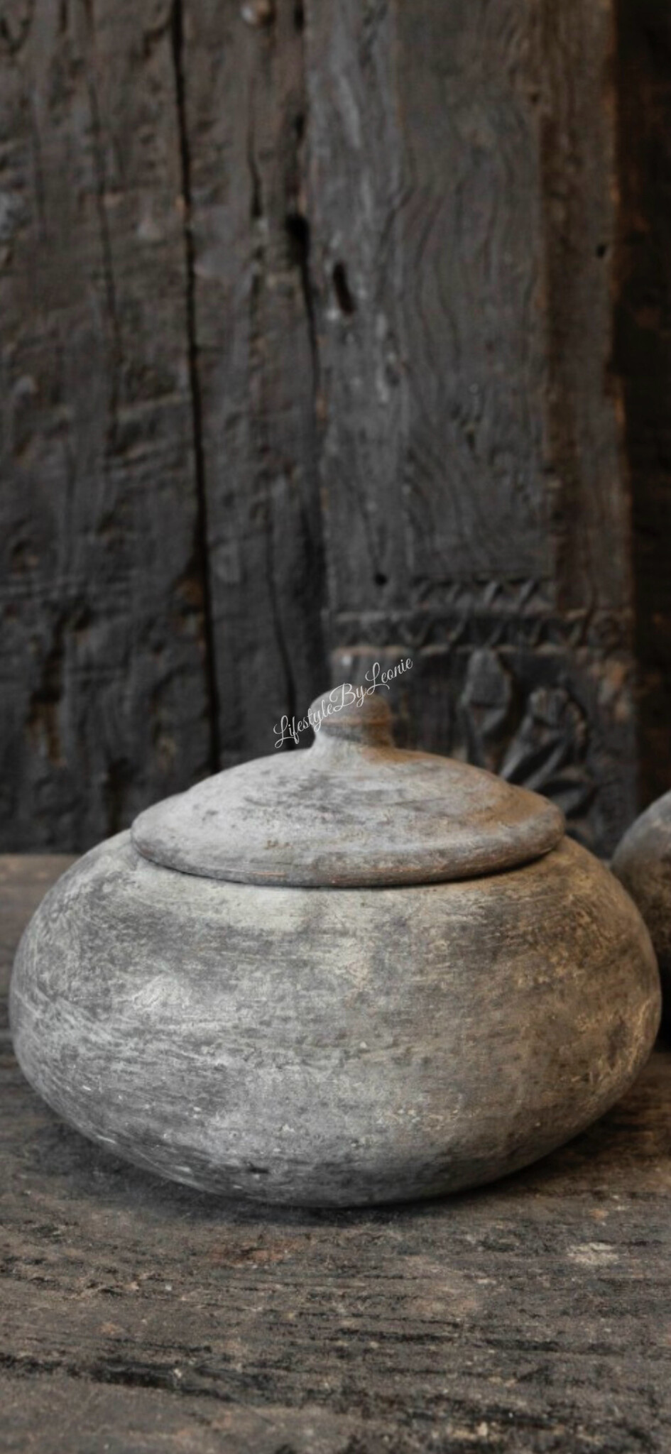 Tabakspot Old barn is een mooie bolvormige stenen pot met een deksel. Leuk en decoratief voor in de keuken.