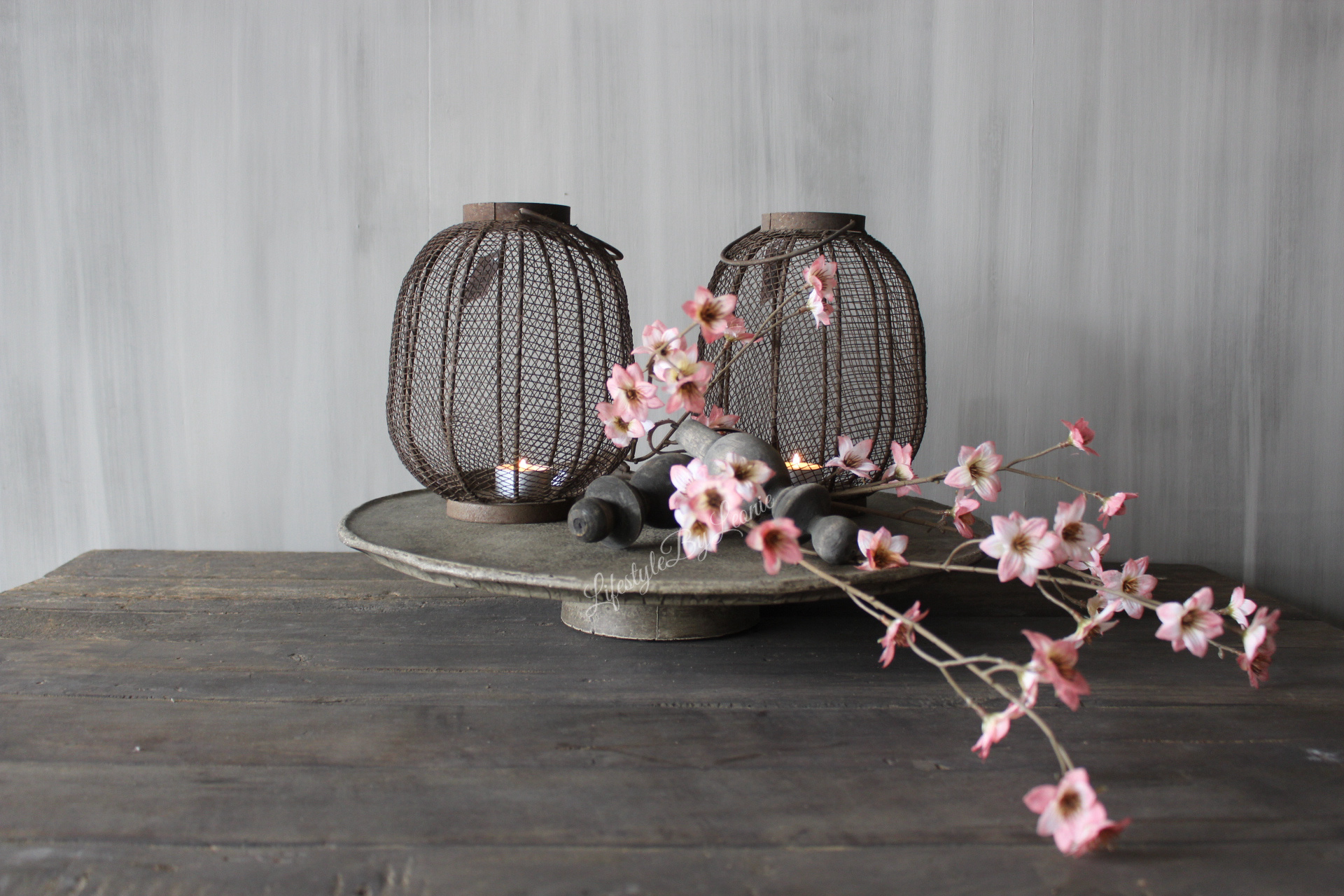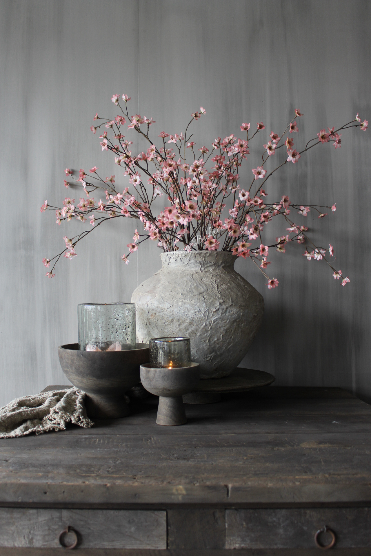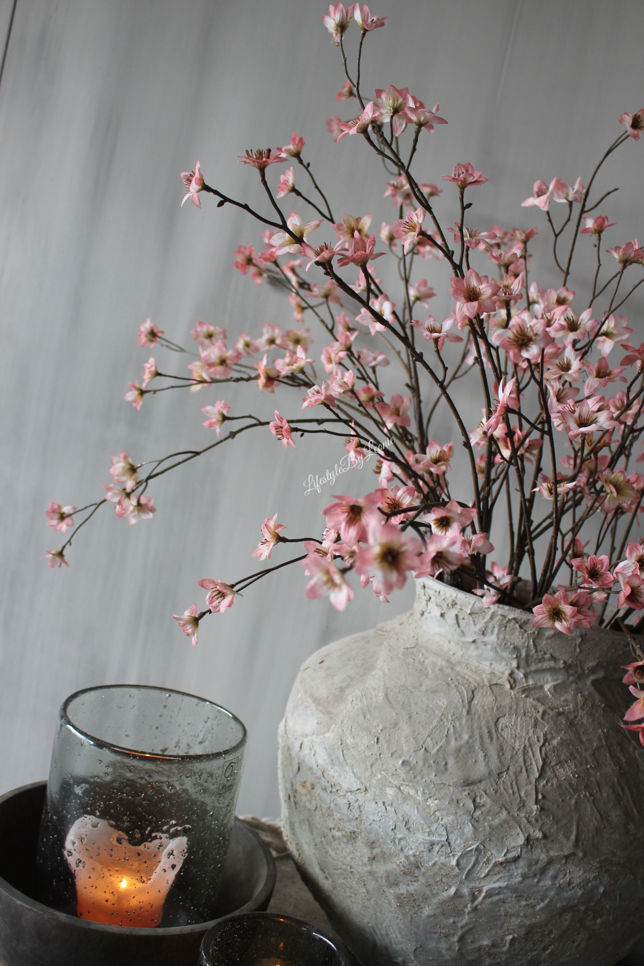 Prachtige kunst bloesemtak met kleine zachtroze bloemetjes. De tak is 111 cm lang.