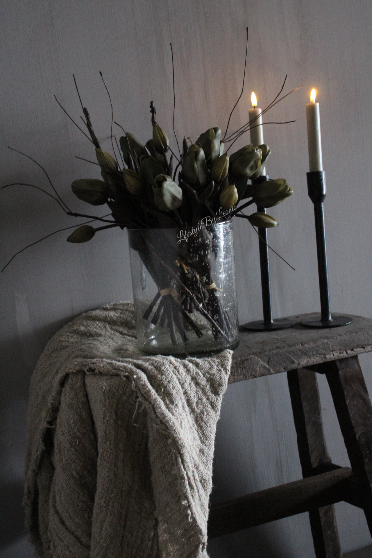 Mooi kunstboeket met namaak tulpen. De tulpen hebben een groene kleur en zijn 30 cm hoog.