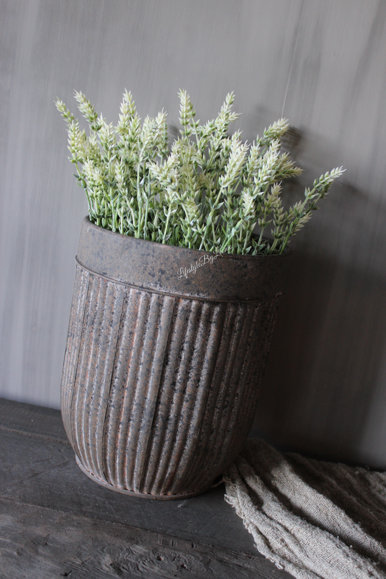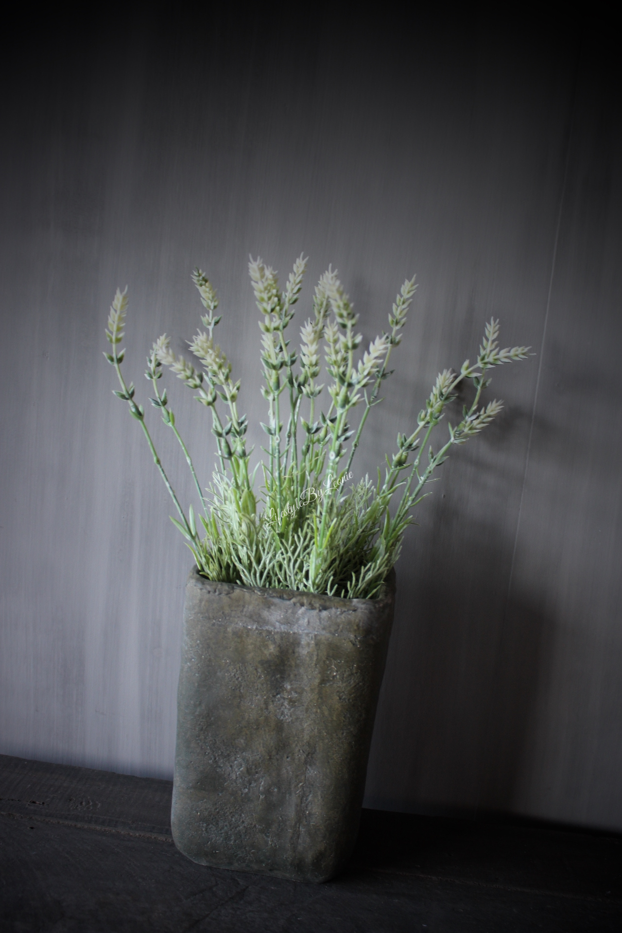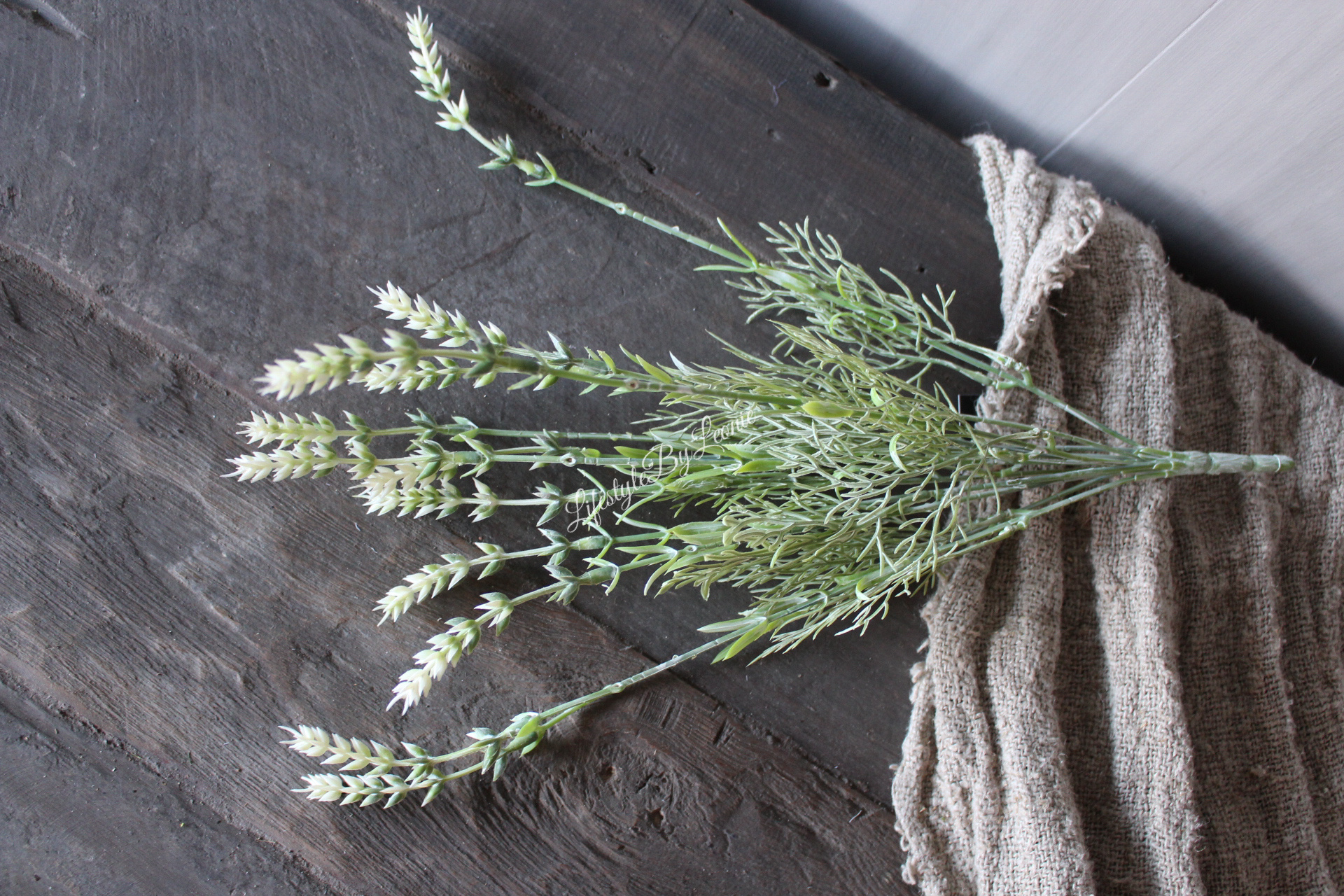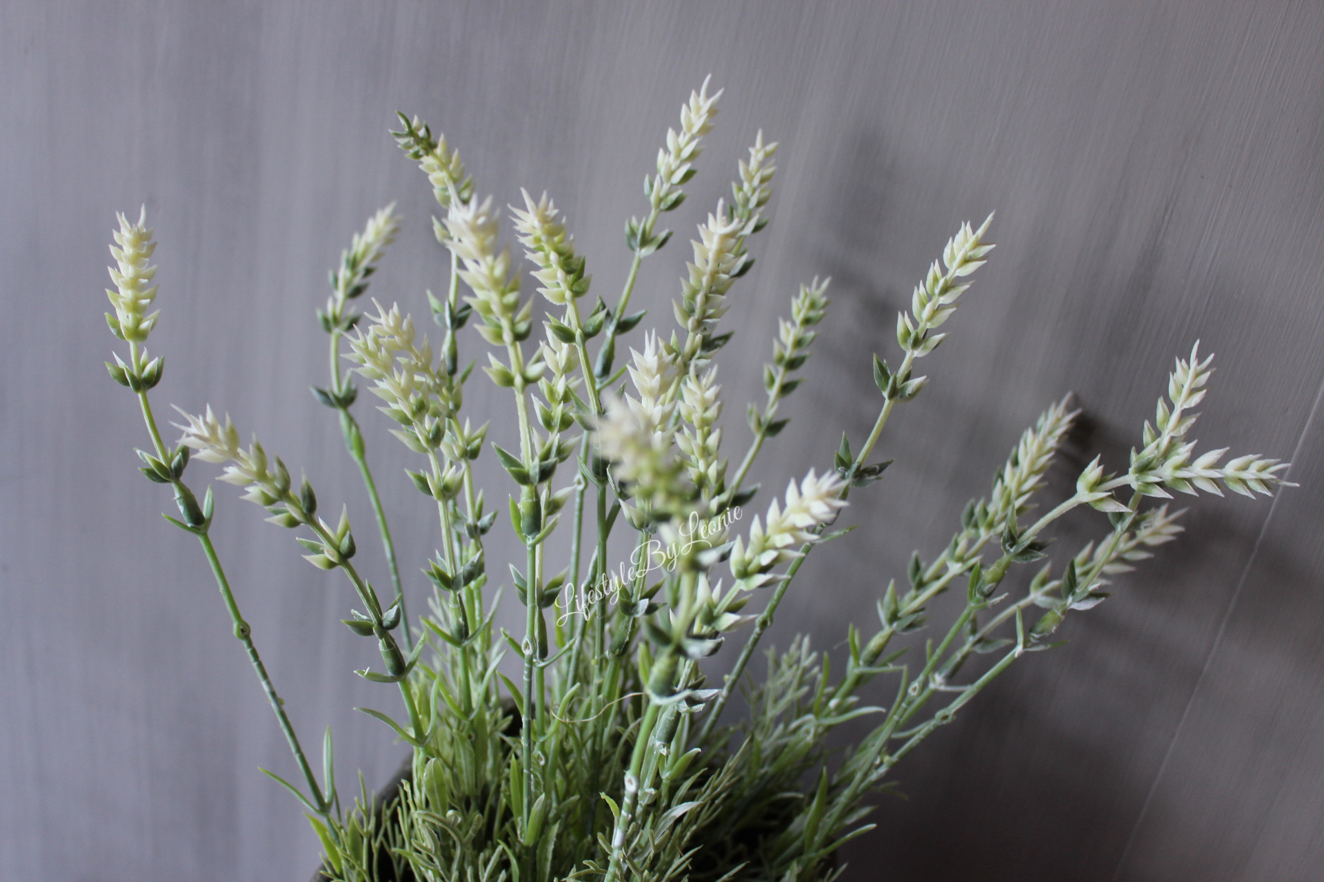 Mooie kunstboeket Lavendel in witte bloemetjes. Erg gezellig en leuk voor binnen en buiten. Dit bosje is 44 cm hoog.