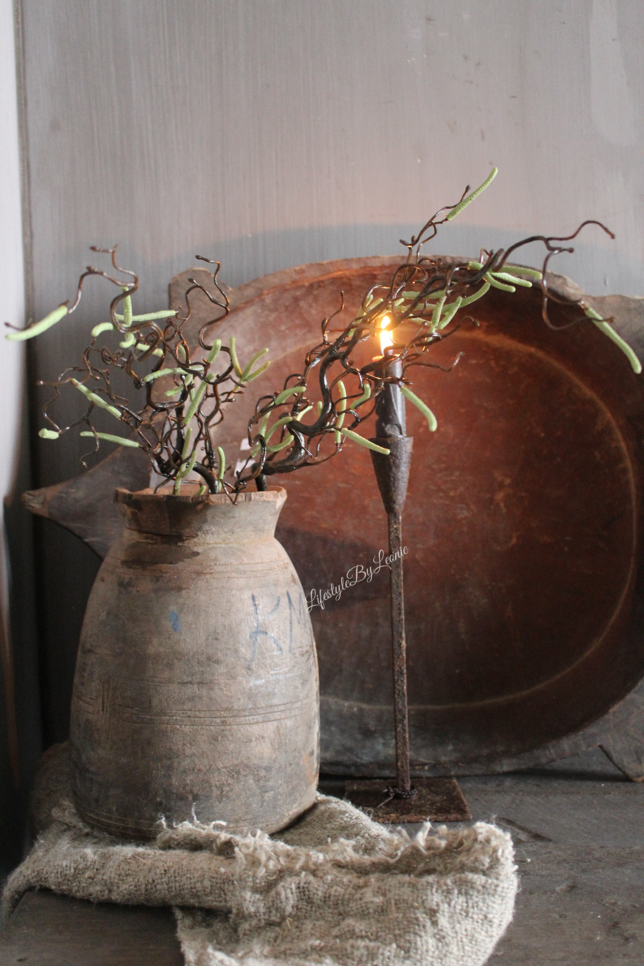 Gezellige kronkelende kunst paastak Corylus. De tak is 70 cm lang en staat bijvoorbeeld leuk in een oude kruik.