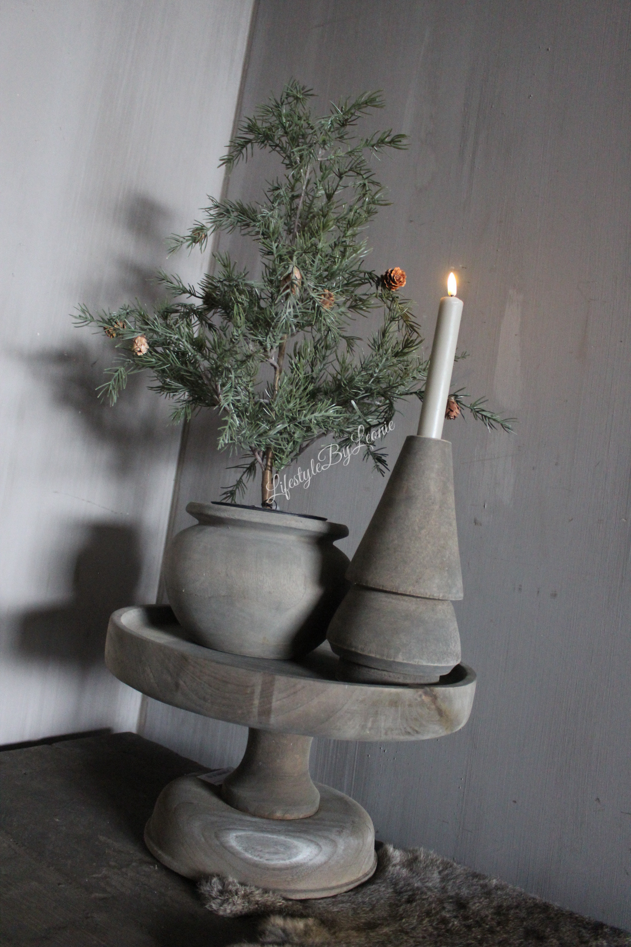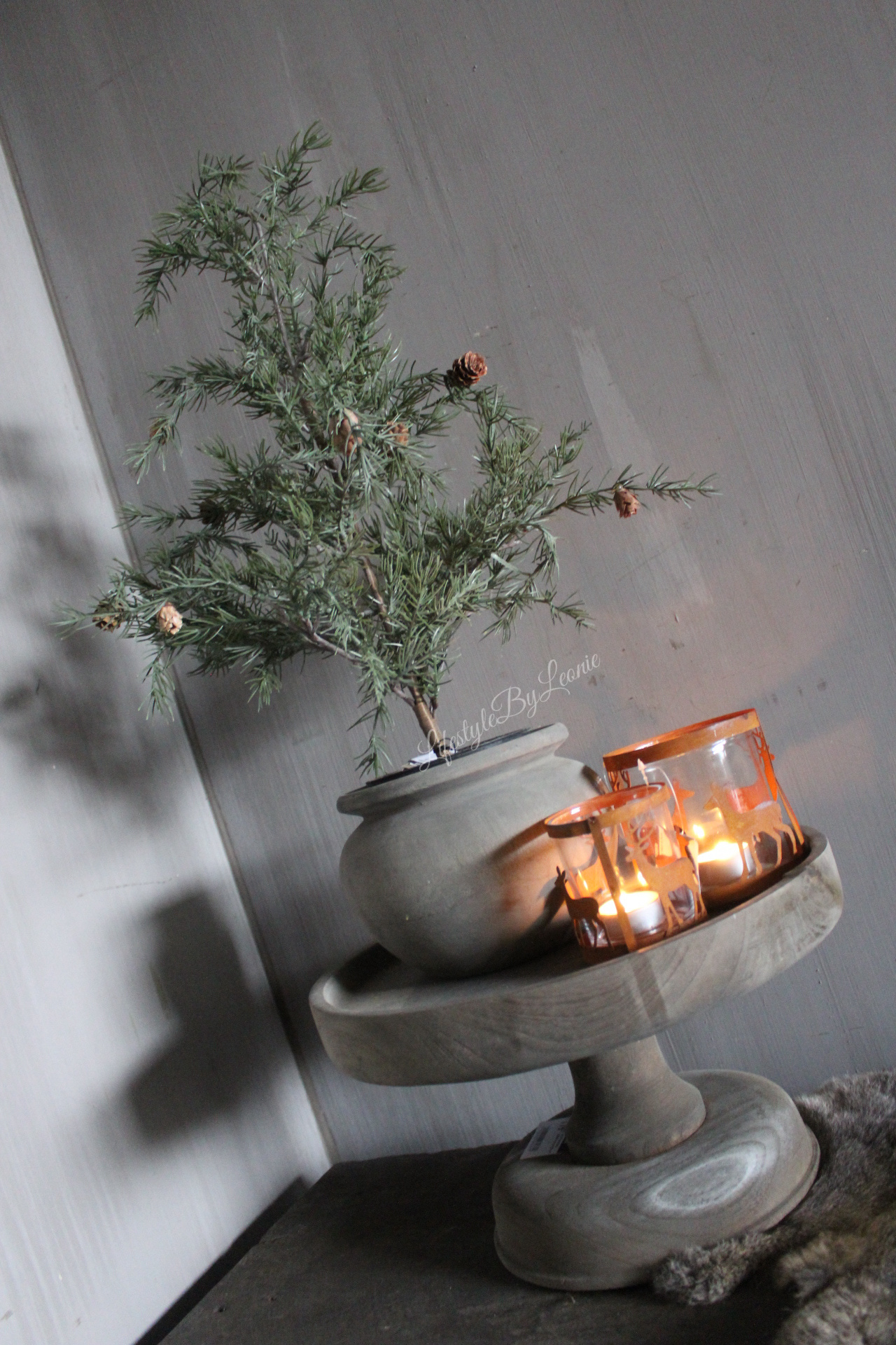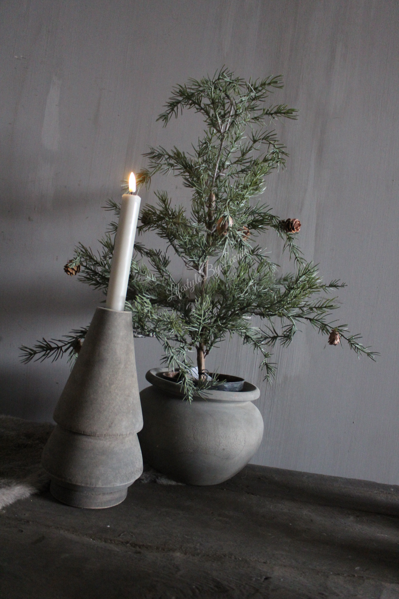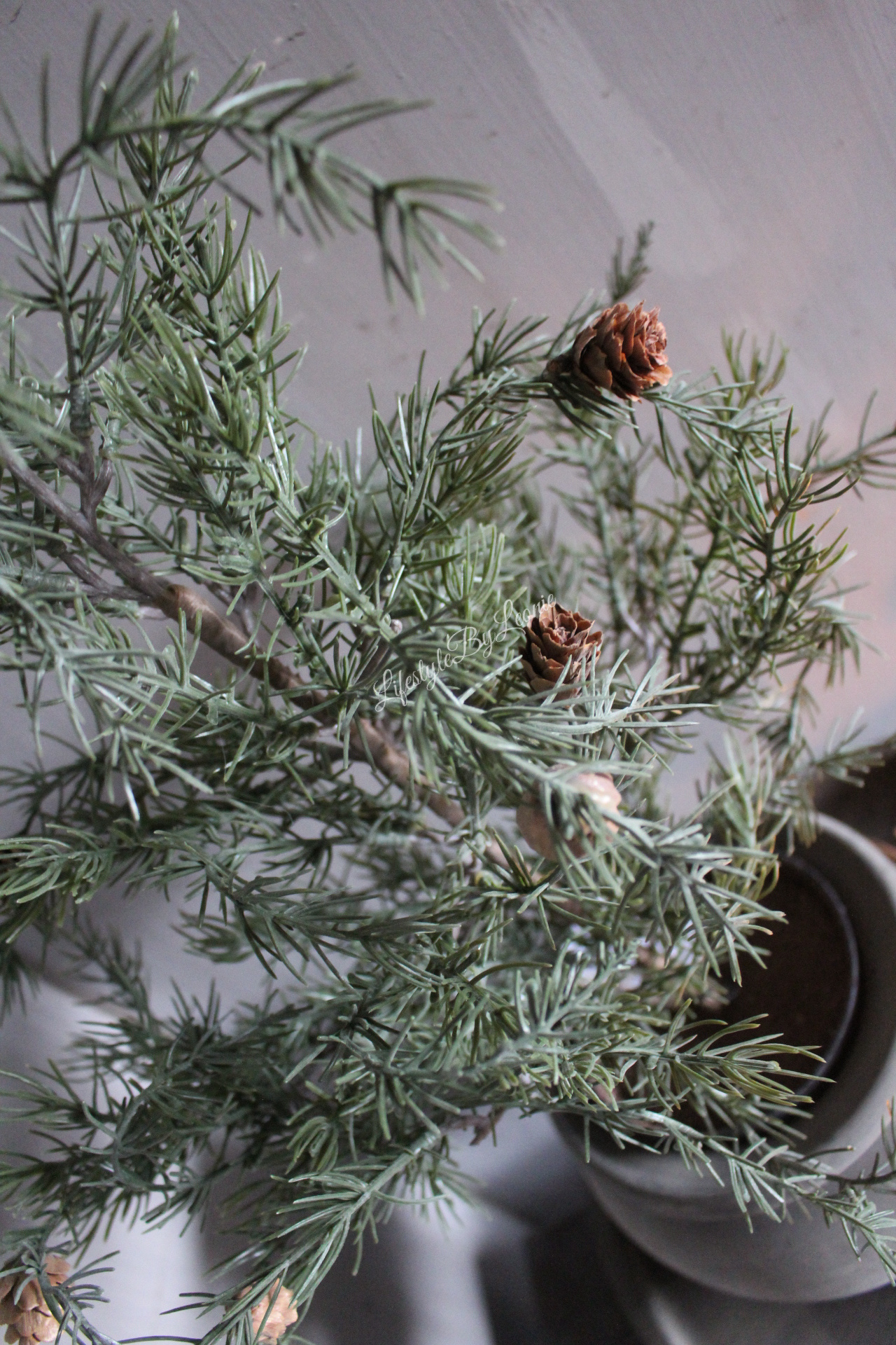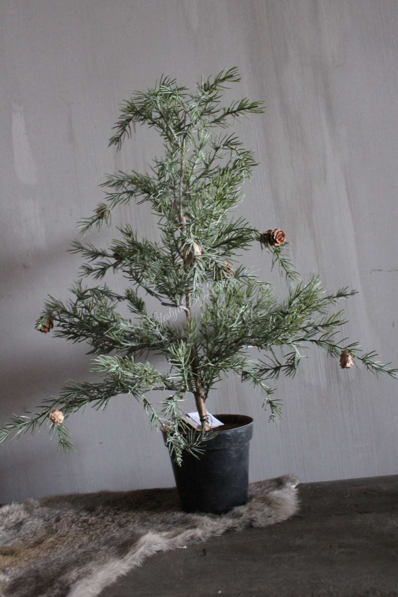 Mooie sobere Cedar kunstboom met kleine dennenappeltjes. Het boompje staat in een pot en is 50 cm hoog. Leuk met de kerst.