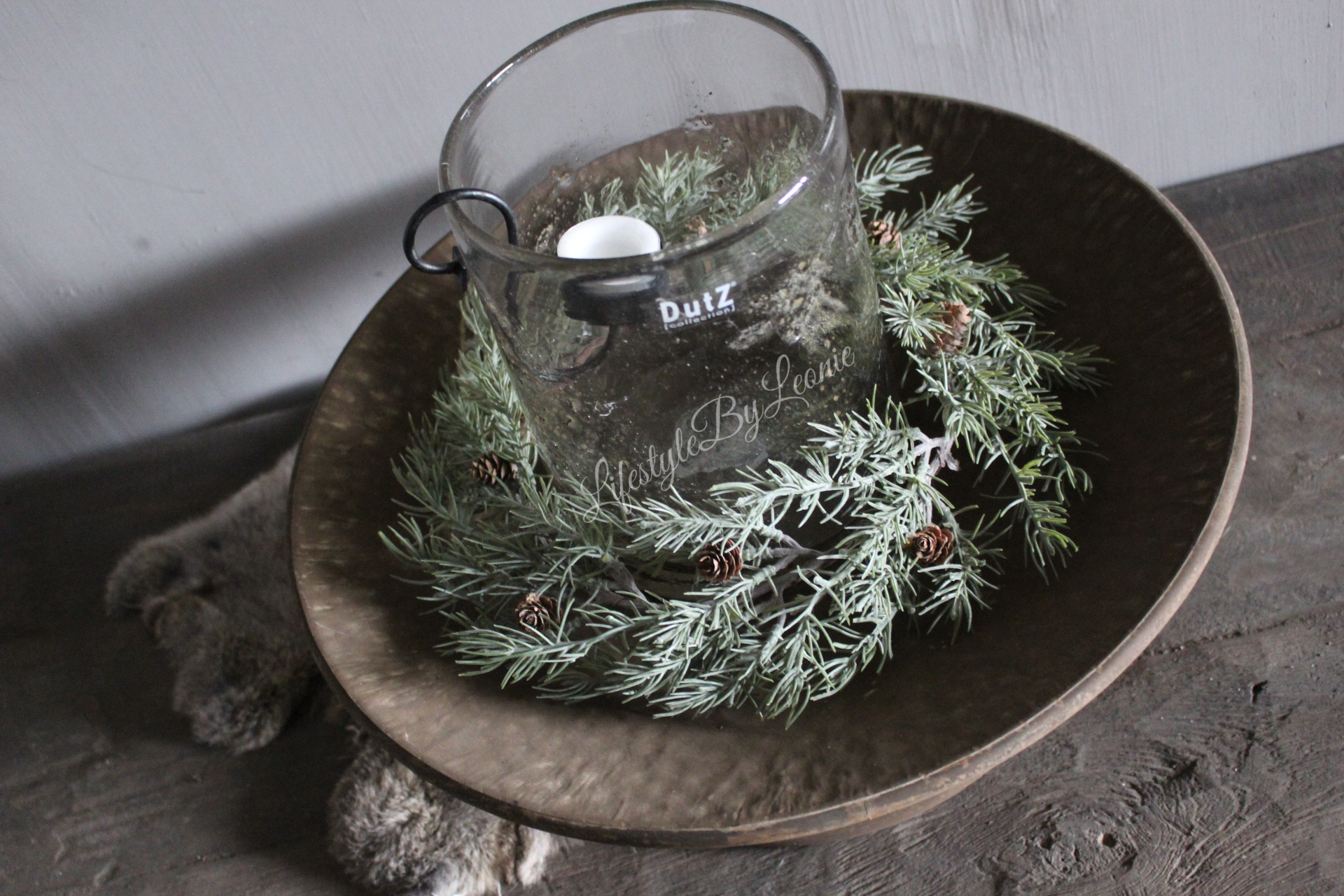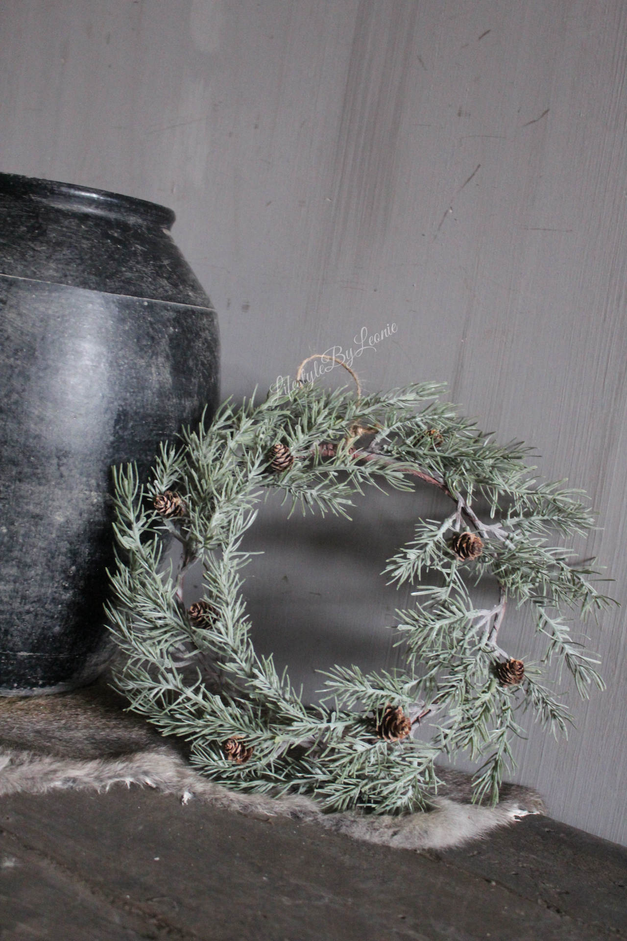 Namaak frosted Cedar / pinecone krans 27 cm
