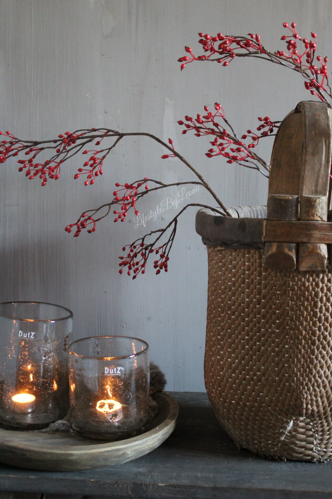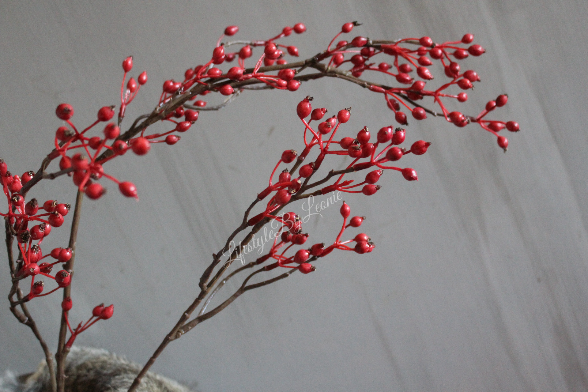 Prachtige volle Rozenbottel kunsttak in een mooie warme rode herfstkleur. De tak is 100 cm lang.