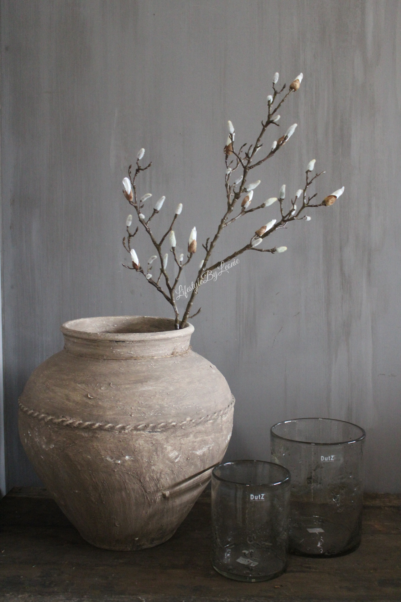 Prachtige lange namaak Magnolia tak met knoppen. De tak is 104 cm lang.