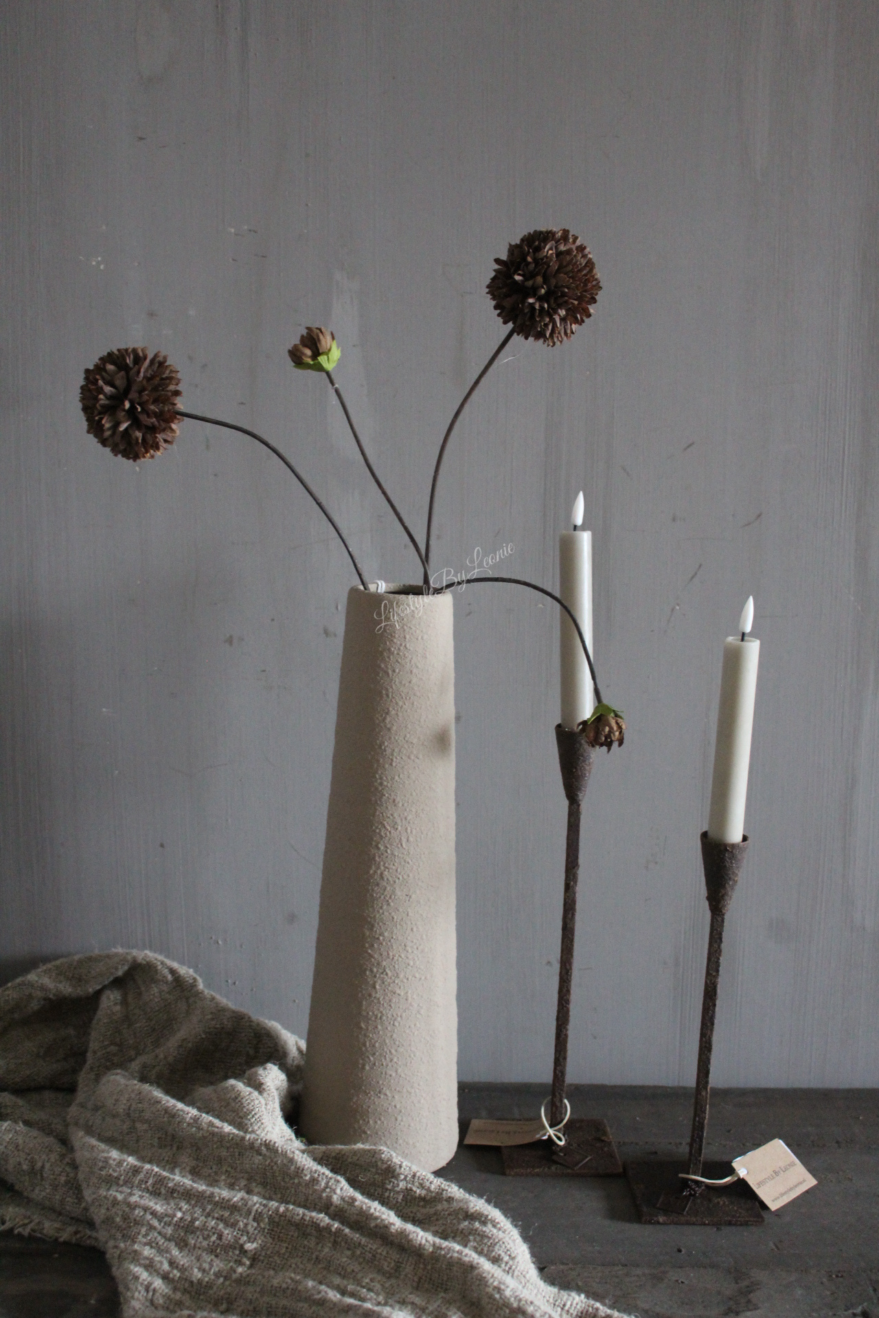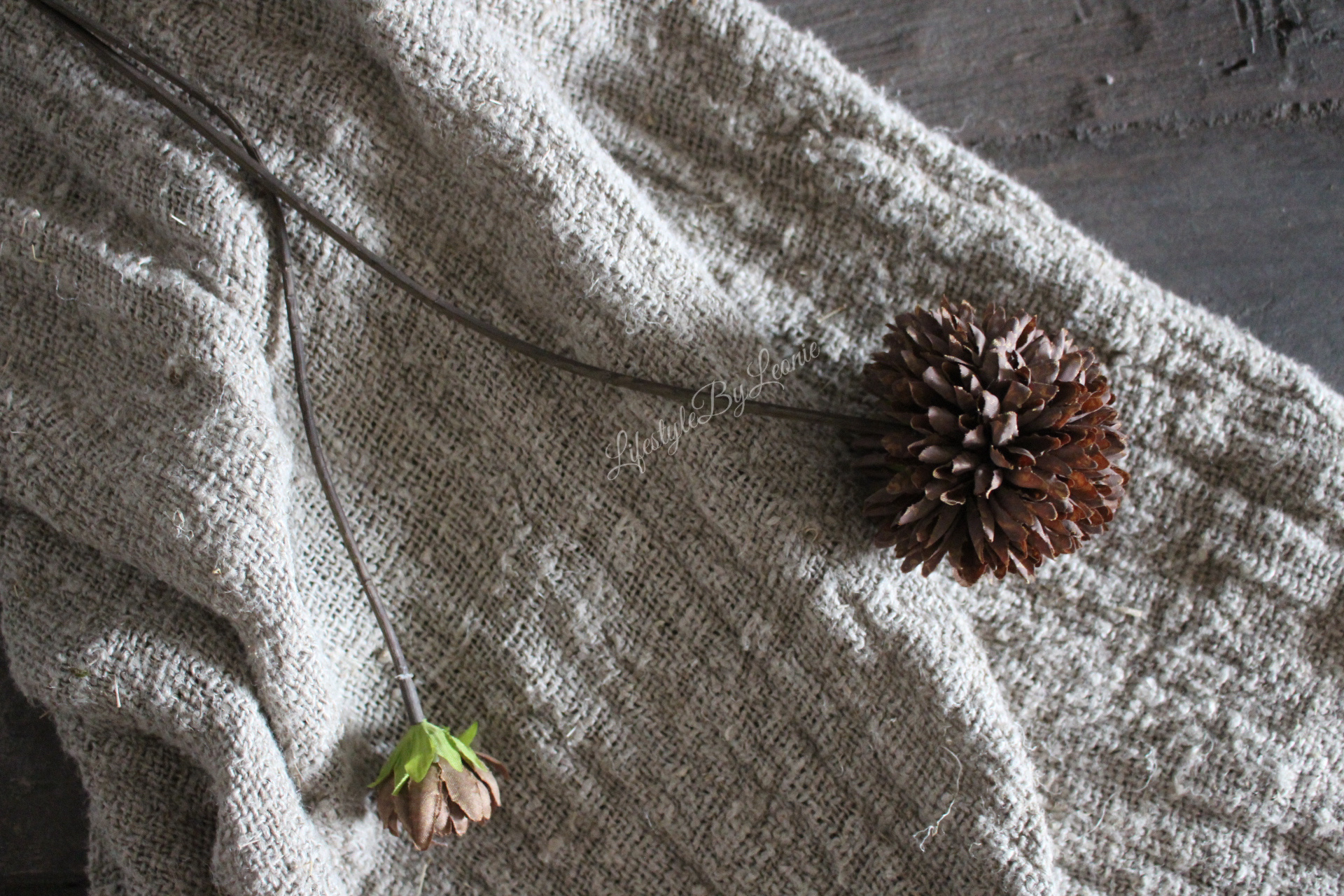 Mooie pompom kunsttak met chocolade bruine bollen. Ook erg leuk in een kunstboeket. De tak is 66 cm lang.