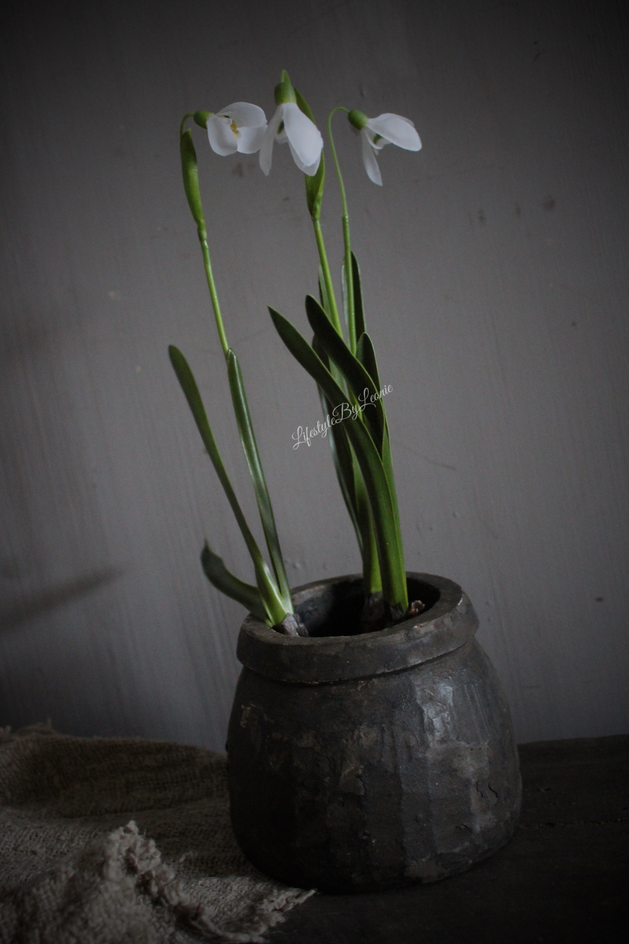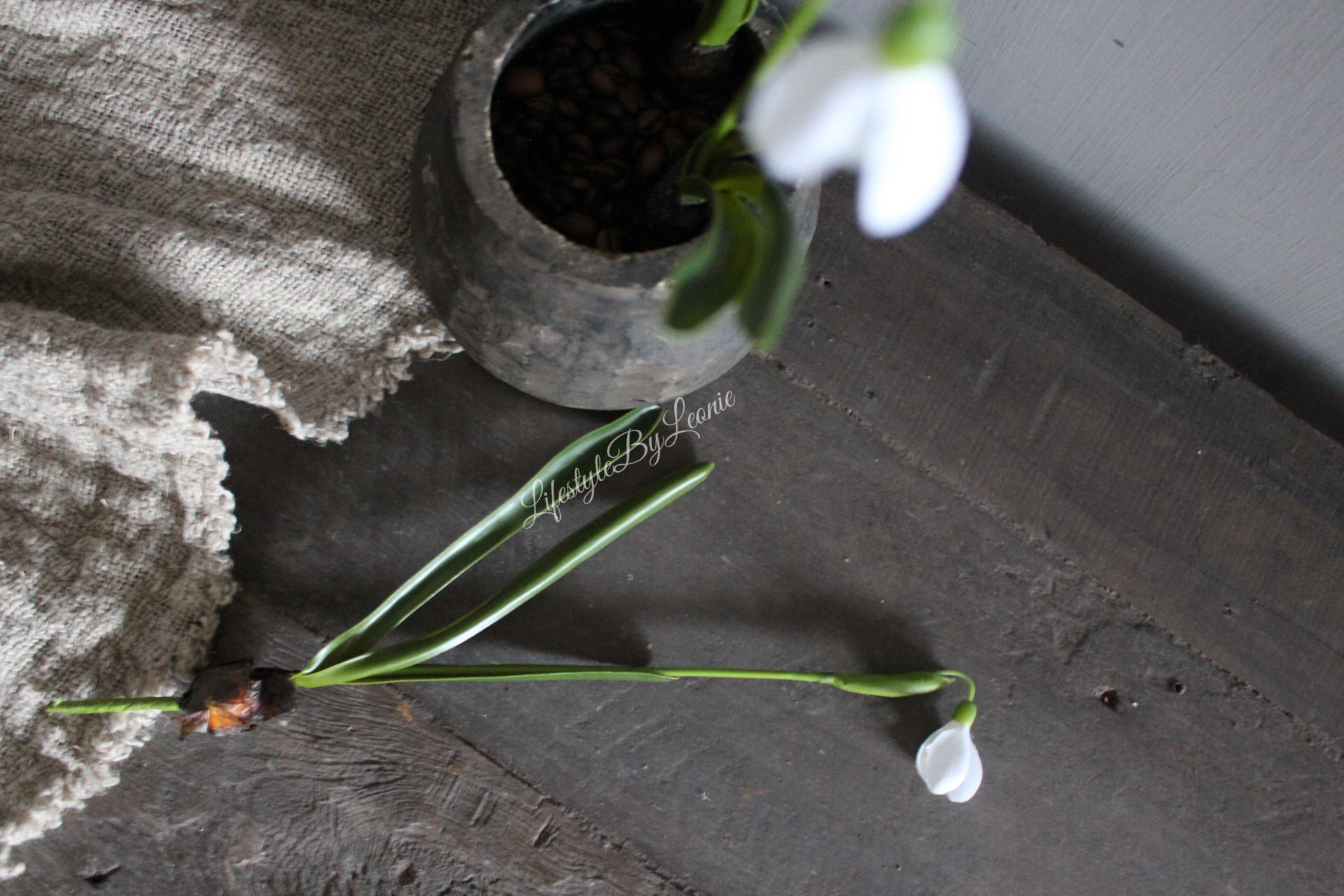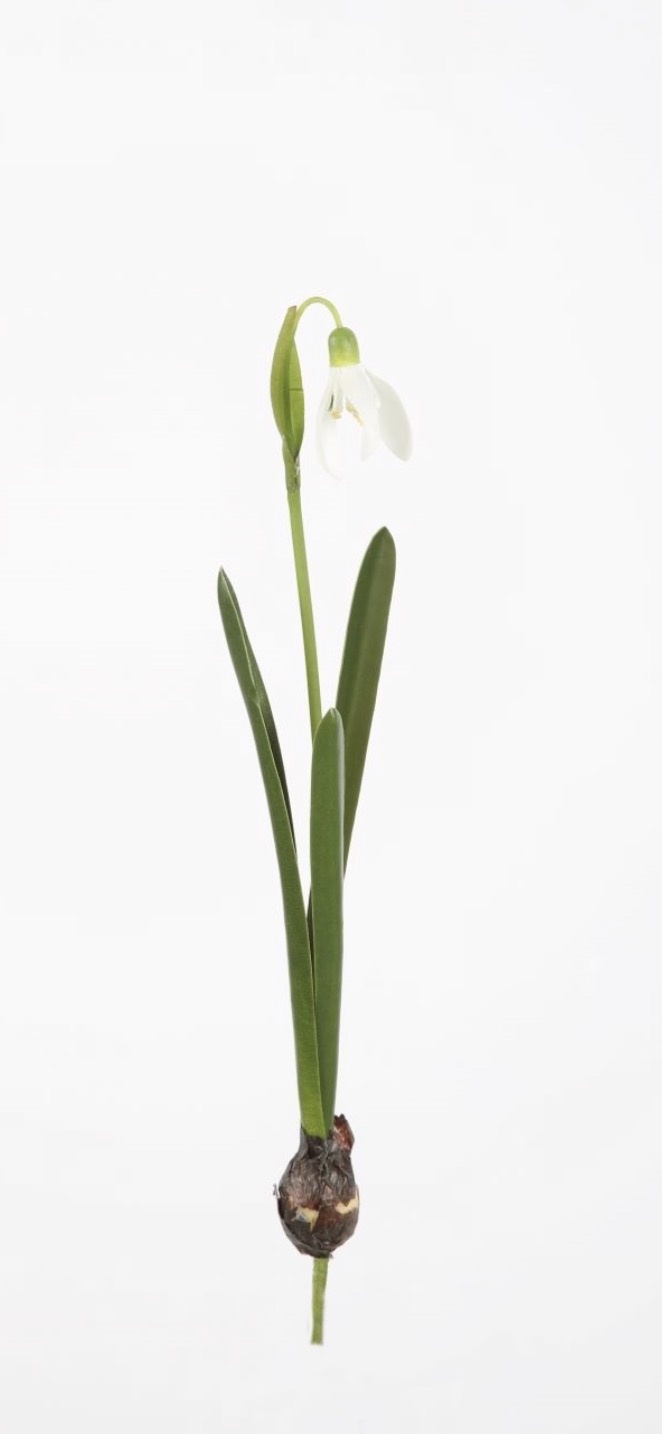 Prachtig zijden kunst Sneeuwklokje met bloembolletje. Niet van echt te onderscheiden. Zo mooi tot in de kleinste details.