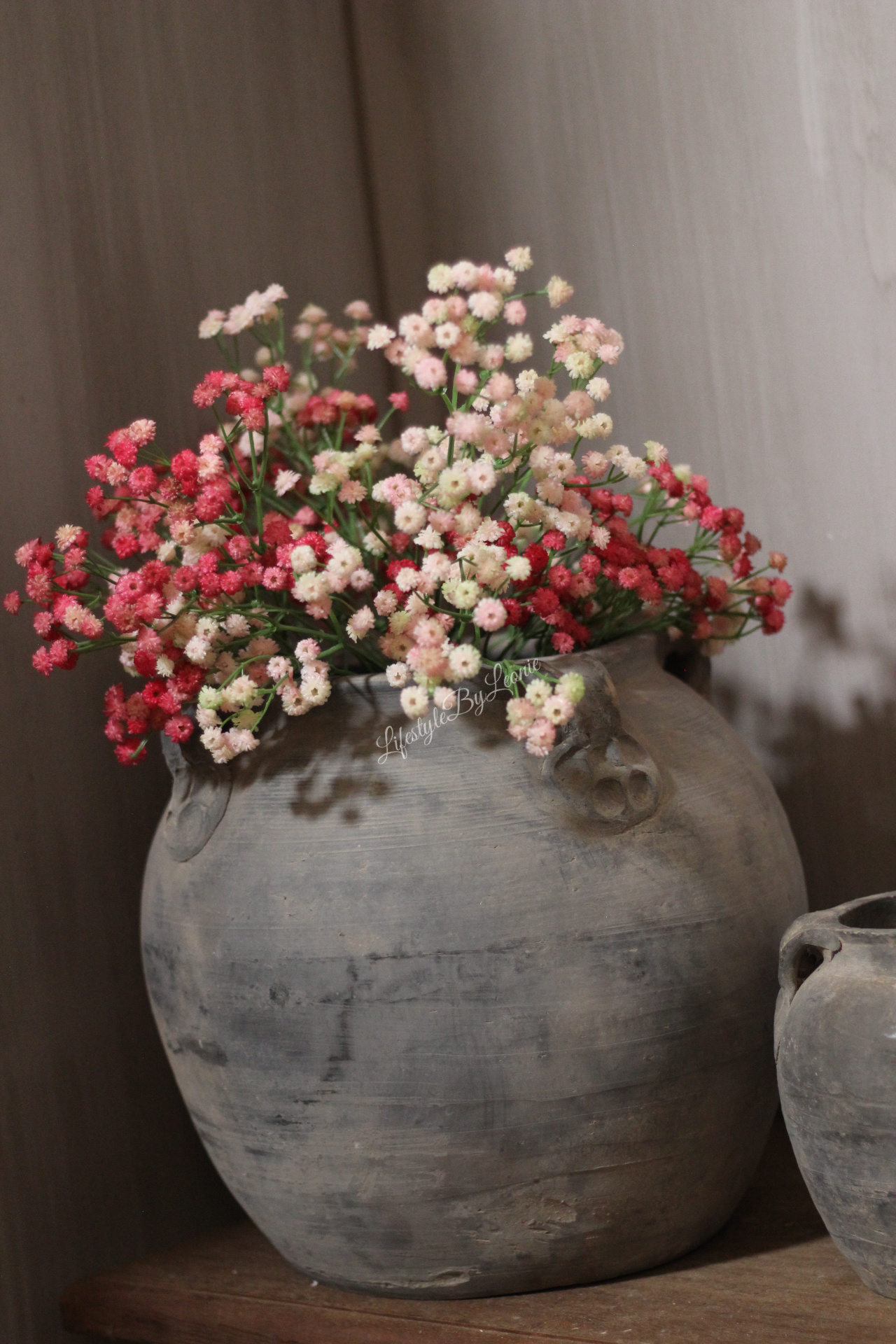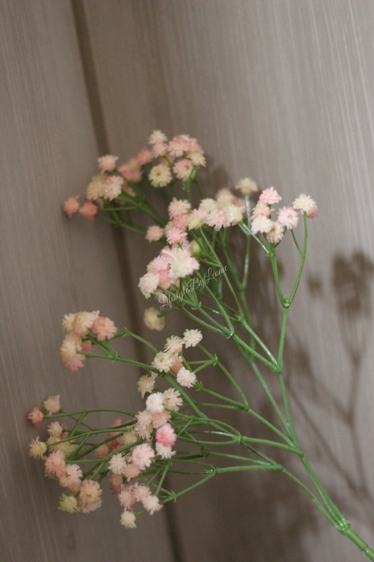 Mooie namaak Gipskruid tak met roze bloemetjes. De tak is 66 cm lang. Mooi in een pot of kruik of op een schaal.