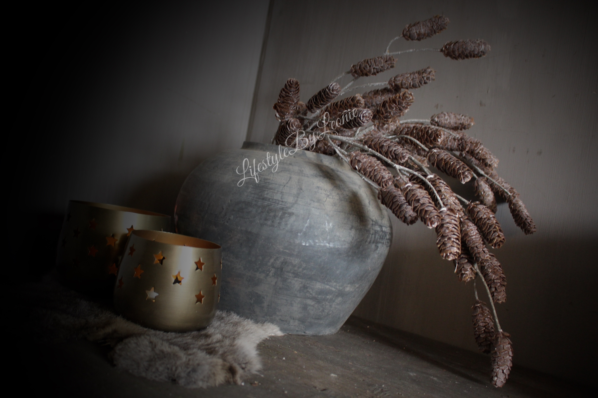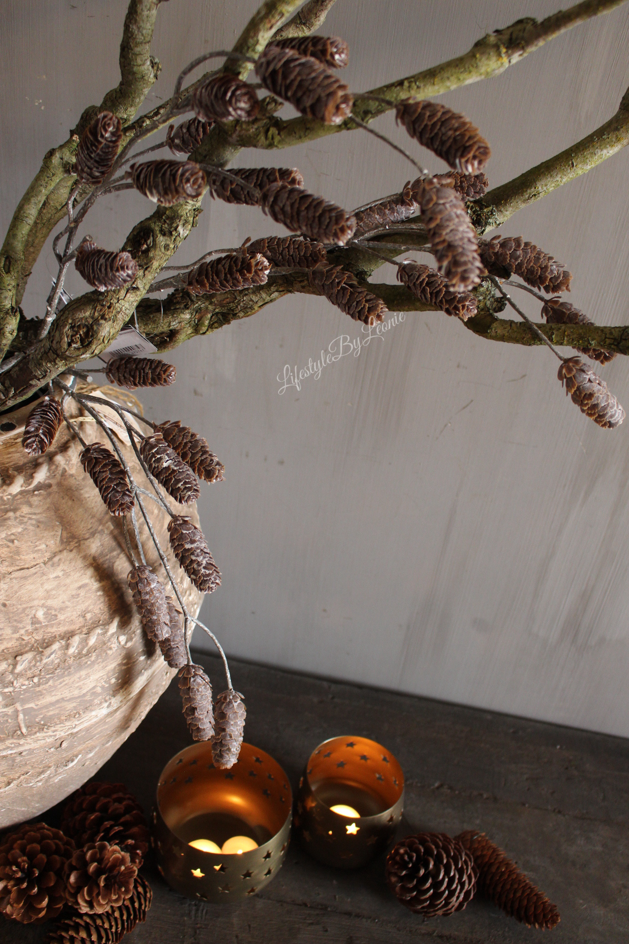 Namaak tak met dennenappels Brown 73 cm