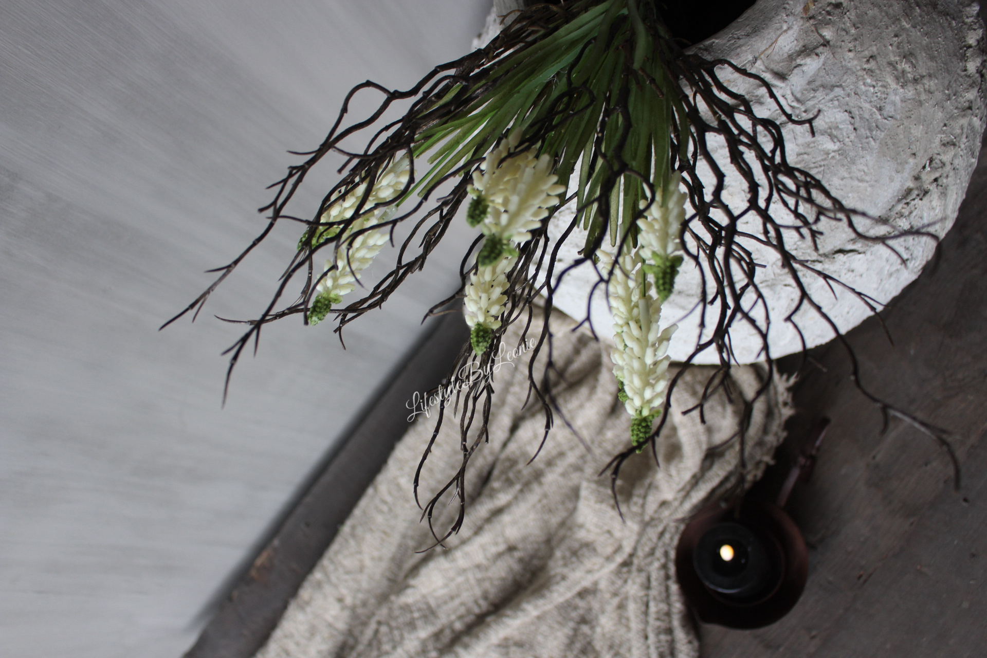 Namaak toef witte Druifjes en berken takjes 40 cm