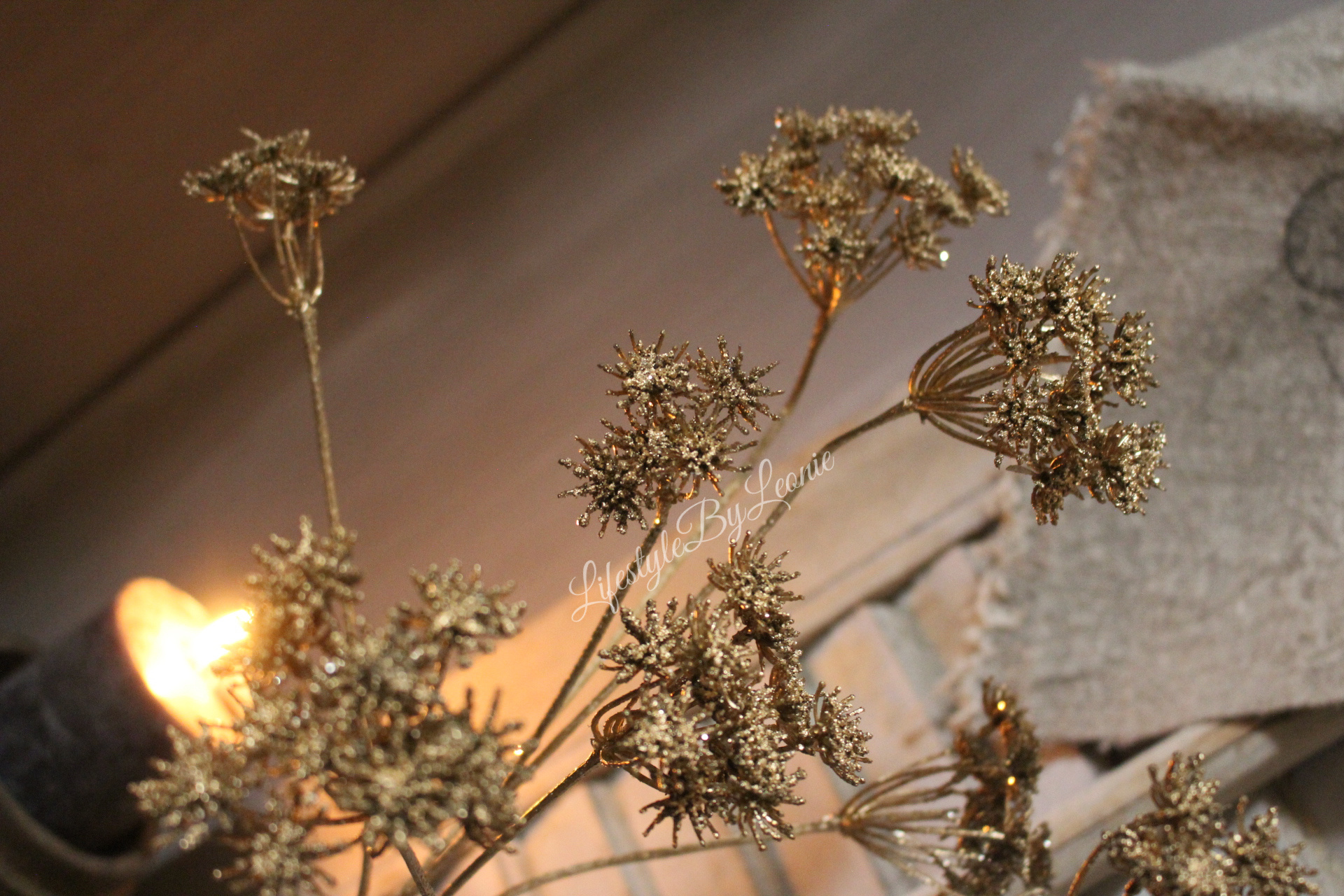 Mooie kunst wilde peen met goudkleurige glitters. Een glitter touch tijdens de feestdagen kan altijd ;)