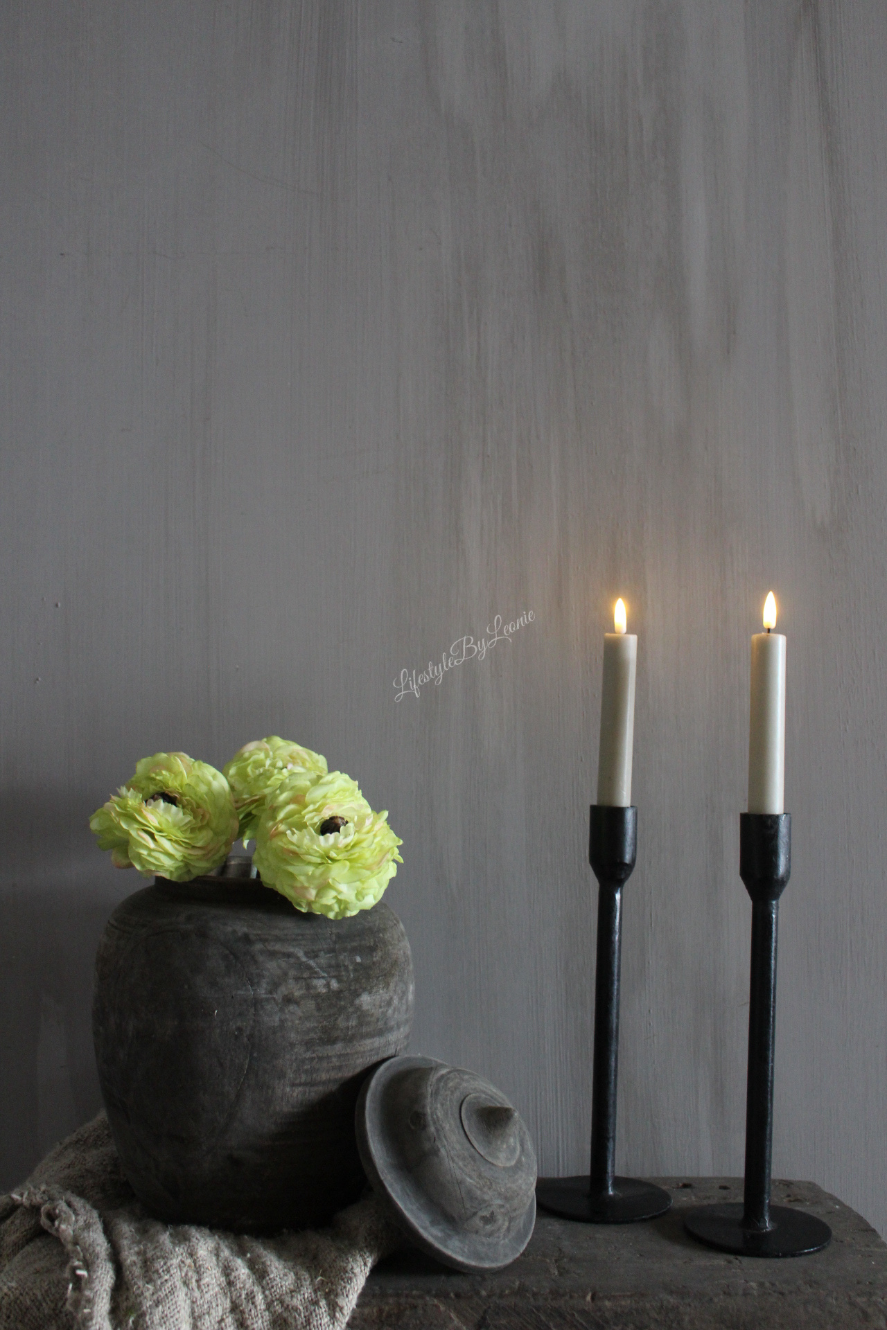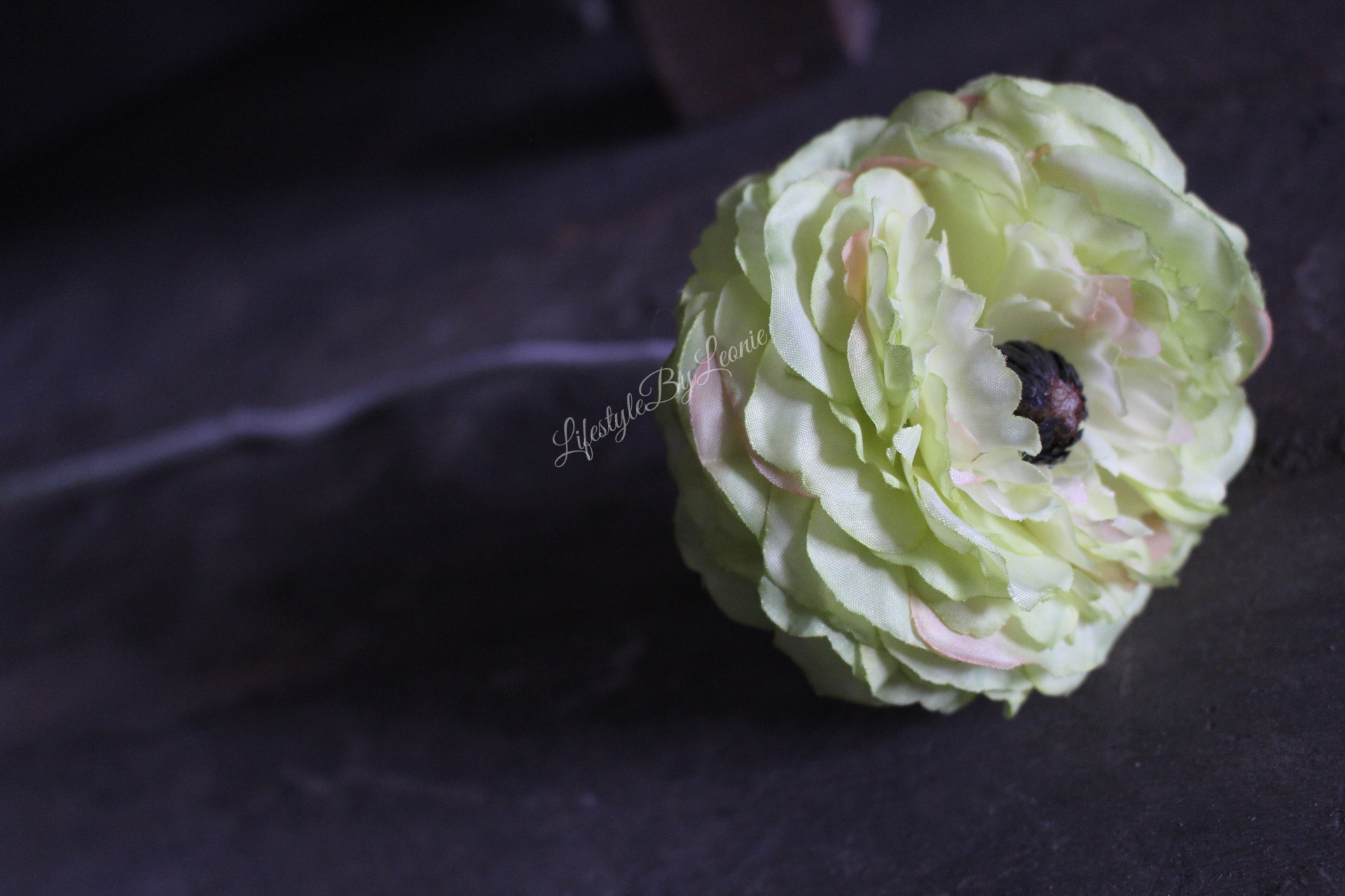 Prachtige groene zijden kunst Ranonkel met een lichte groene bloem. Erg leuk in een kruikje. De Ranonkel is 34 cm lang.