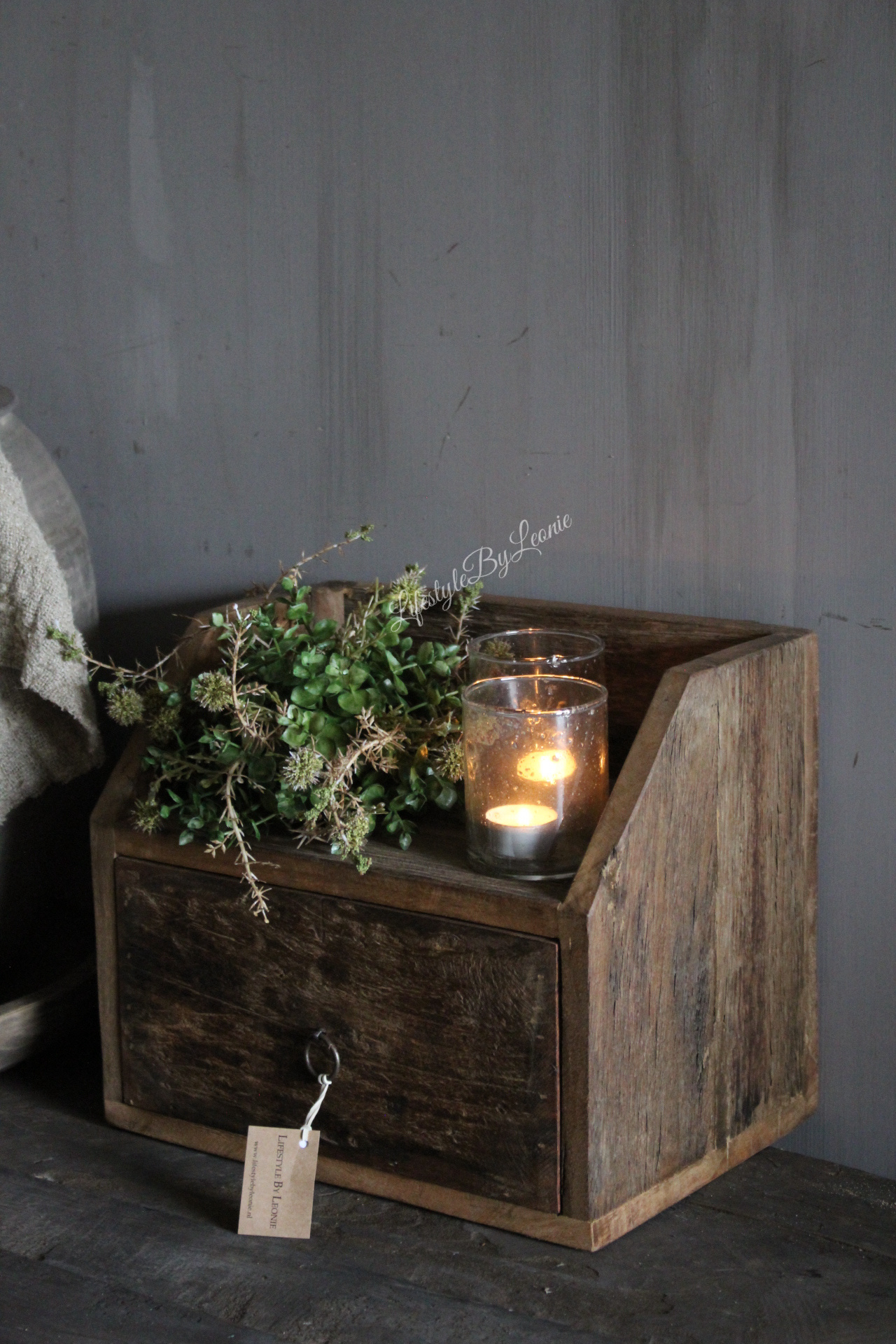 Mooie handig kastje met lade gemaakt van oud truckwood hout. Leuk om bijvoorbeeld een koffie apparaat of waterkoker op te zetten.