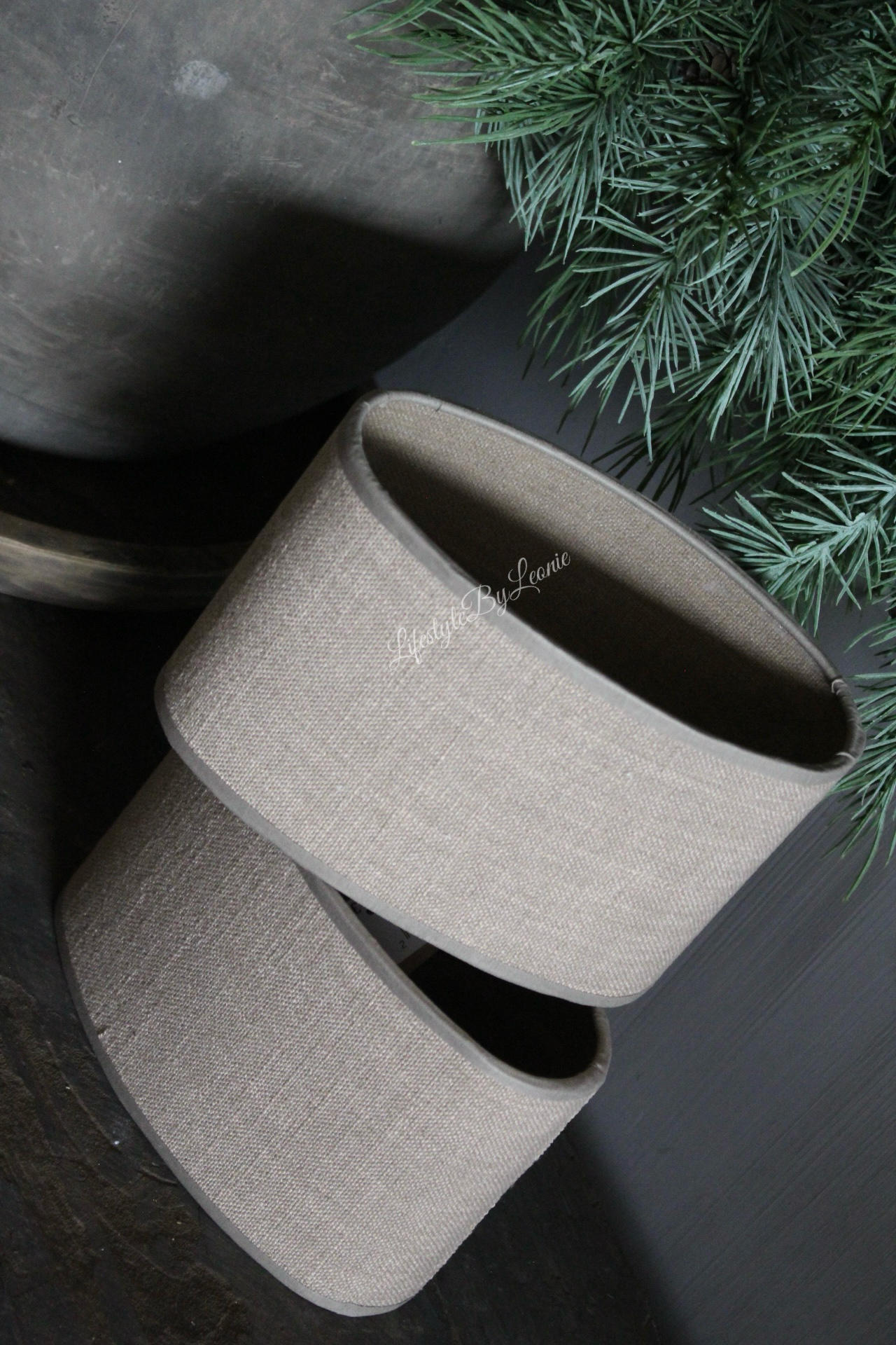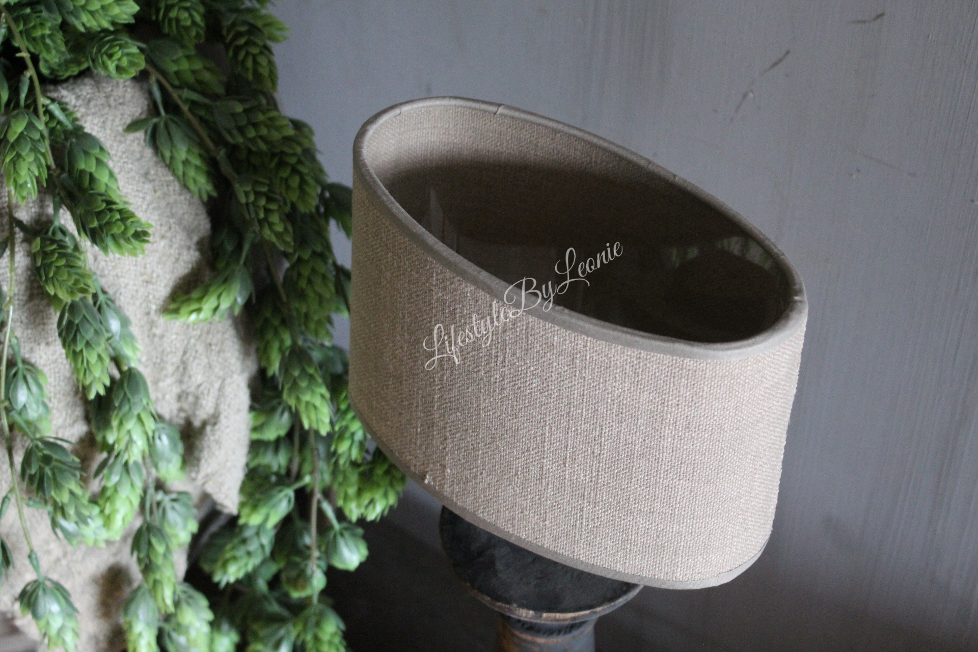 Mooi linnen ovale lampenkapje in de kleur mushroom, een zachte neutrale aardetint. De lampenkap is 20 cm groot.