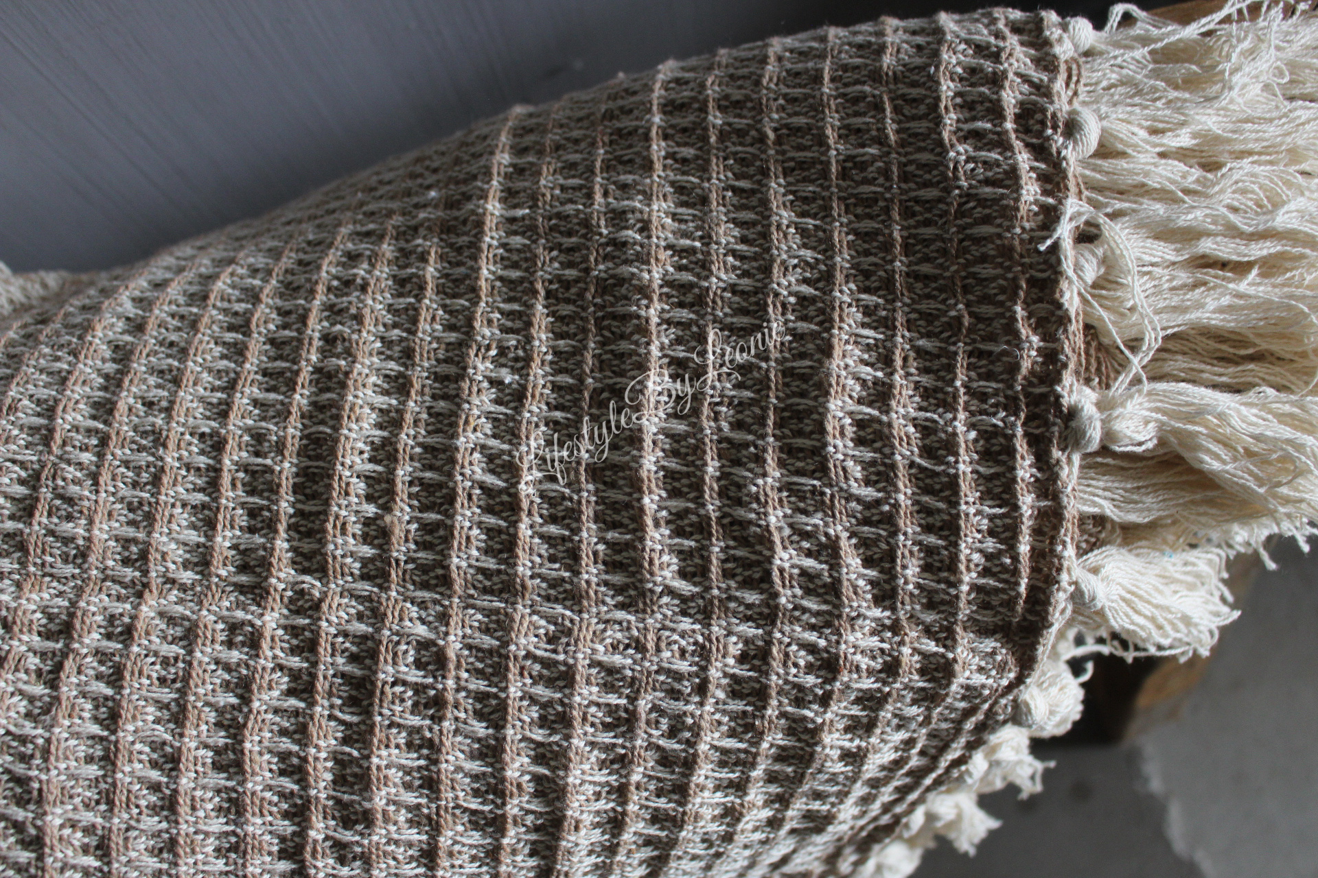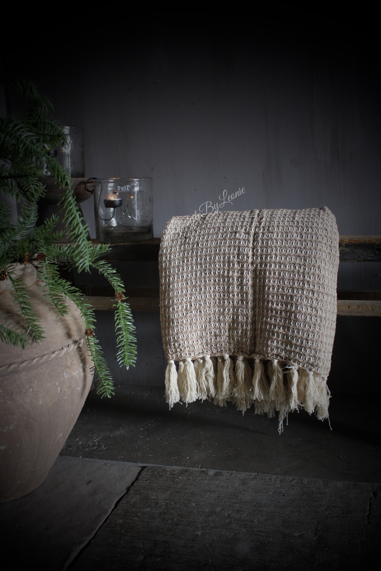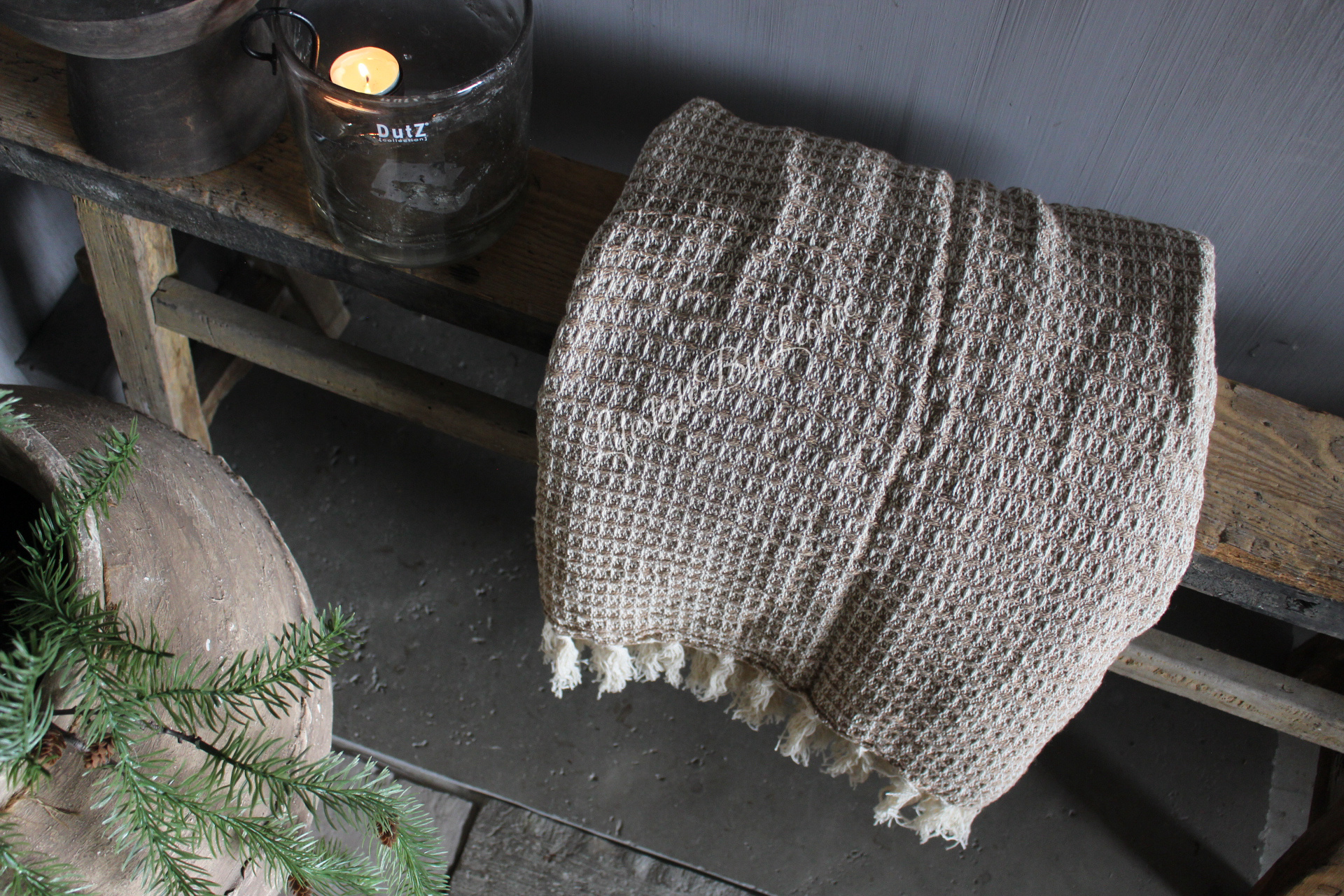 Fijne katoenen plaid met franjes in een bruine kleur. De plaid is 180 x 130 cm groot.