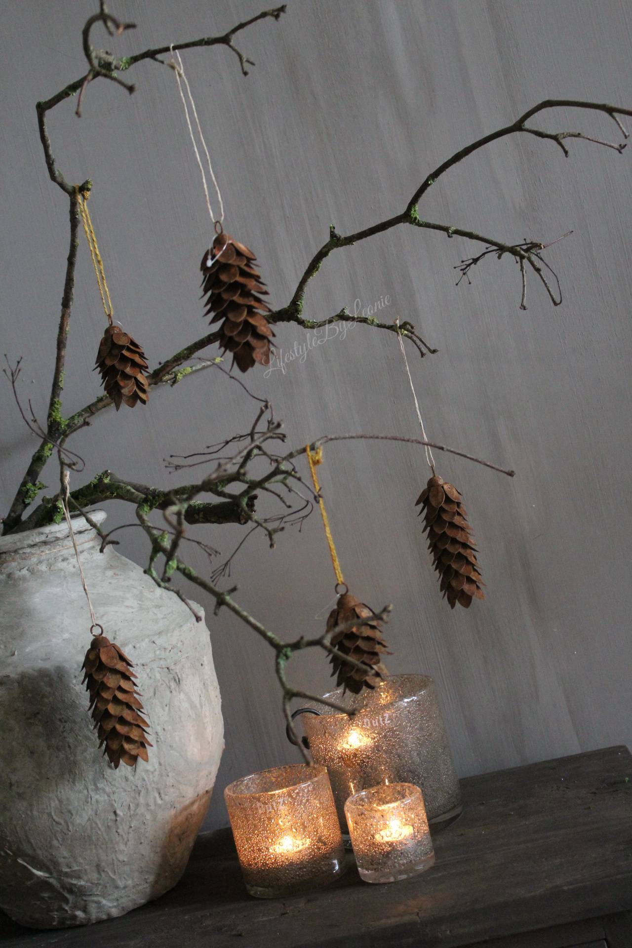 Roestige dennenappel om op te hangen. Leuk voor een gezellige herfstsfeer in huis. De dennenappel is 9 cm groot.