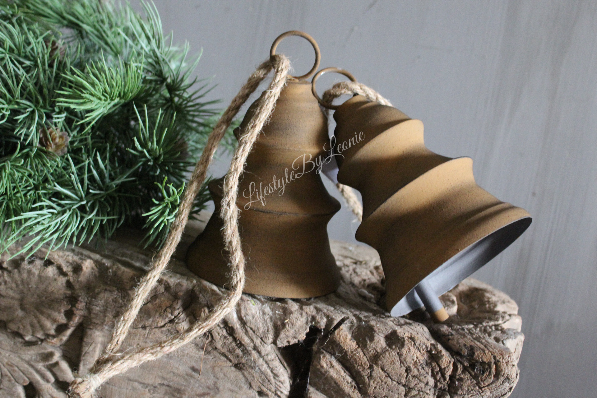 Prachtige roestige kerstklok aan een touw. Leuk als kerstdecoratie. De klok is 16,5 cm groot.