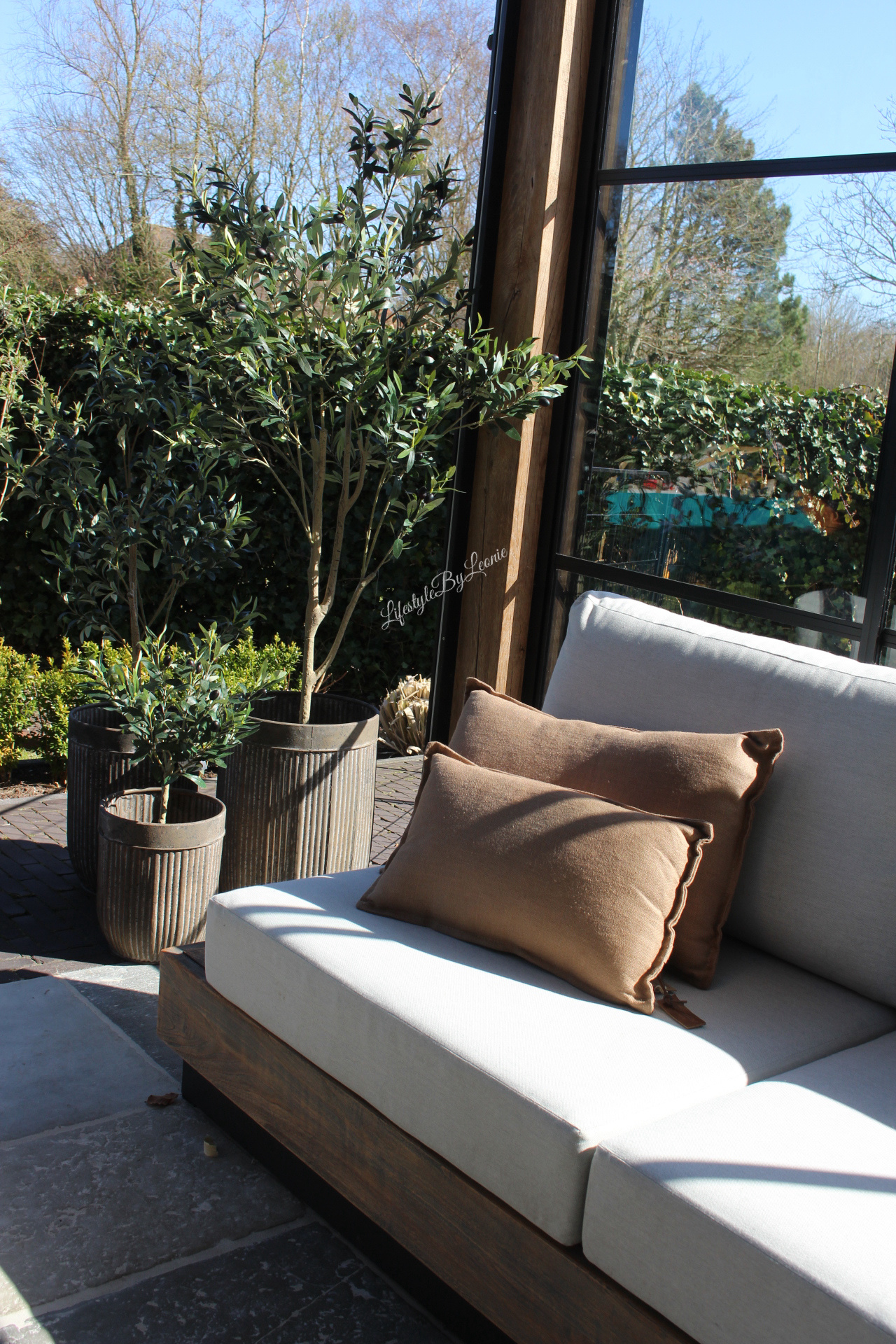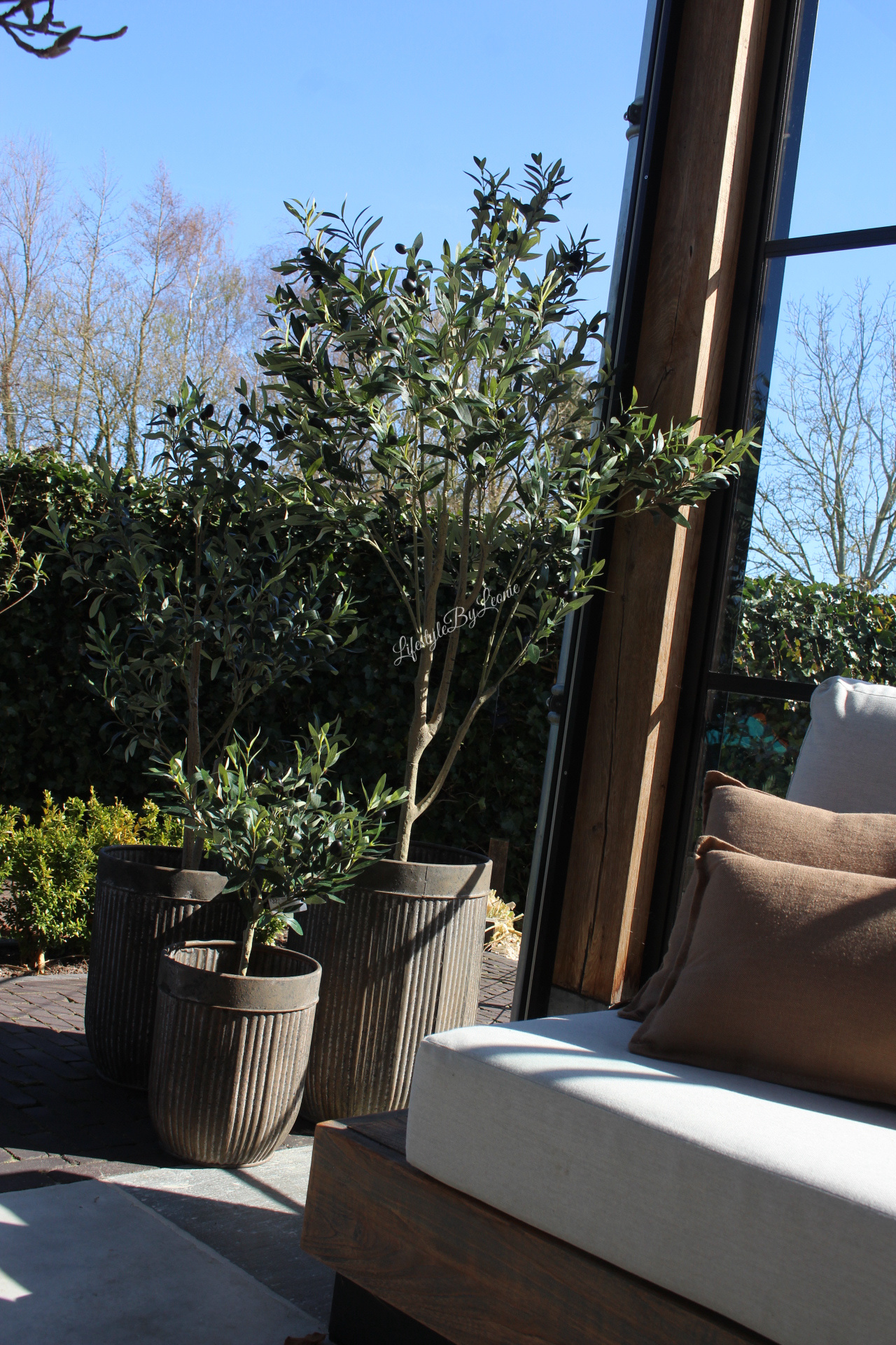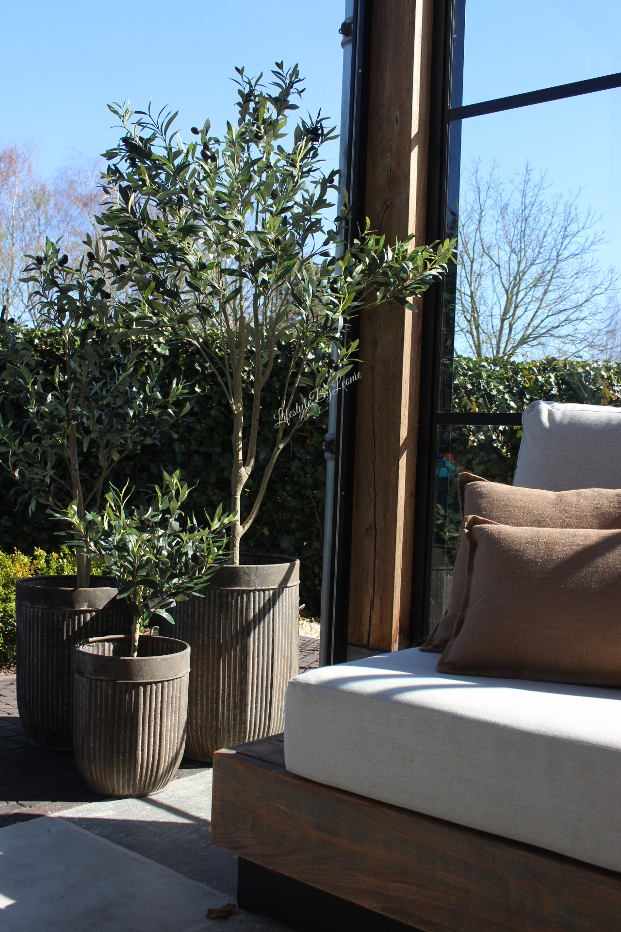 Mooi met plantjes ,een olijfboom of andere mediterrane bomen