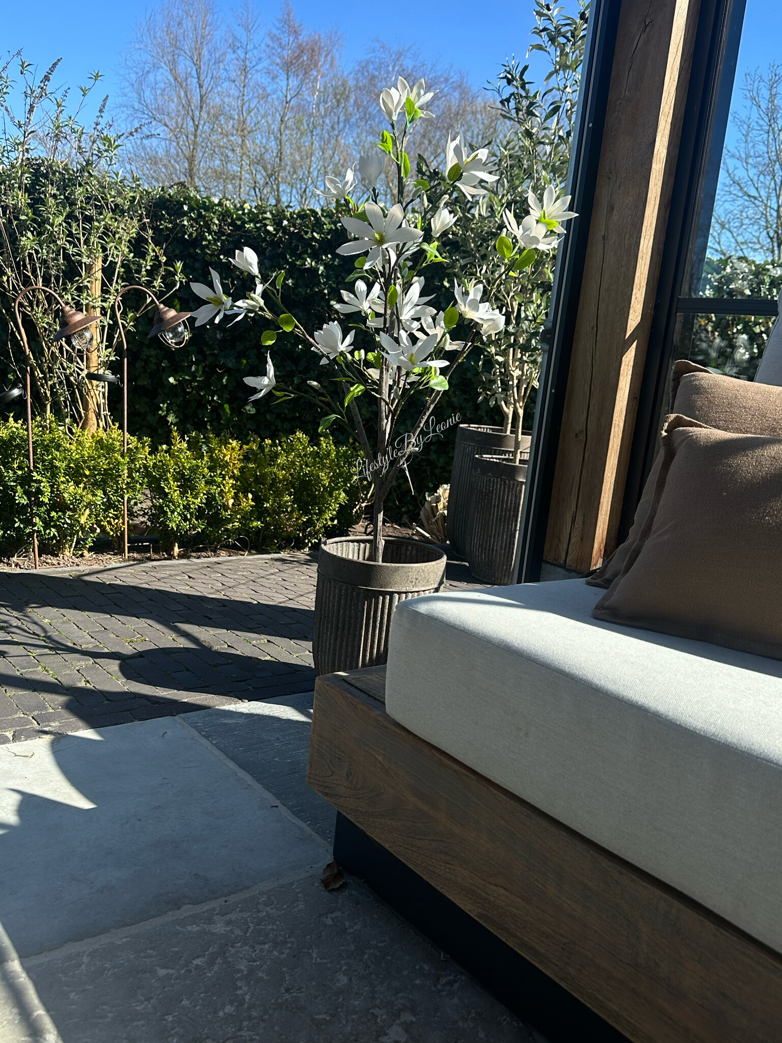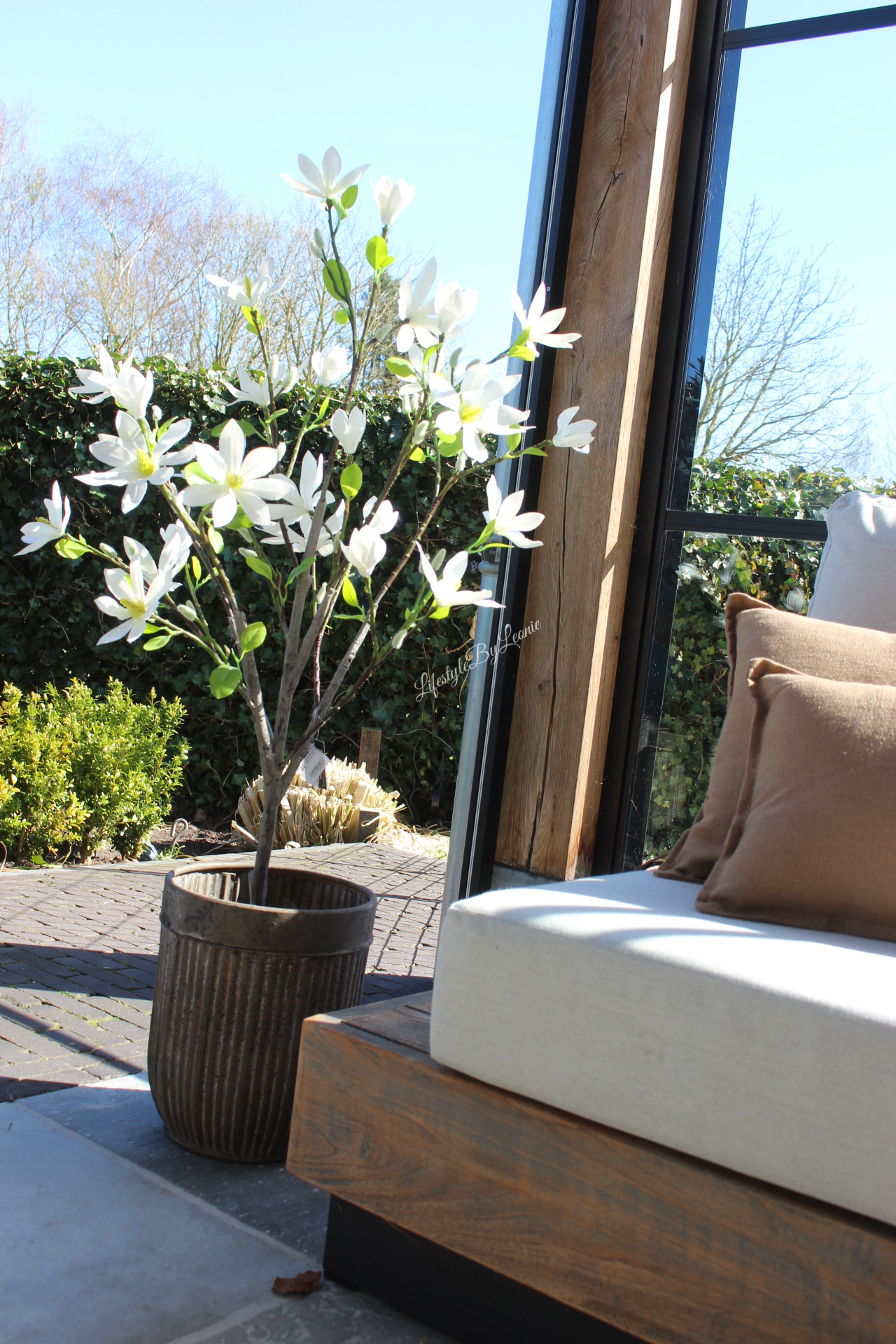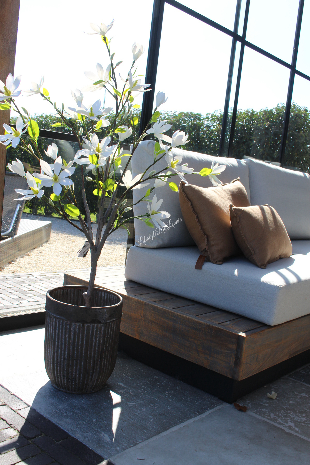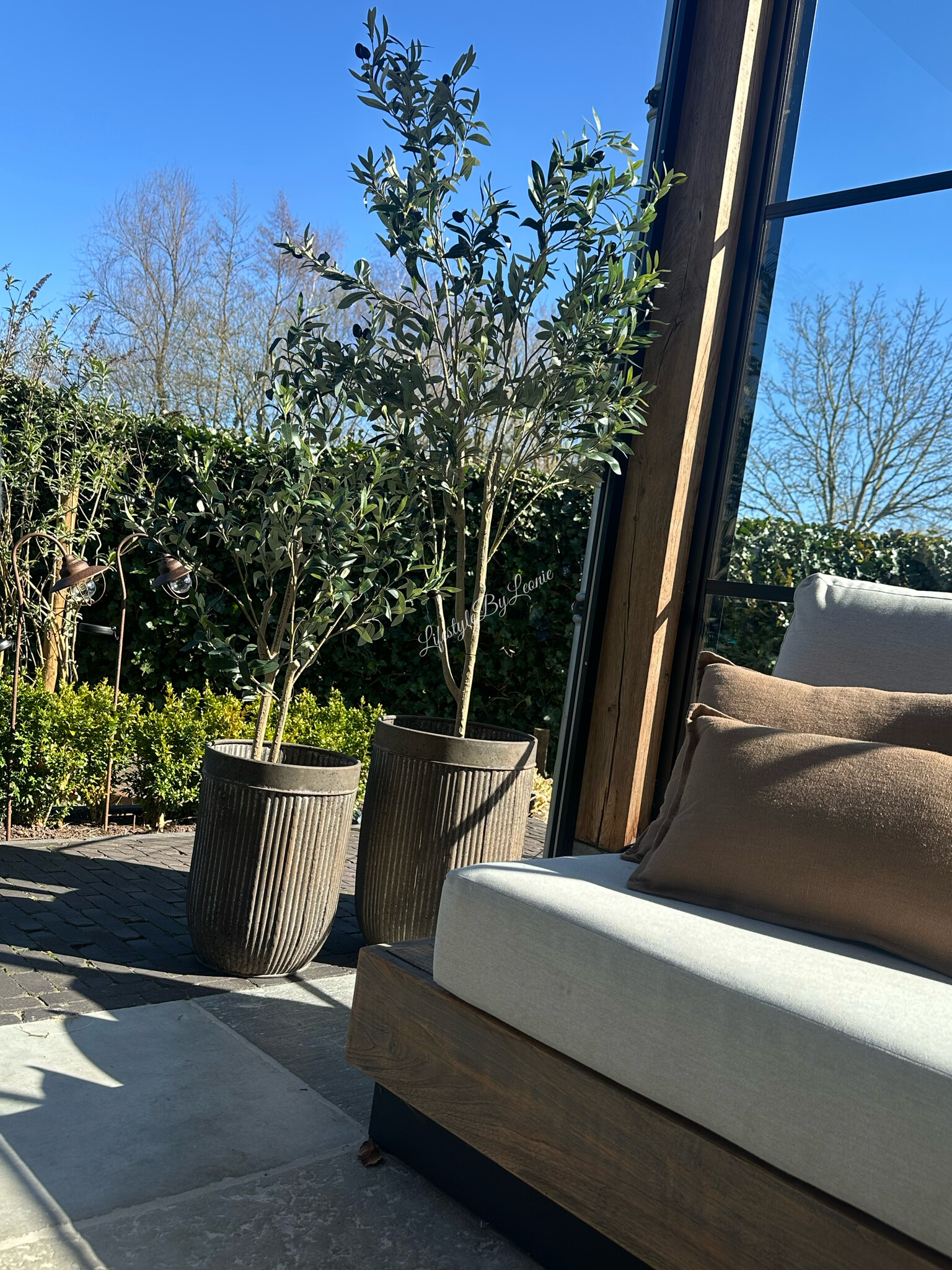Mooi met plantjes ,een olijfboom of andere mediterrane bomen