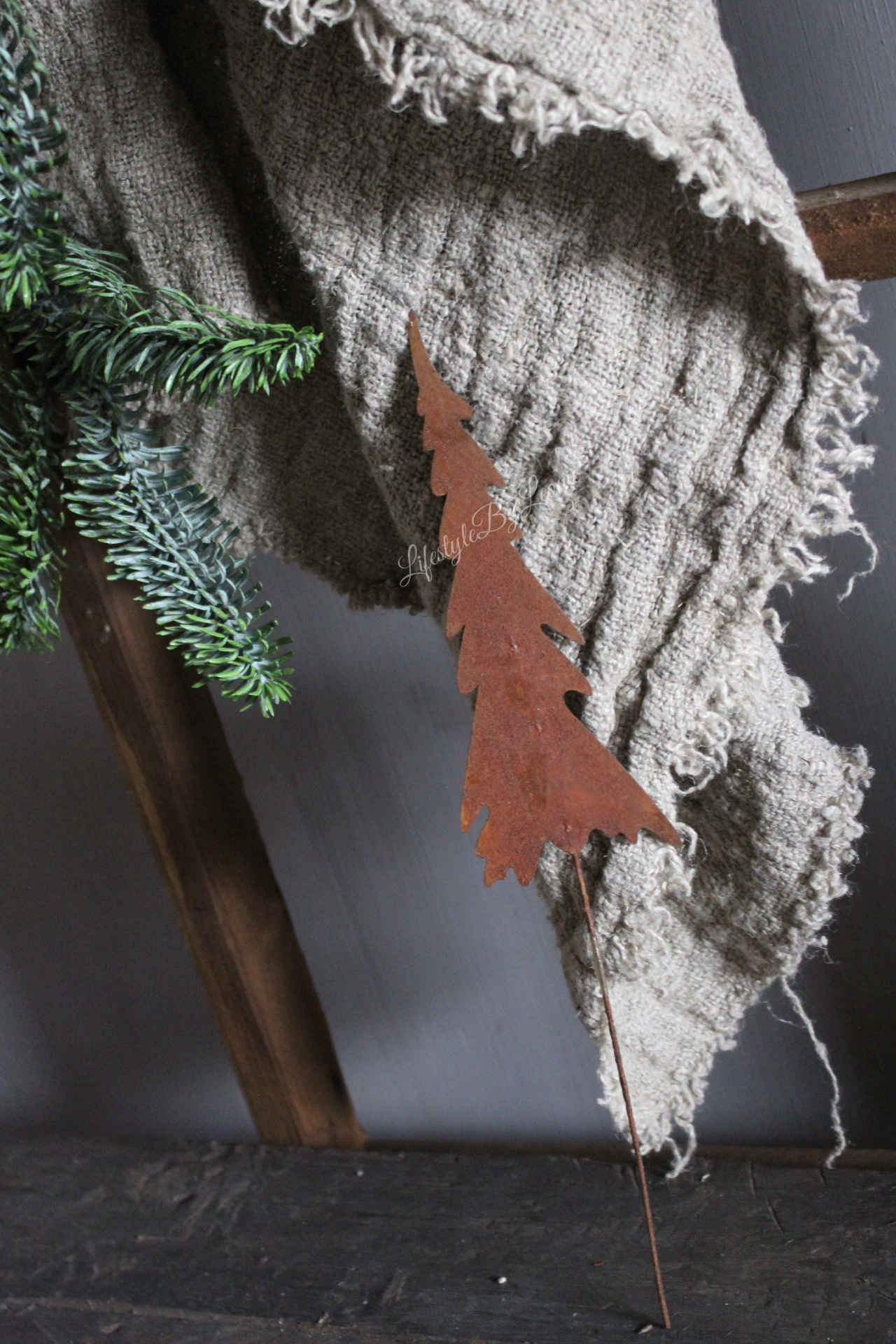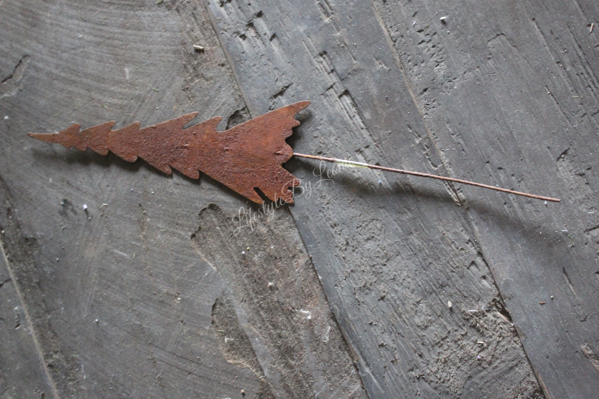 Roestige den op een prikker. Erg leuk om deze kerstdecoratie in een pot, boeket of toef te verwerken. De prikker is 35 cm lang.