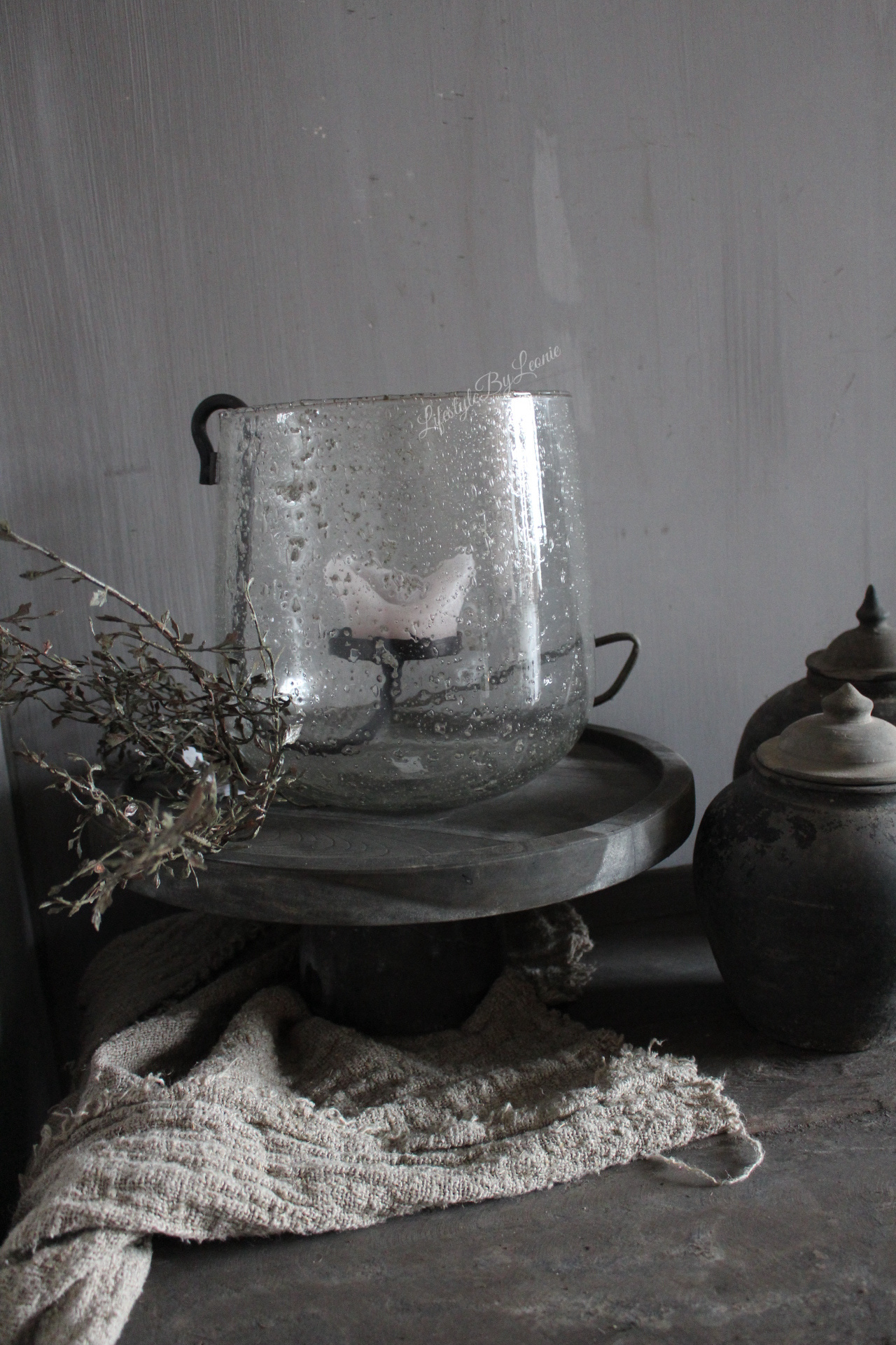 Rond windlicht met bubbeltjes + S haak 26x25cm