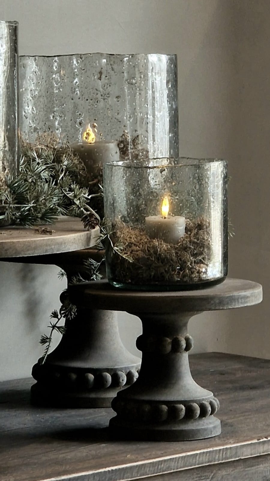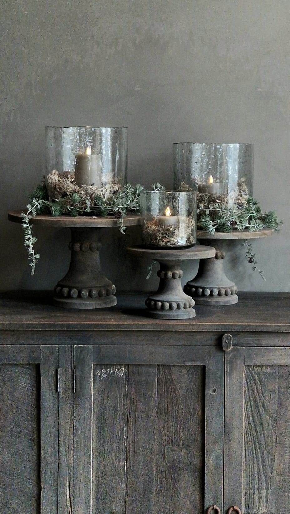Ronde houten tray op voet Sober grey 24 x 19Bcm