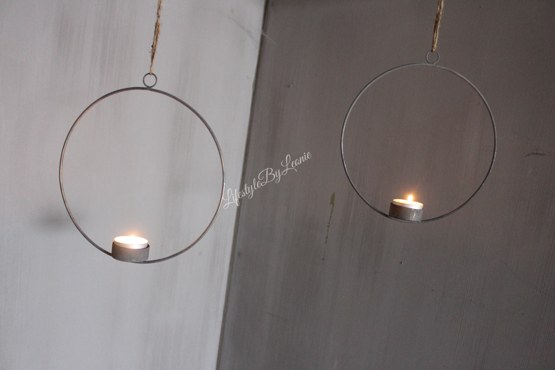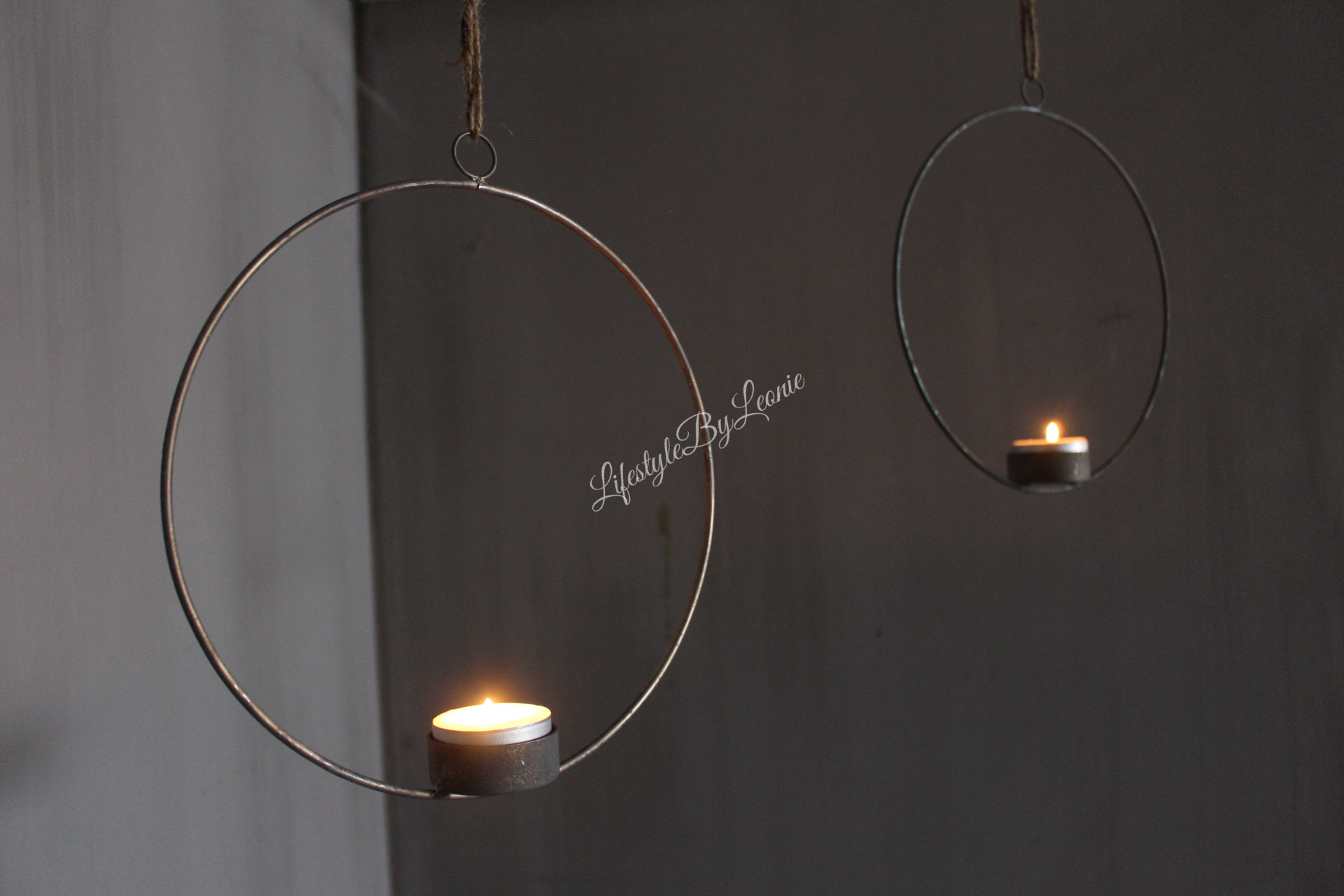 Unieke ronde kandelaar voor een waxinelichtje. De kandelaar heeft de vorm van een ring en kan worden opgehangen.
