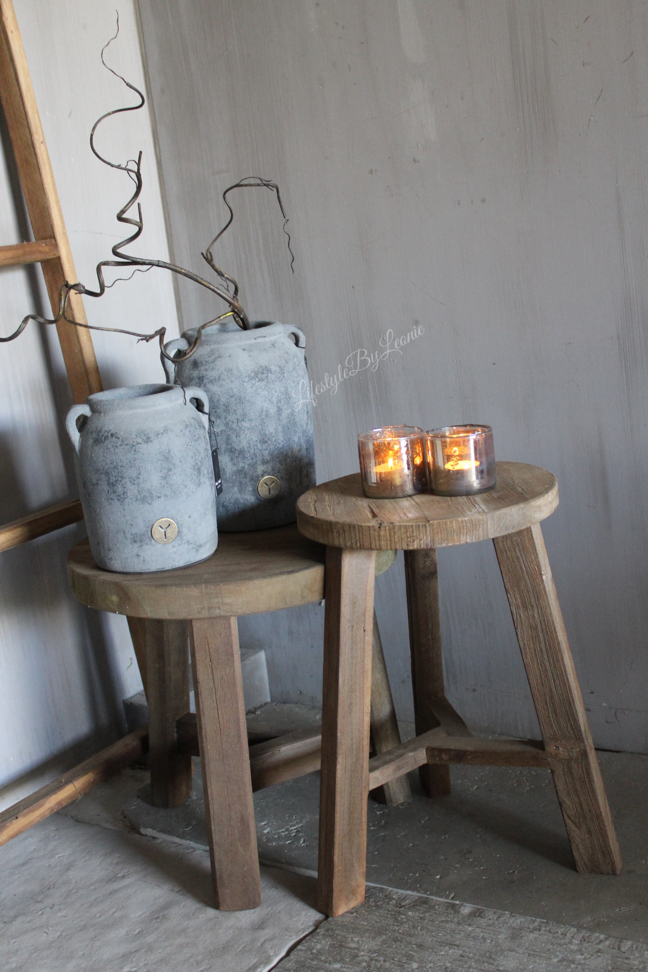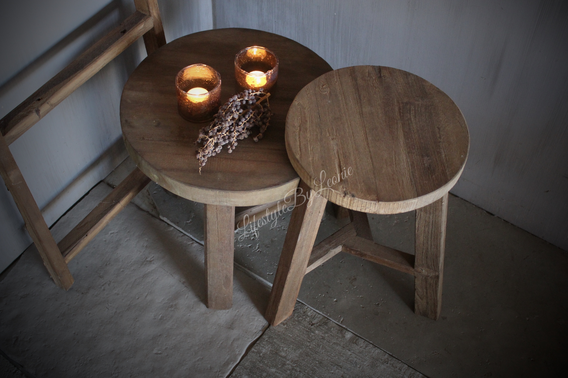 Ronde teakhouten tafel set 40 en 46 cm