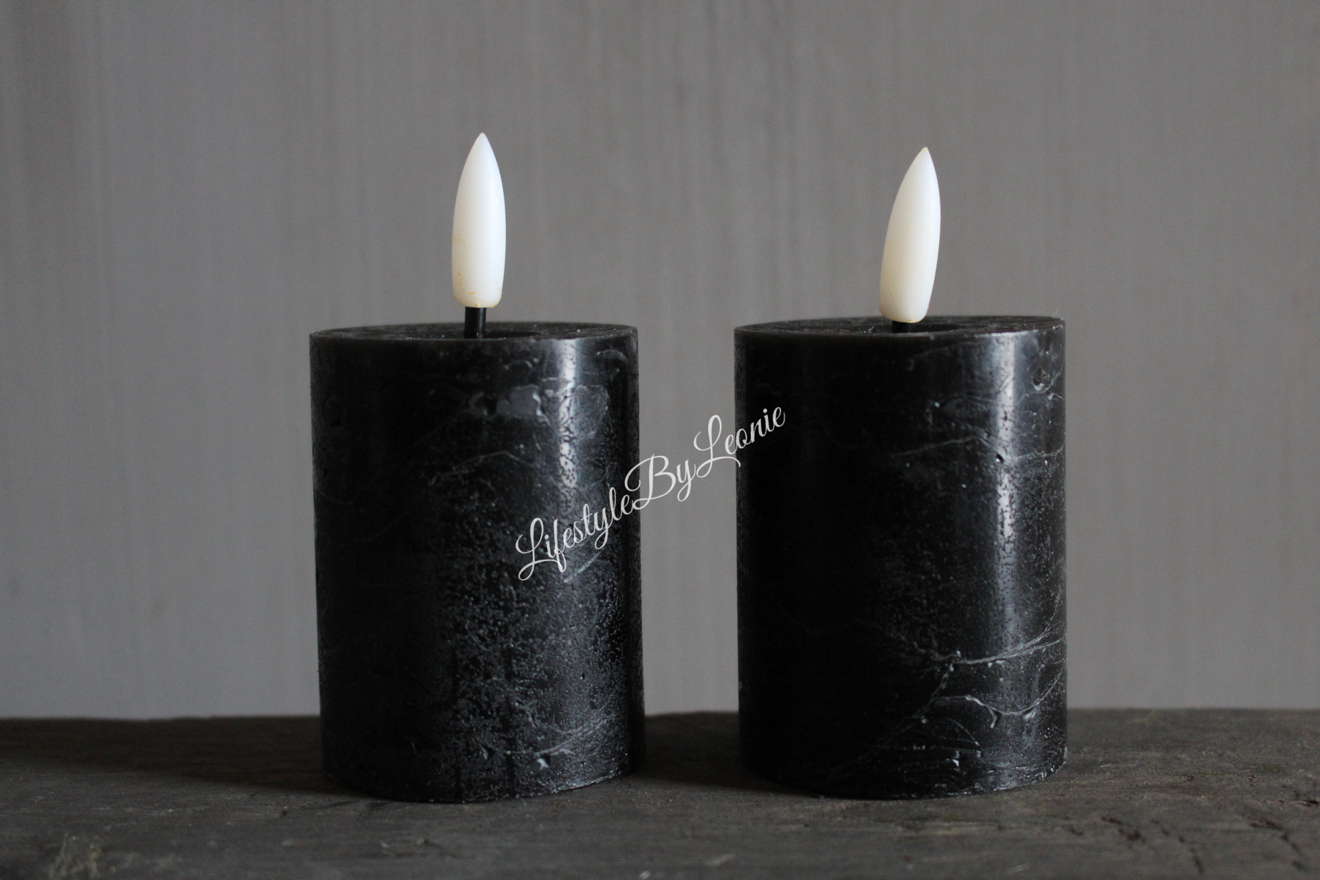 Set met twee kleine zwarte LED stompkaarsjes. De kaarsjes zijn 9 cm hoog.