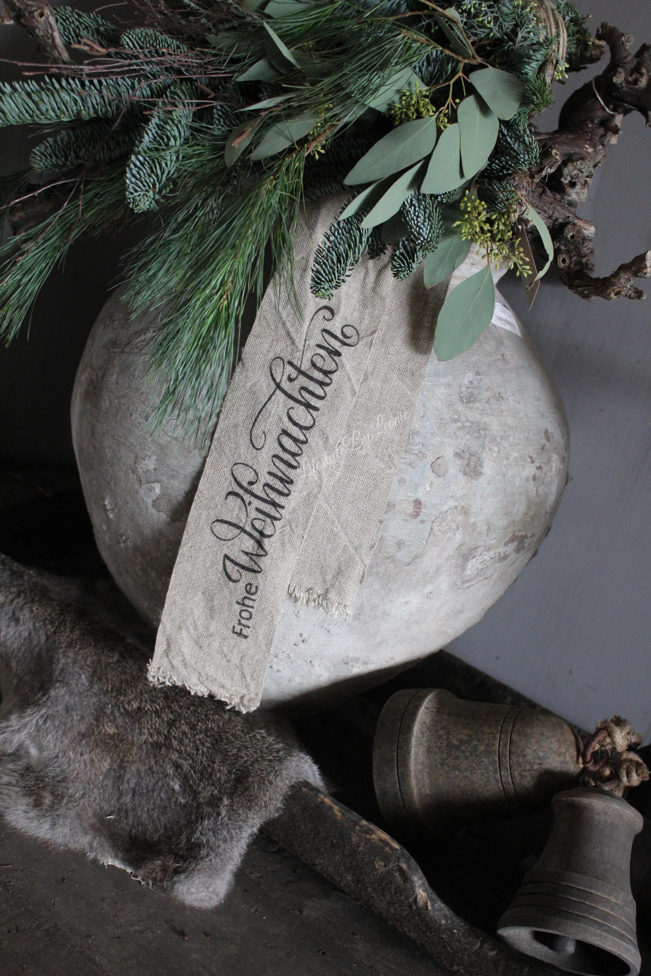 Shabby linnen kerst-lint Frohe weihnachten 100cm