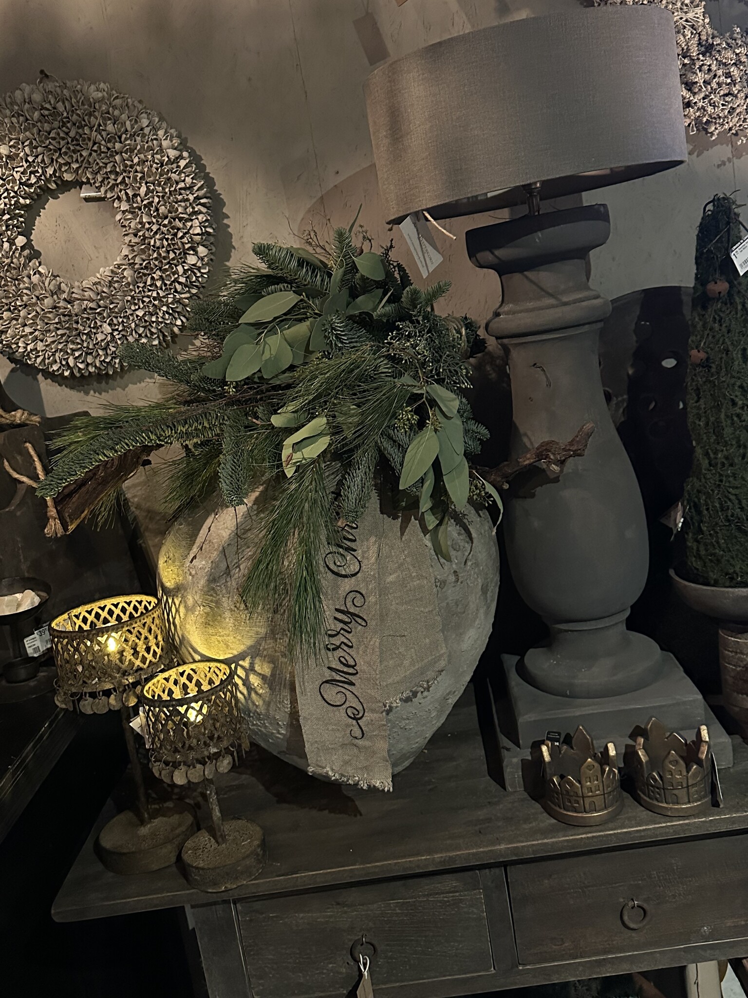 Shabby kerstlint met de tekst Merry Christmas. Het lint is 100 cm lang. Erg leuk in een pot, toef of op een dienblad.