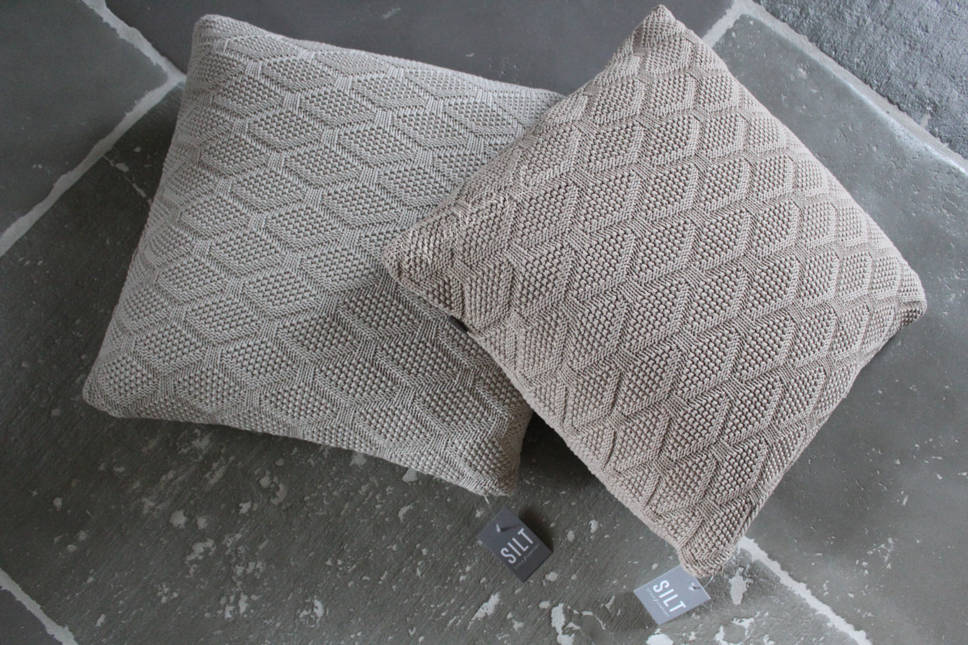 Mooi gebreid kussen van SILT in een prachtige sobere lichtgrijze kleur. Het kussen is 45 x 45 cm groot.