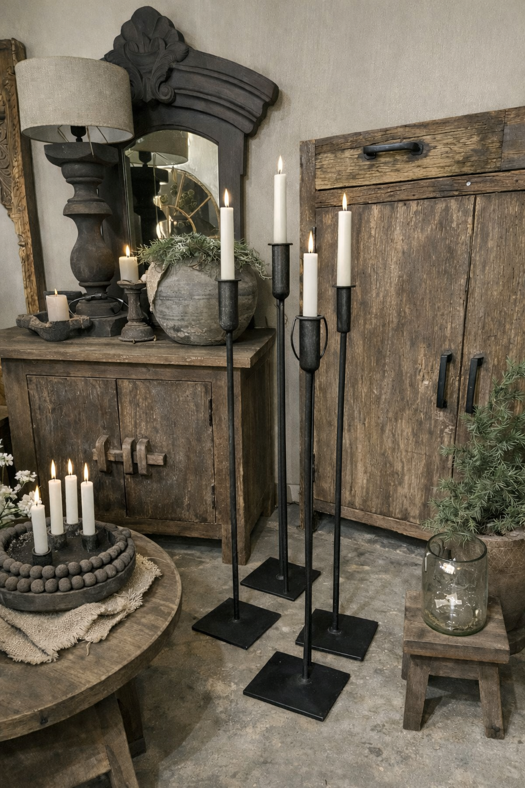 Smeedijzeren kandelaar dinerkaars 90 cm