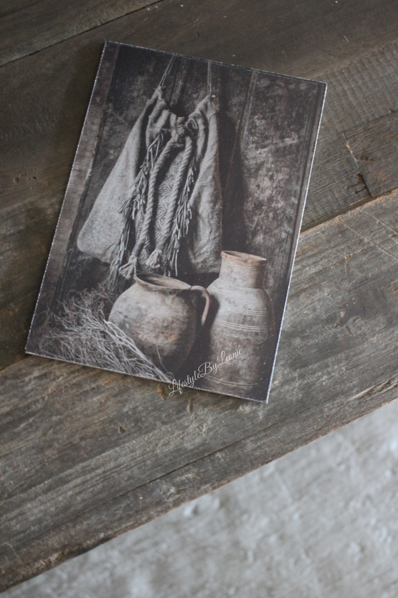 Stevig bordje met een sobere opdruk van een tas en kruiken. Dit decoratieve bordje is 20 x 14 cm groot.