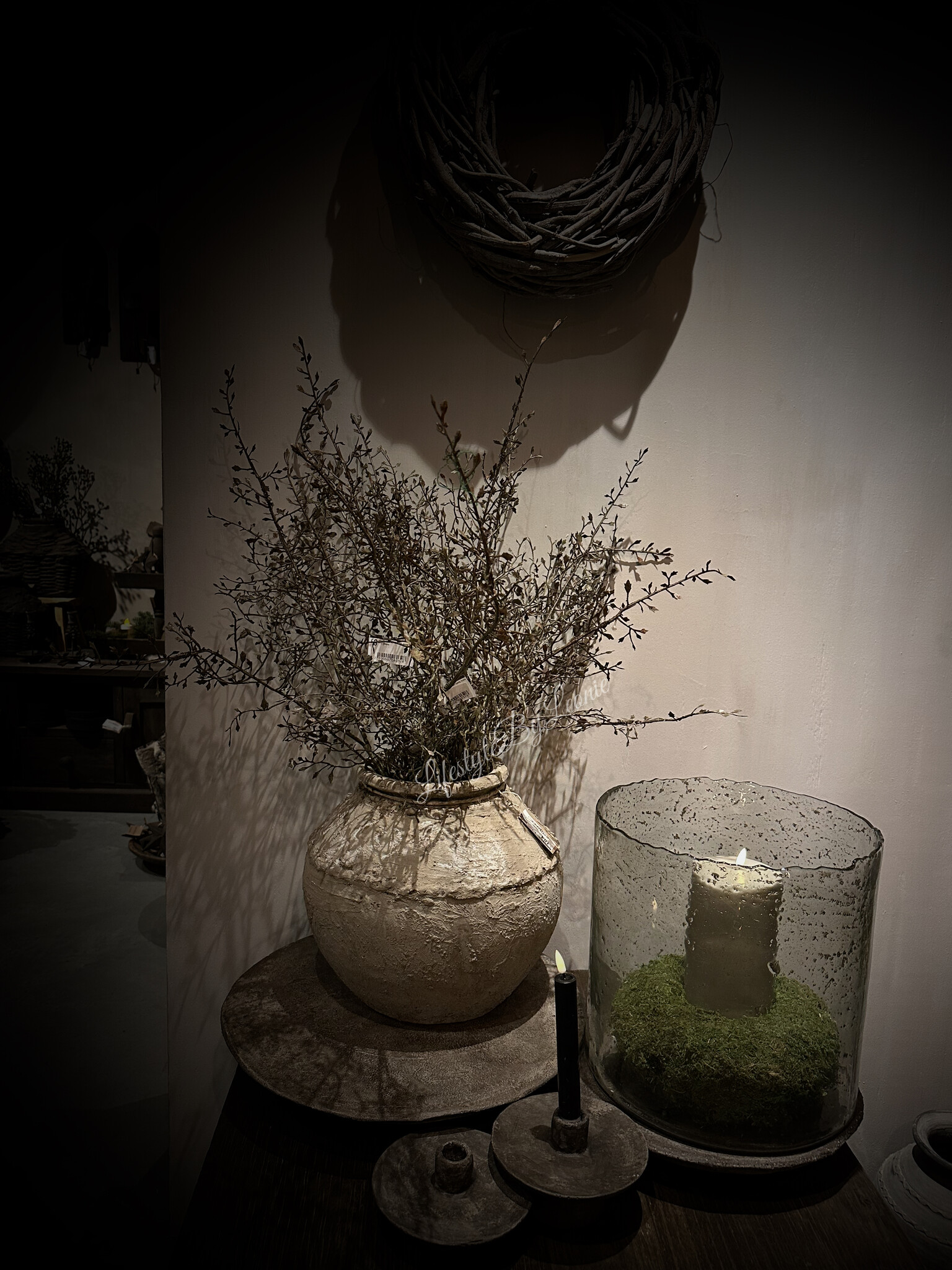 Supermooie sobere namaak Corokia tak, niet van echt te onderscheiden. Makkelijk te decoreren in een kruik, pot of schaal. De tak is 104 cm lang.